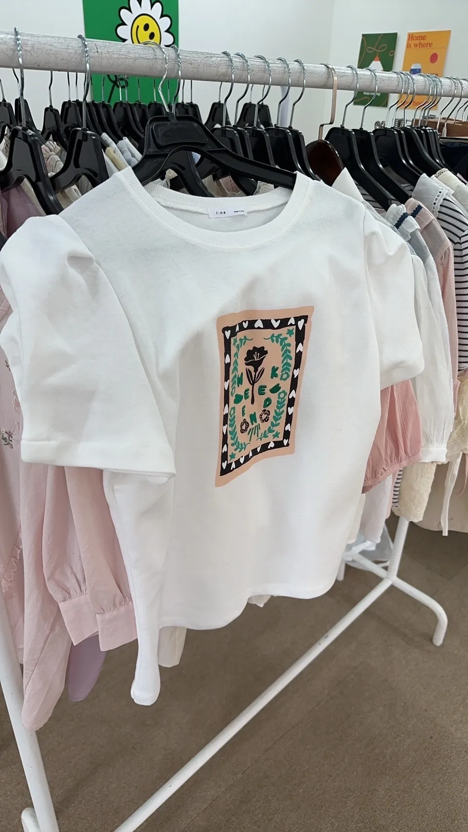 KM359推薦款小花方框版畫Tshirt 白 灰 官網價$620 線上價$590