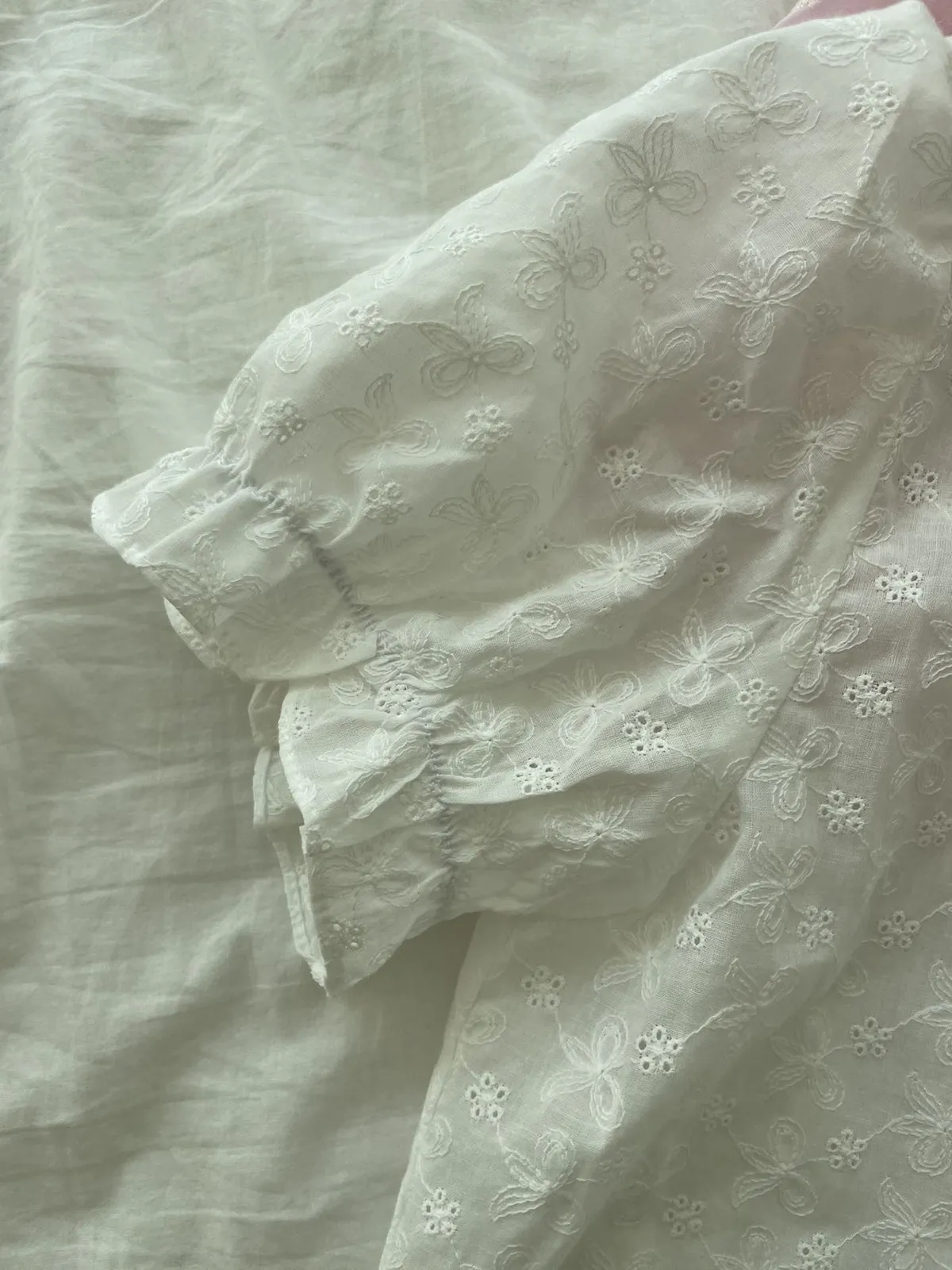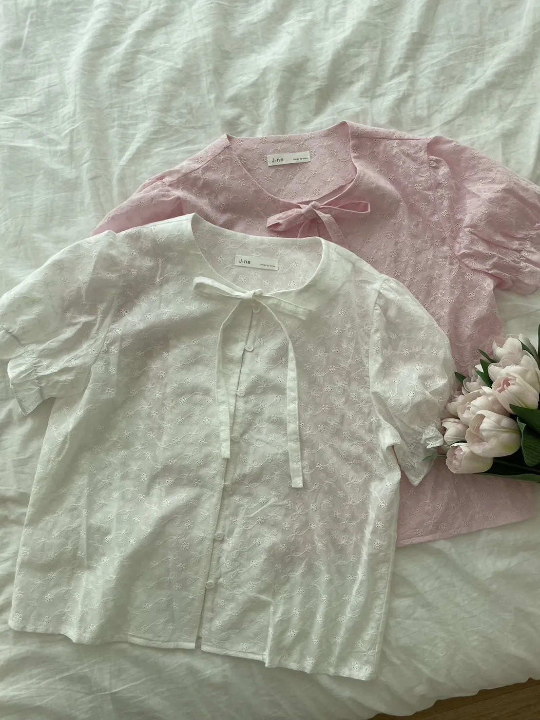 KM361薄款精緻刺繡胸綁帶上衣 白 粉 官網價$729 線上價$699