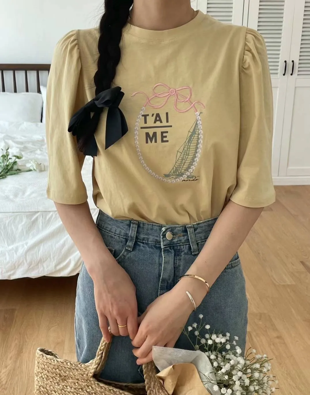 KM362可愛帆船蝴蝶結Tshirt 白 黃 官網價$580 線上價$550