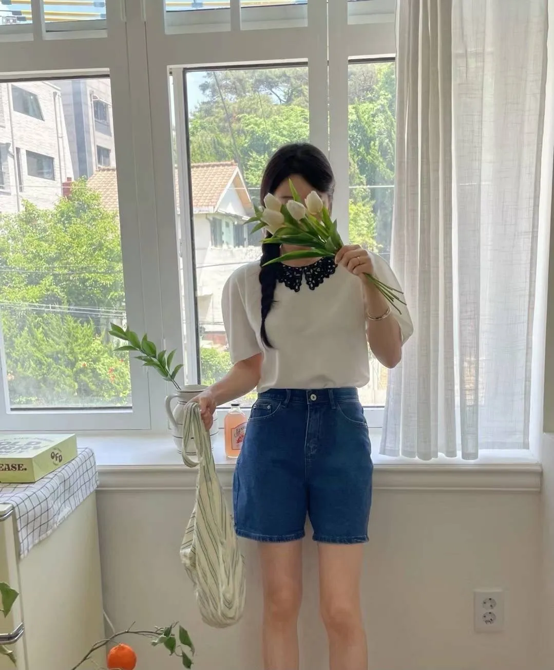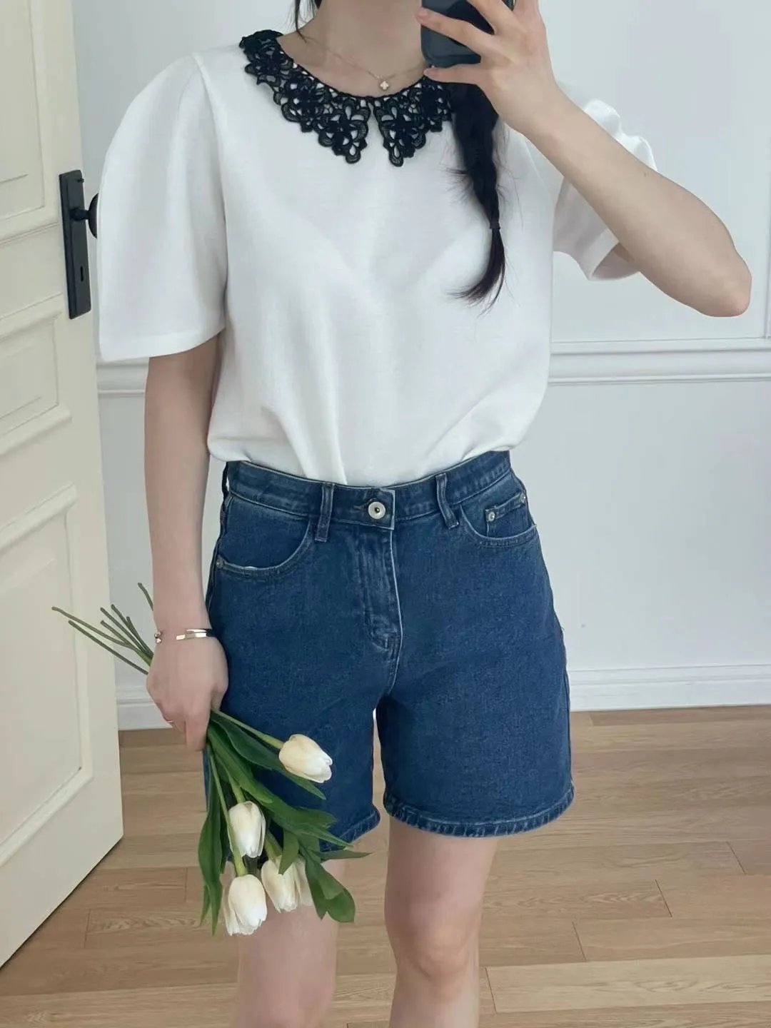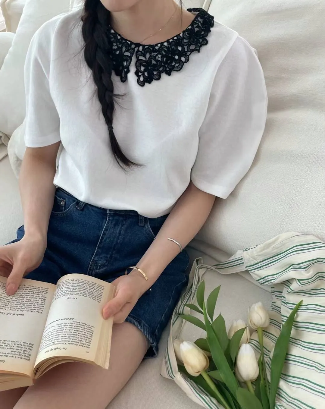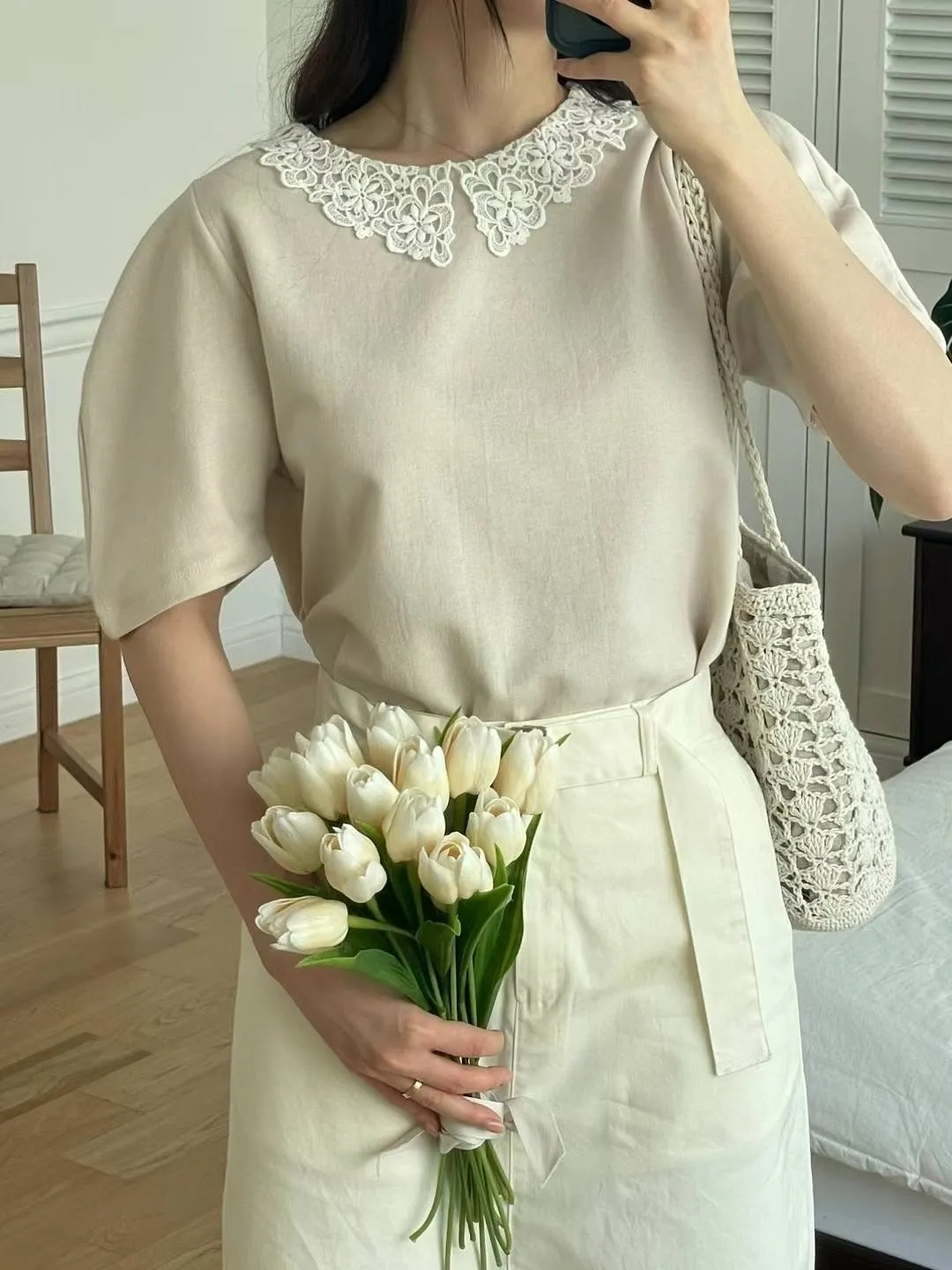 KM364細緻蕾絲領上衣 白 粉 官網價$599 線上價$569
