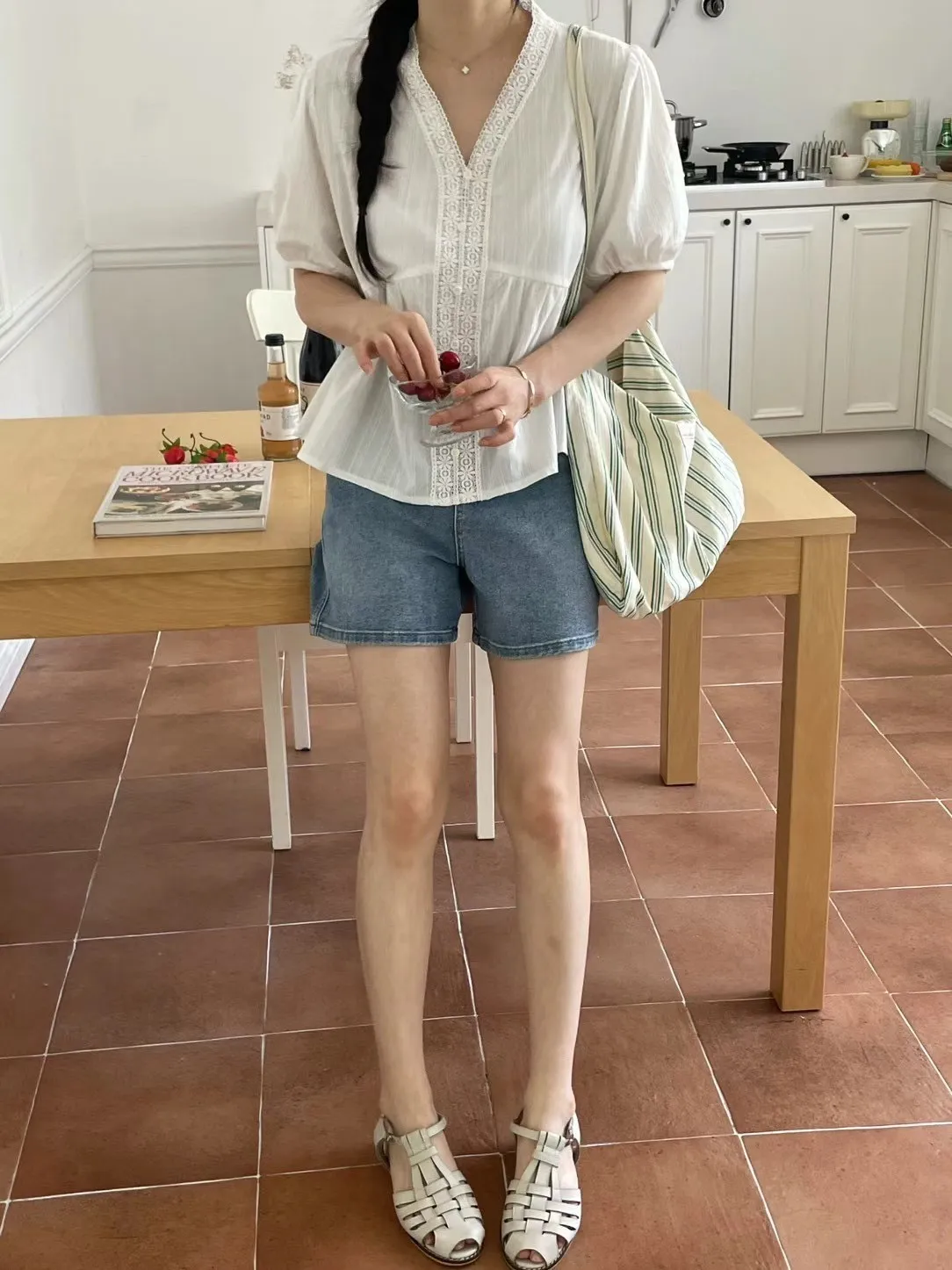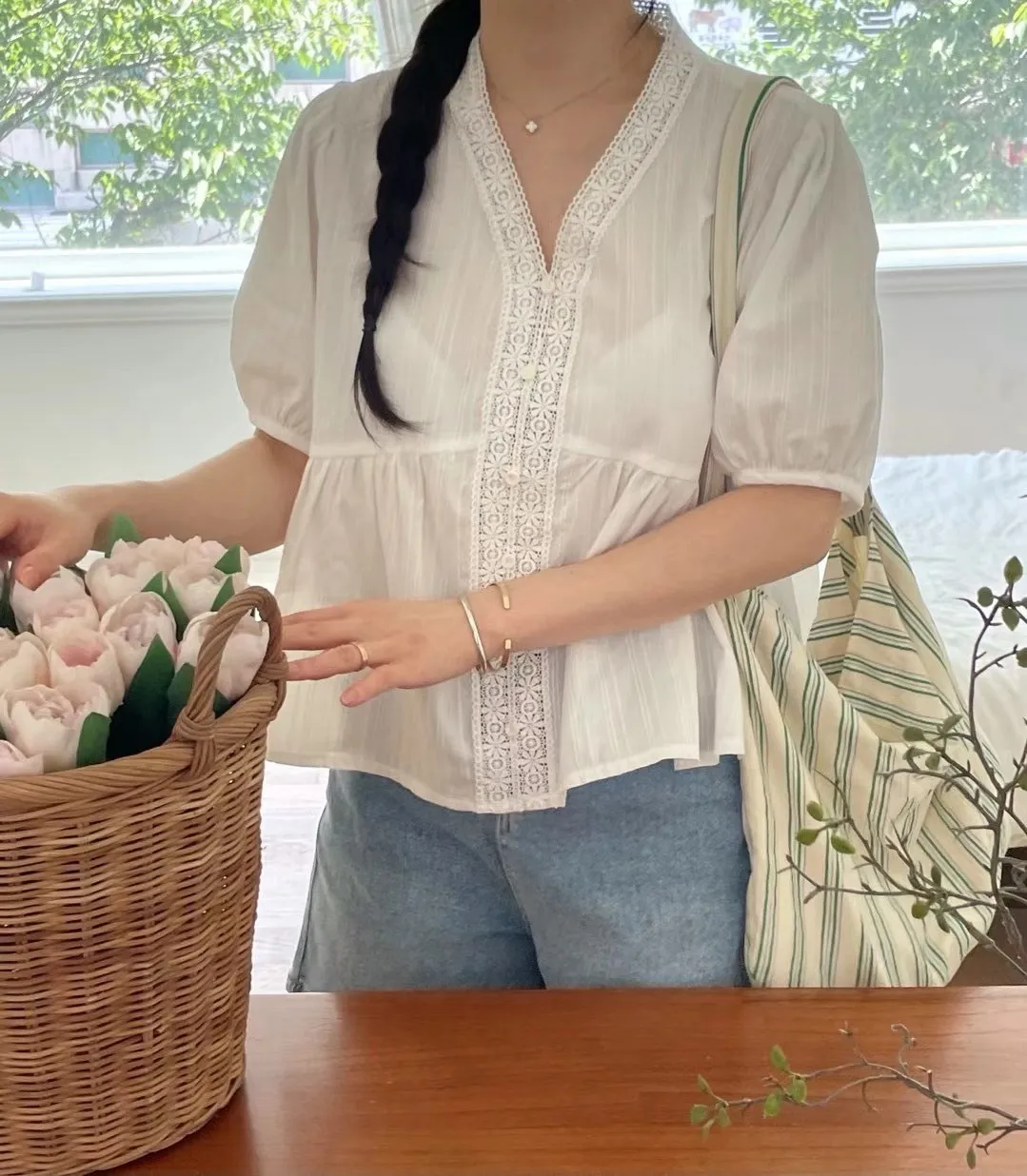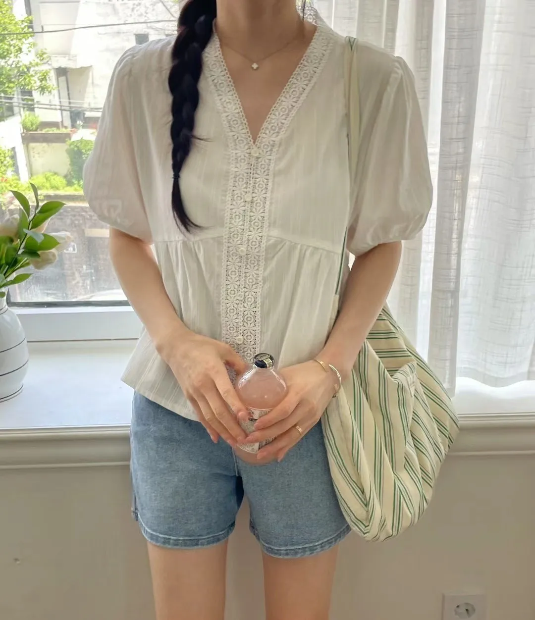 KM368氣質細緻V領娃娃裝上衣