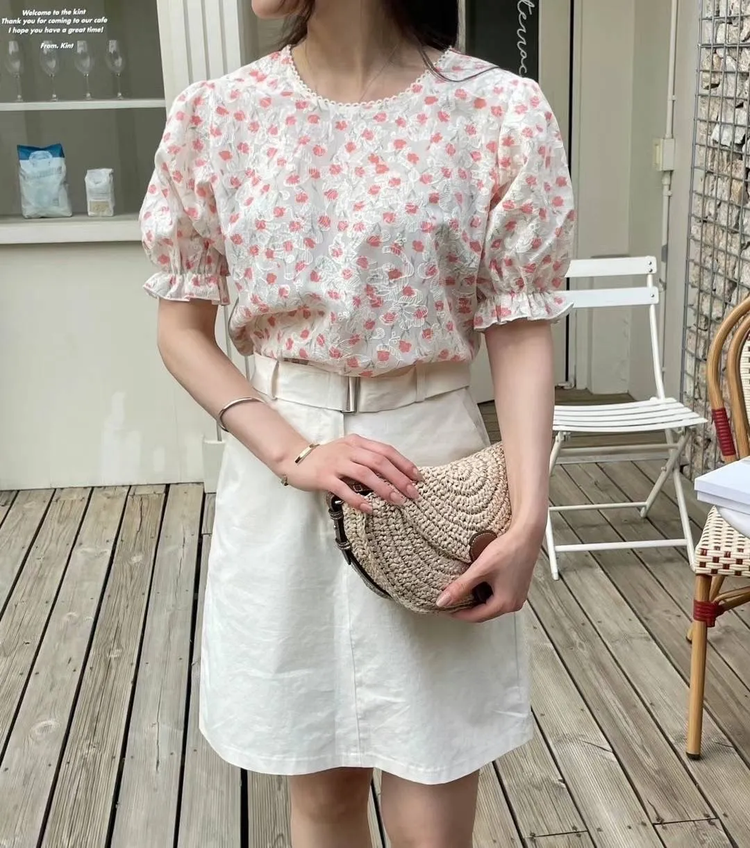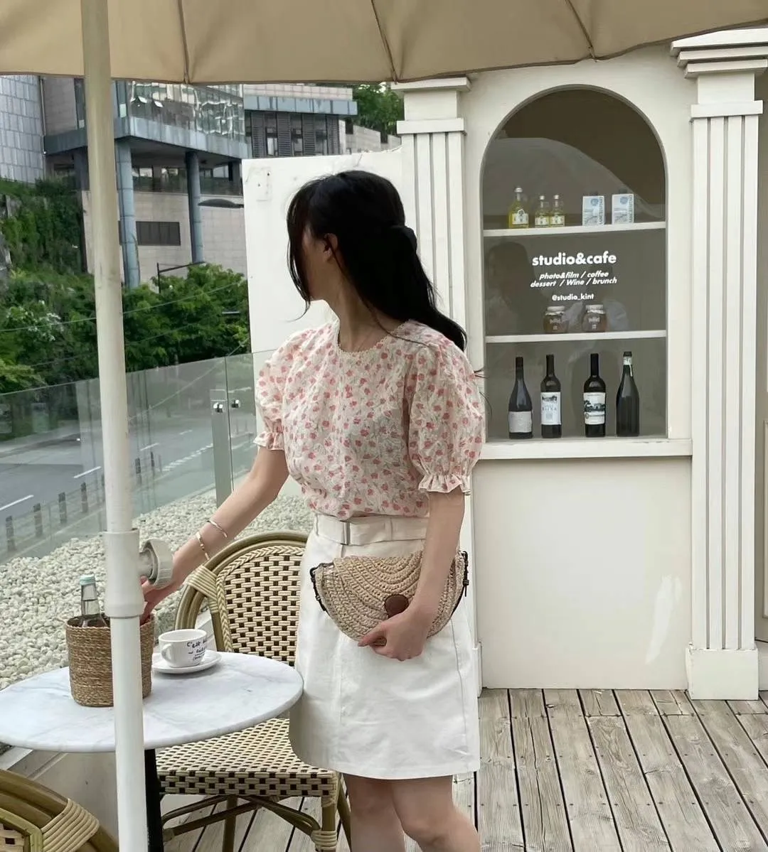 KM373可愛滿版小花蕾絲滾邊上衣