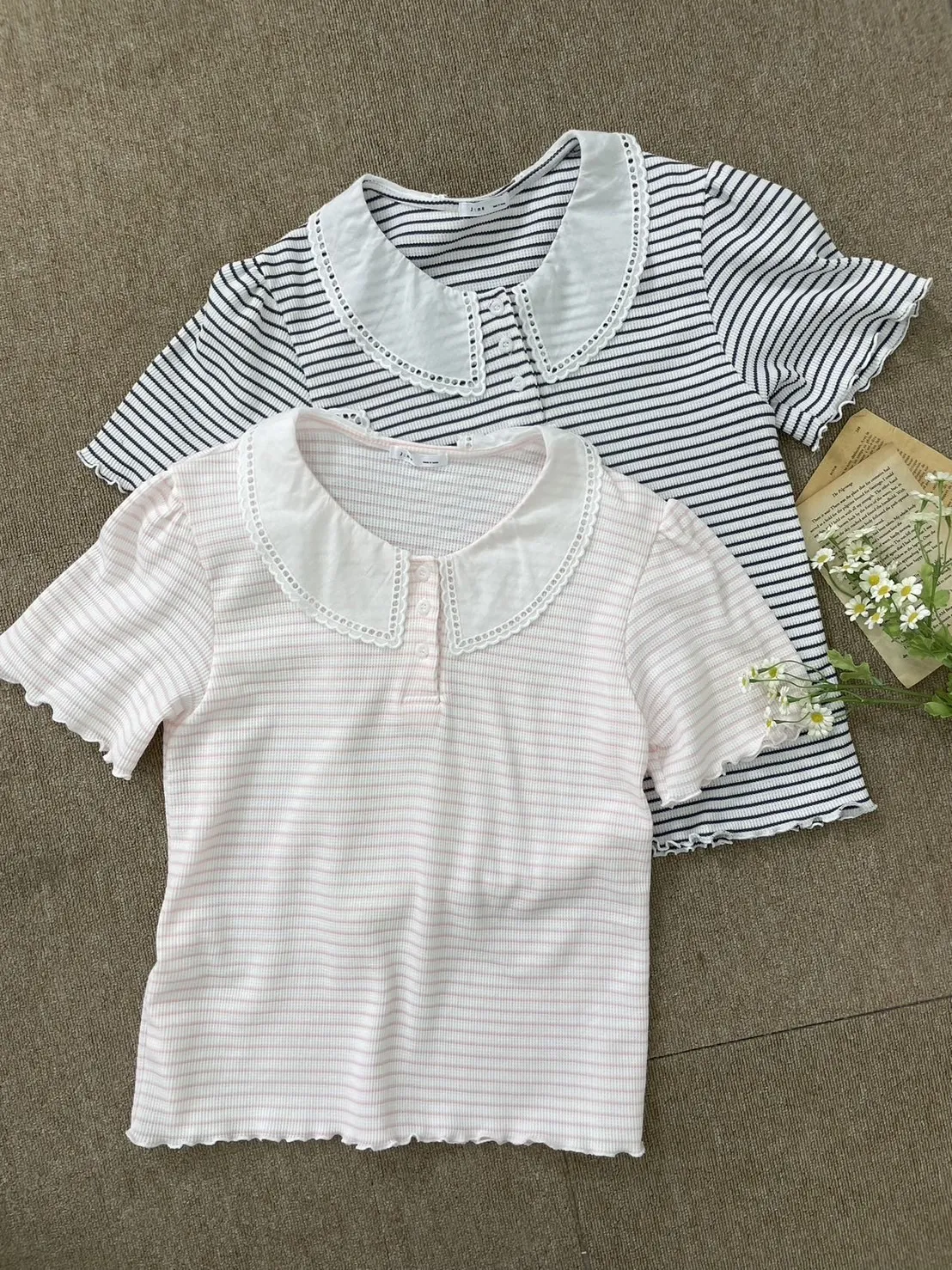 KM375推薦款細條紋翻領上衣 粉 黑 官網價$629 線上價$599