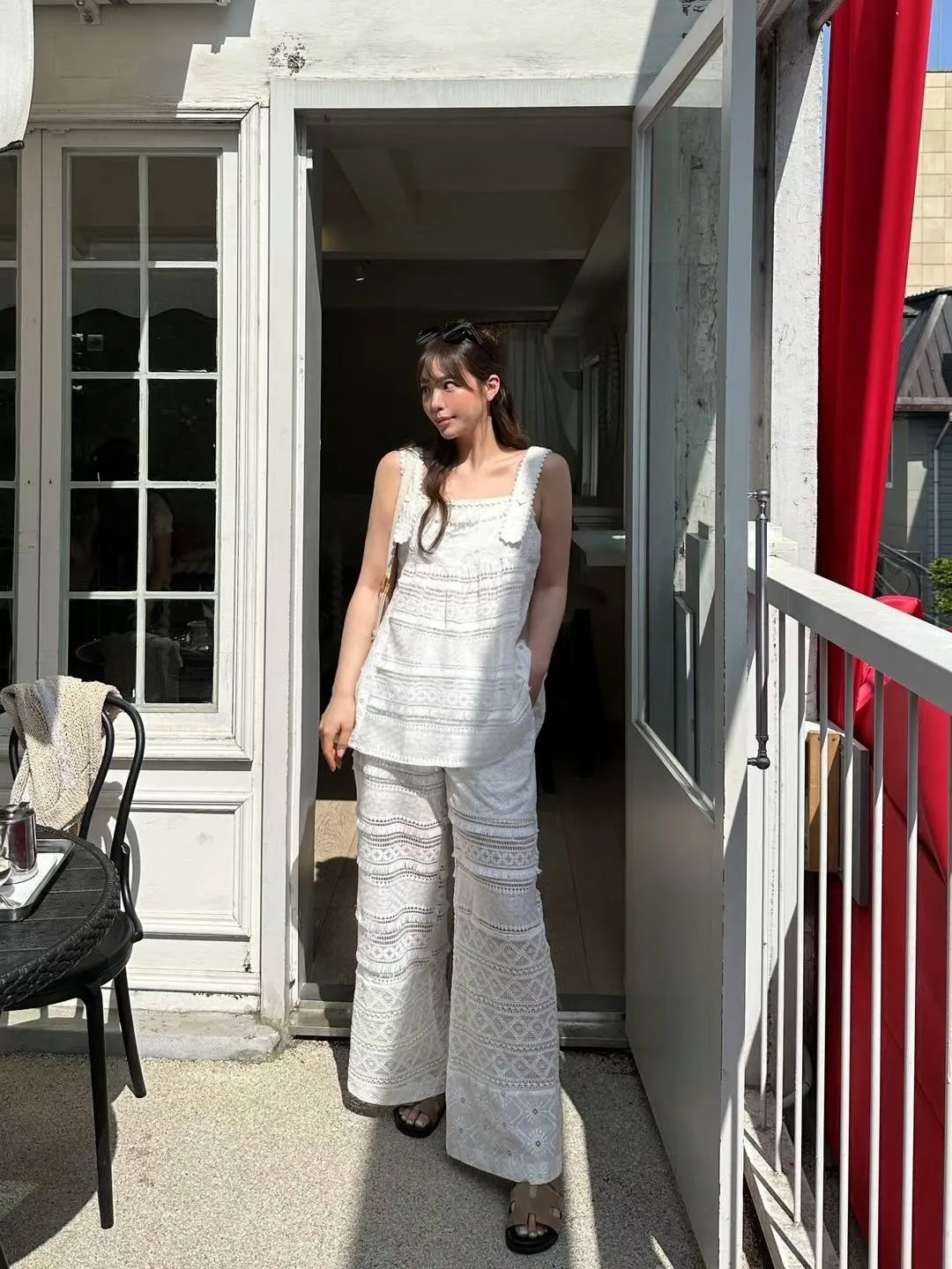 KM386套裝的波西米亞蕾絲長褲 白 黑 官網價$2220 線上價$2190