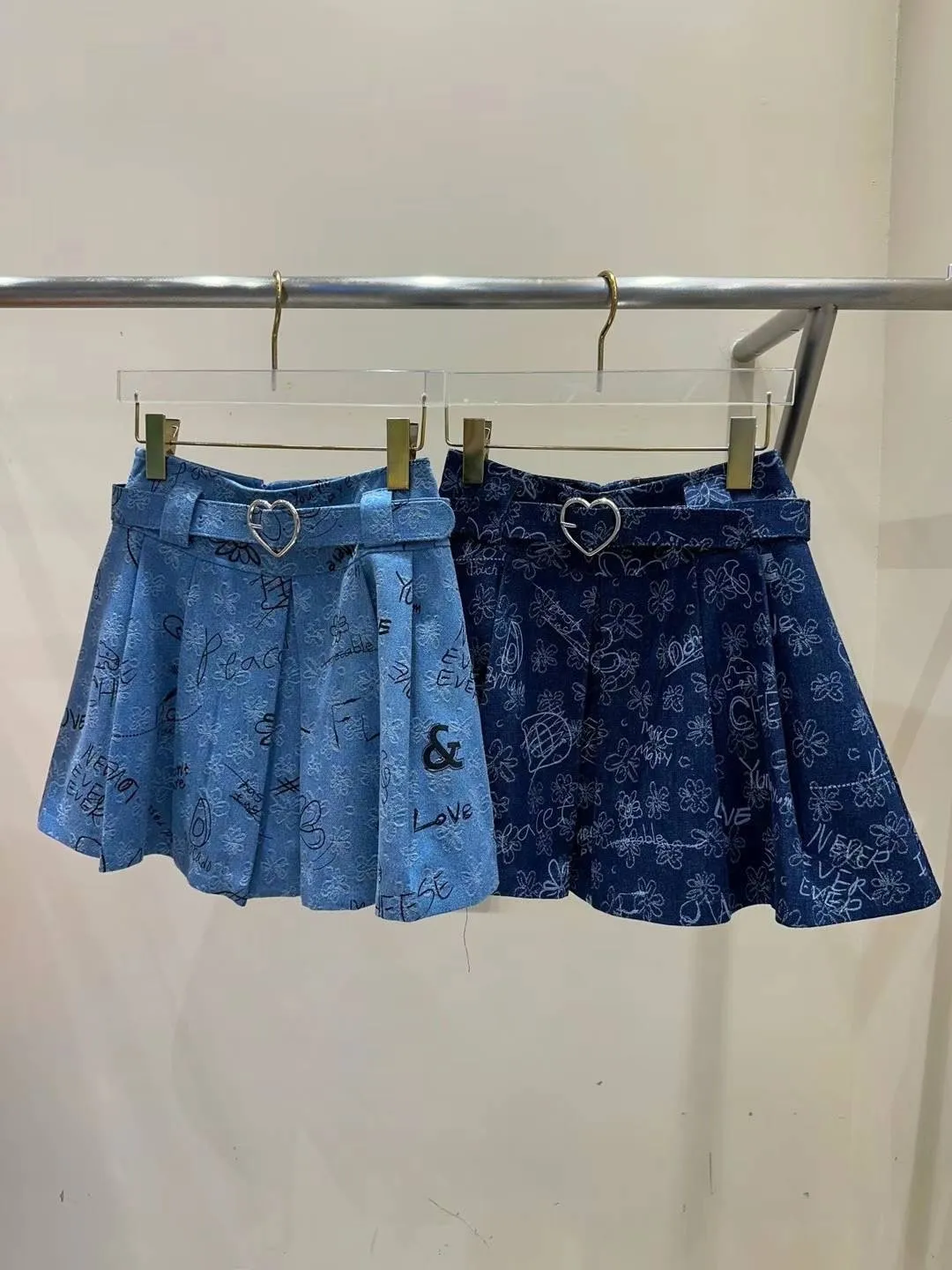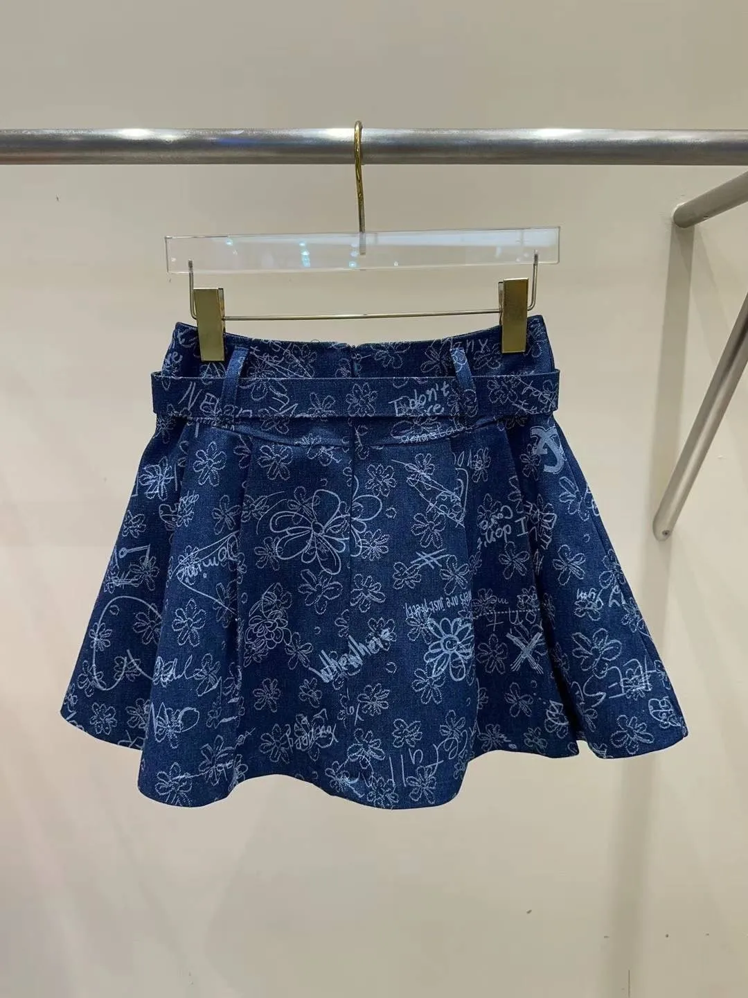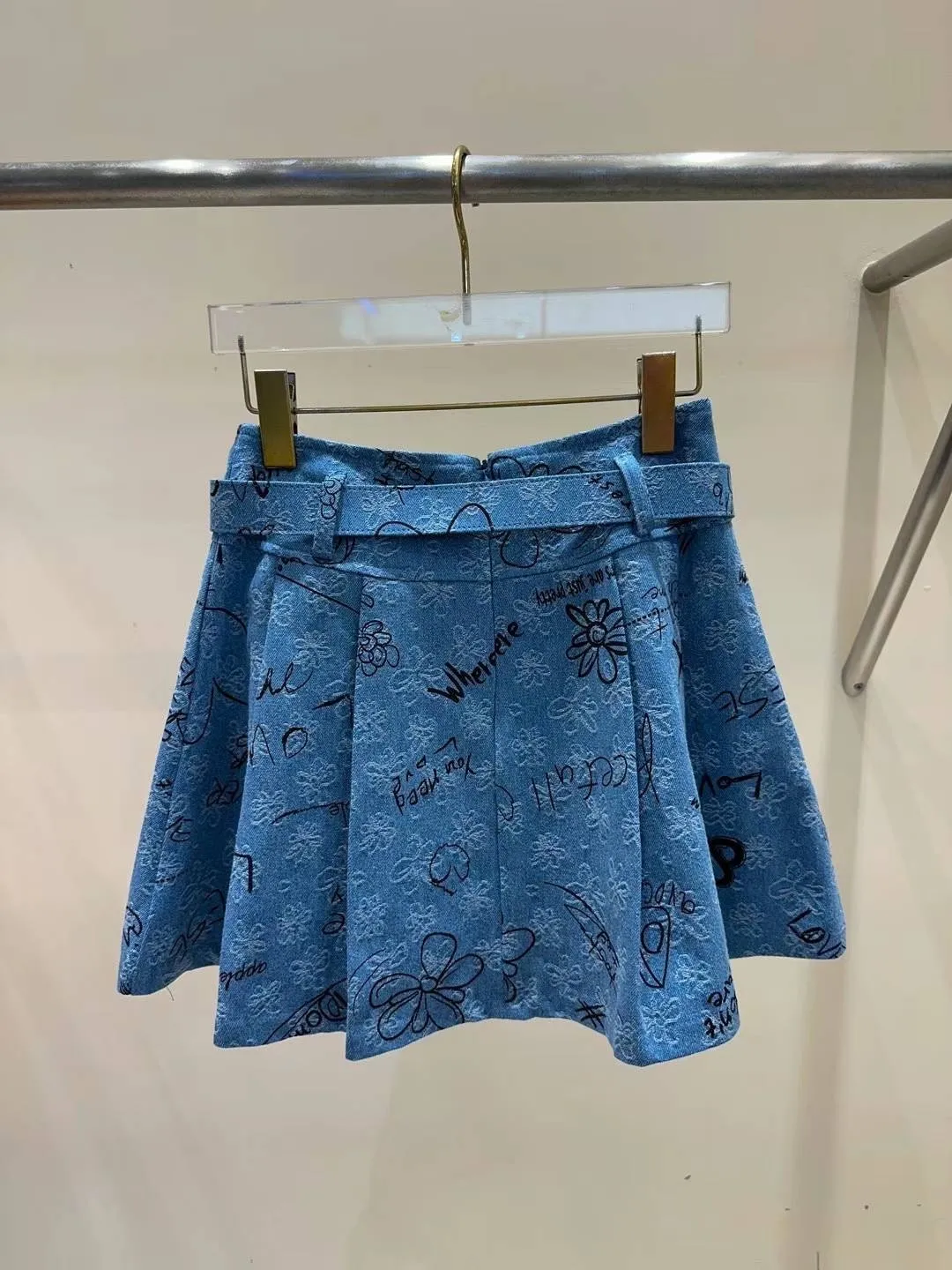 KM388美視覺丹寧塗鴉彩繪褲裙 淺藍 深藍 S M 官網價$1360 線上價$1330