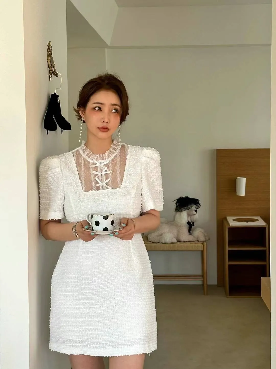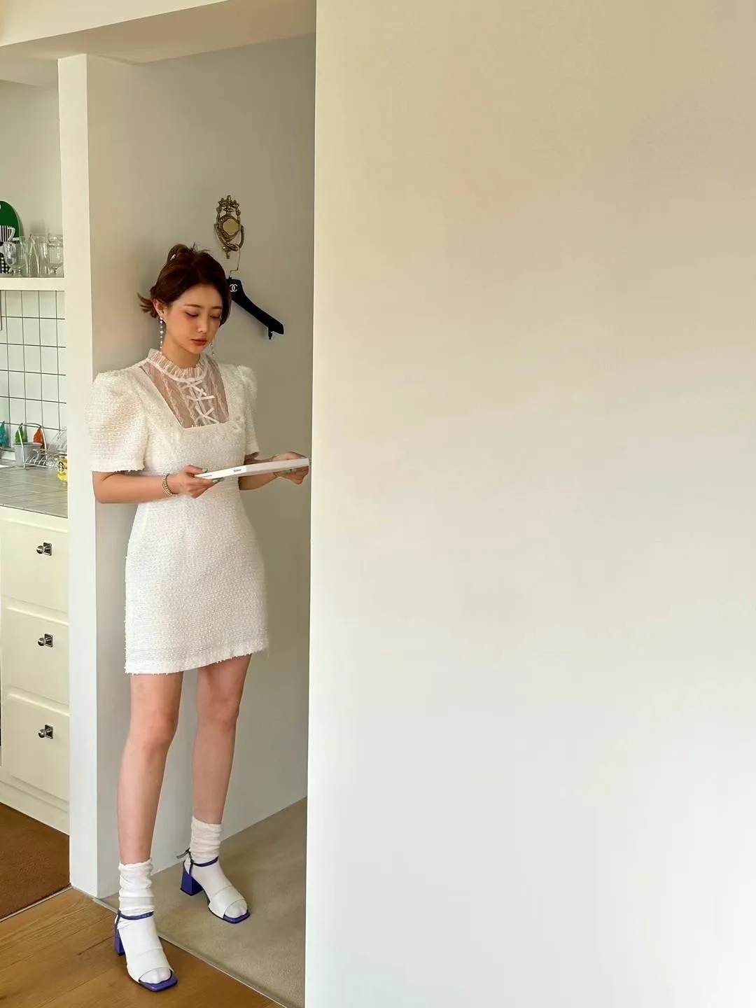 棉 柔軟網紗 手袖空間感 壓腹顯瘦 自然腰線 無口袋