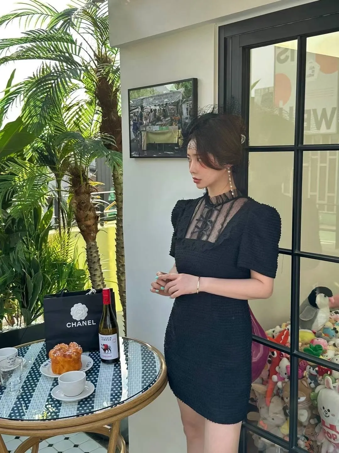 KM396氣質小性感胸透膚連身洋裝 白 黑 官網價$1950 線上價$1920