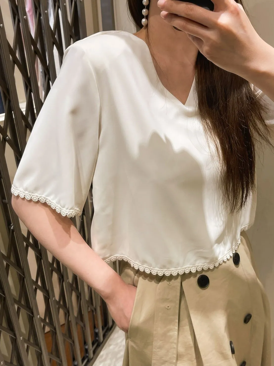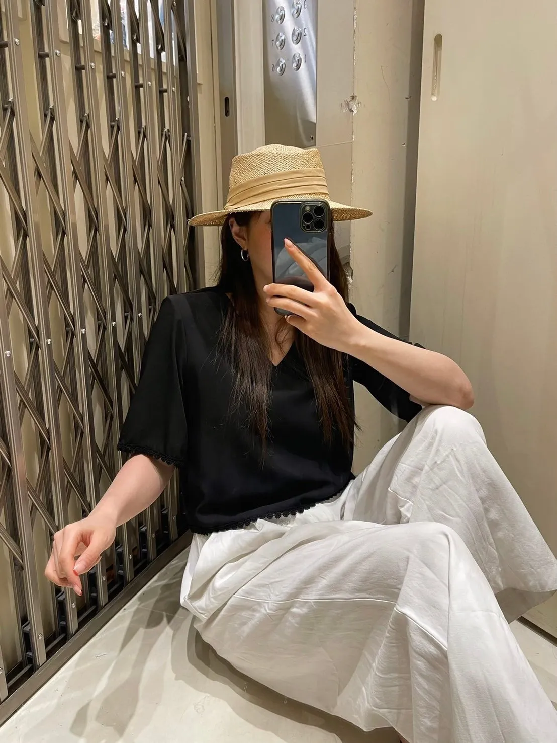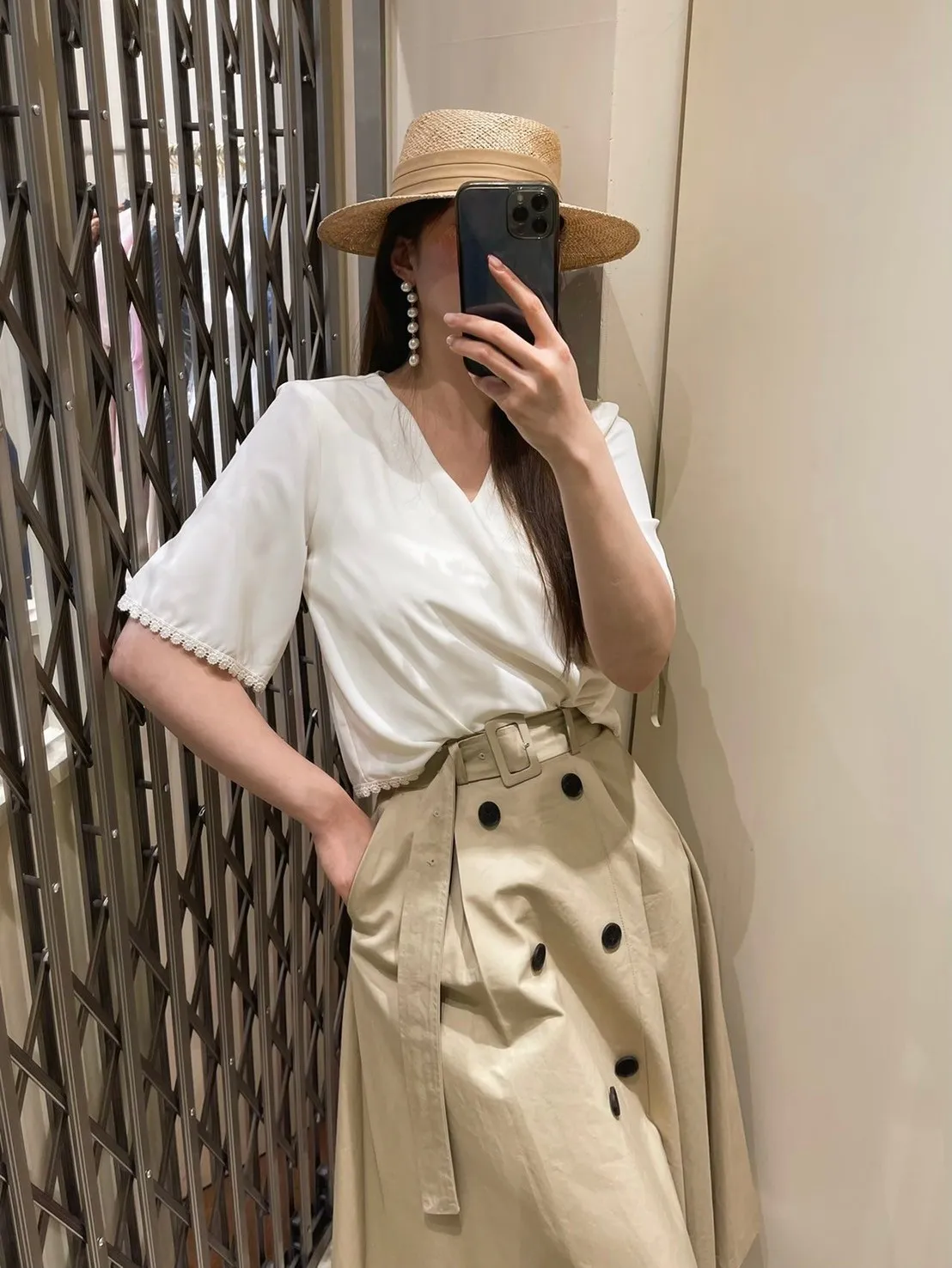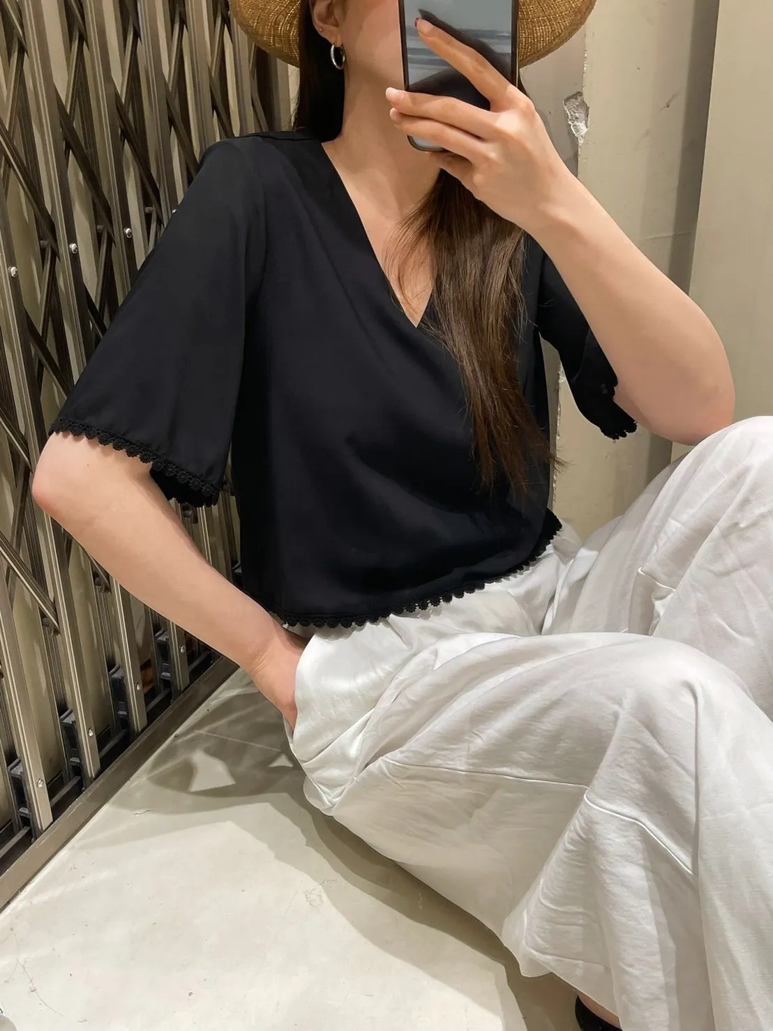 人造絲 推薦款 科技涼感纖維 花朵袖口下擺 V領顯瘦