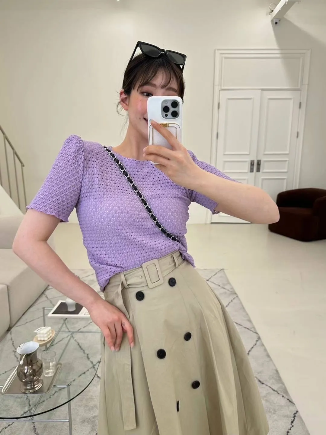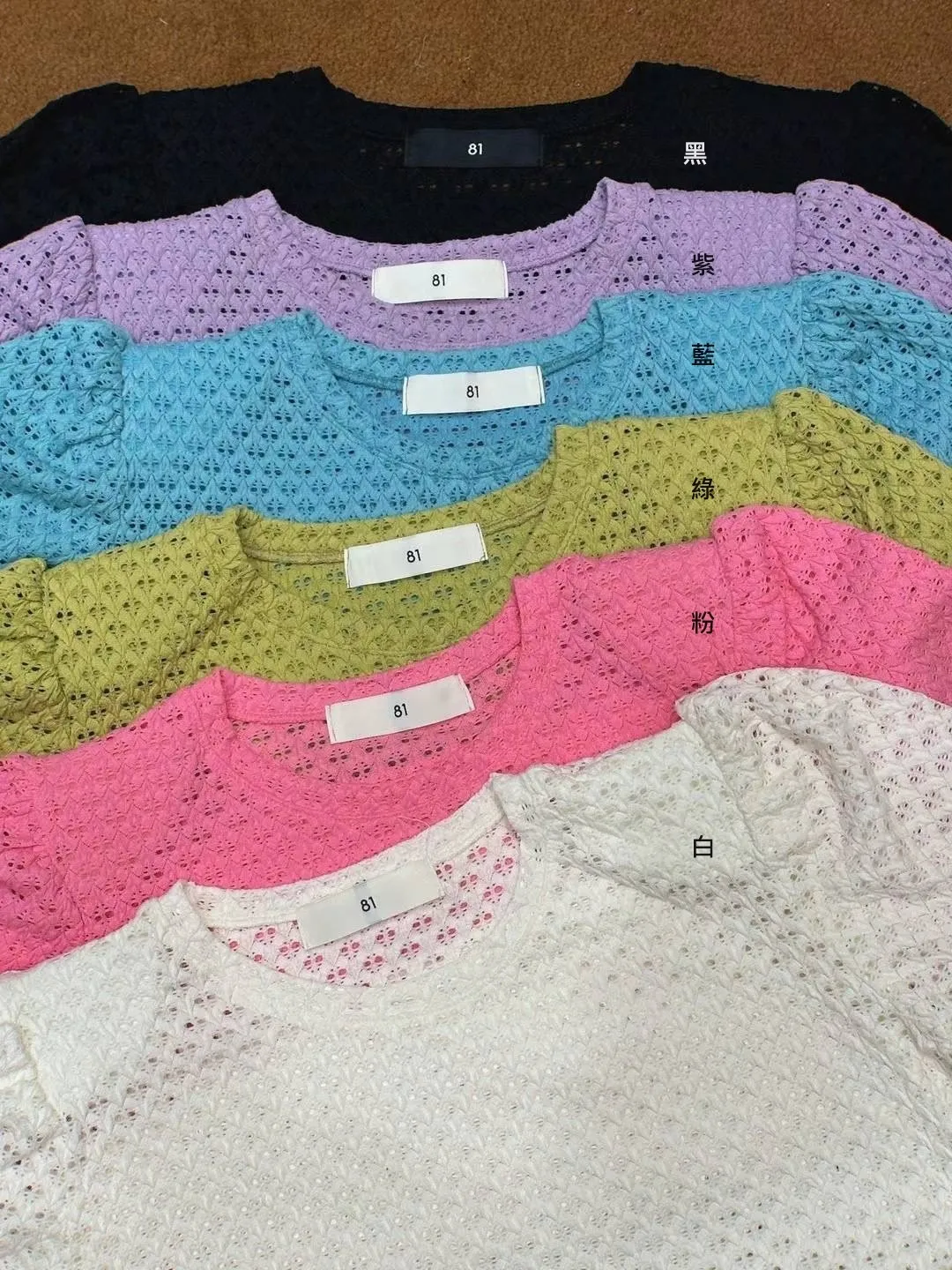 KM408簍空洞洞華夫格短袖上衣 白 綠 藍 粉 紫 橘 官網價$920 線上價$890