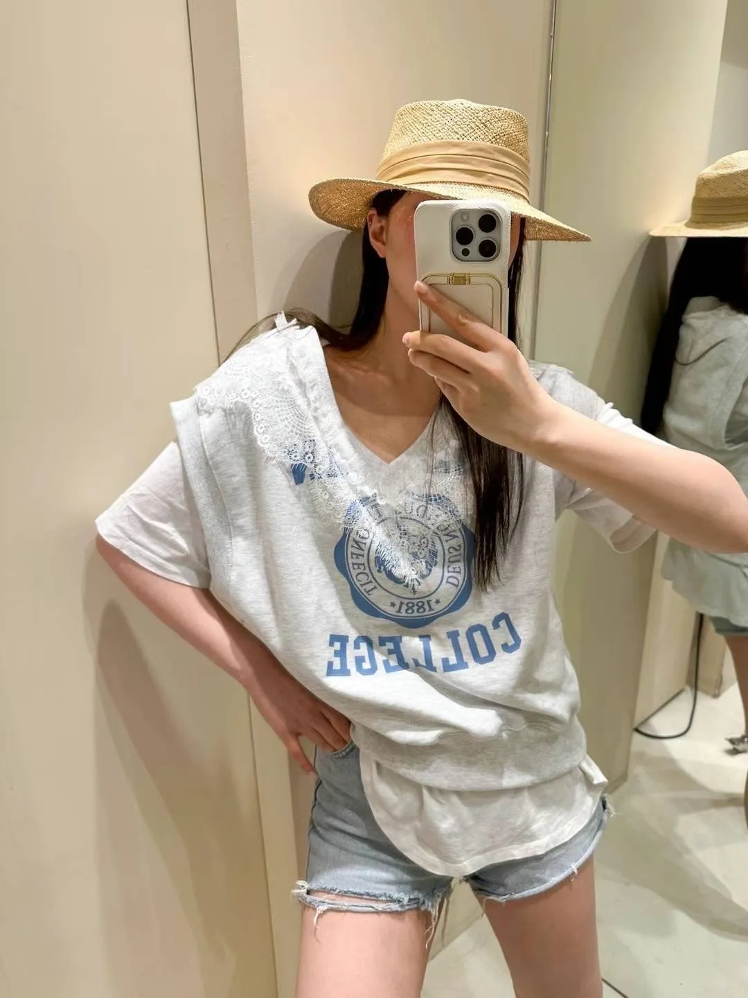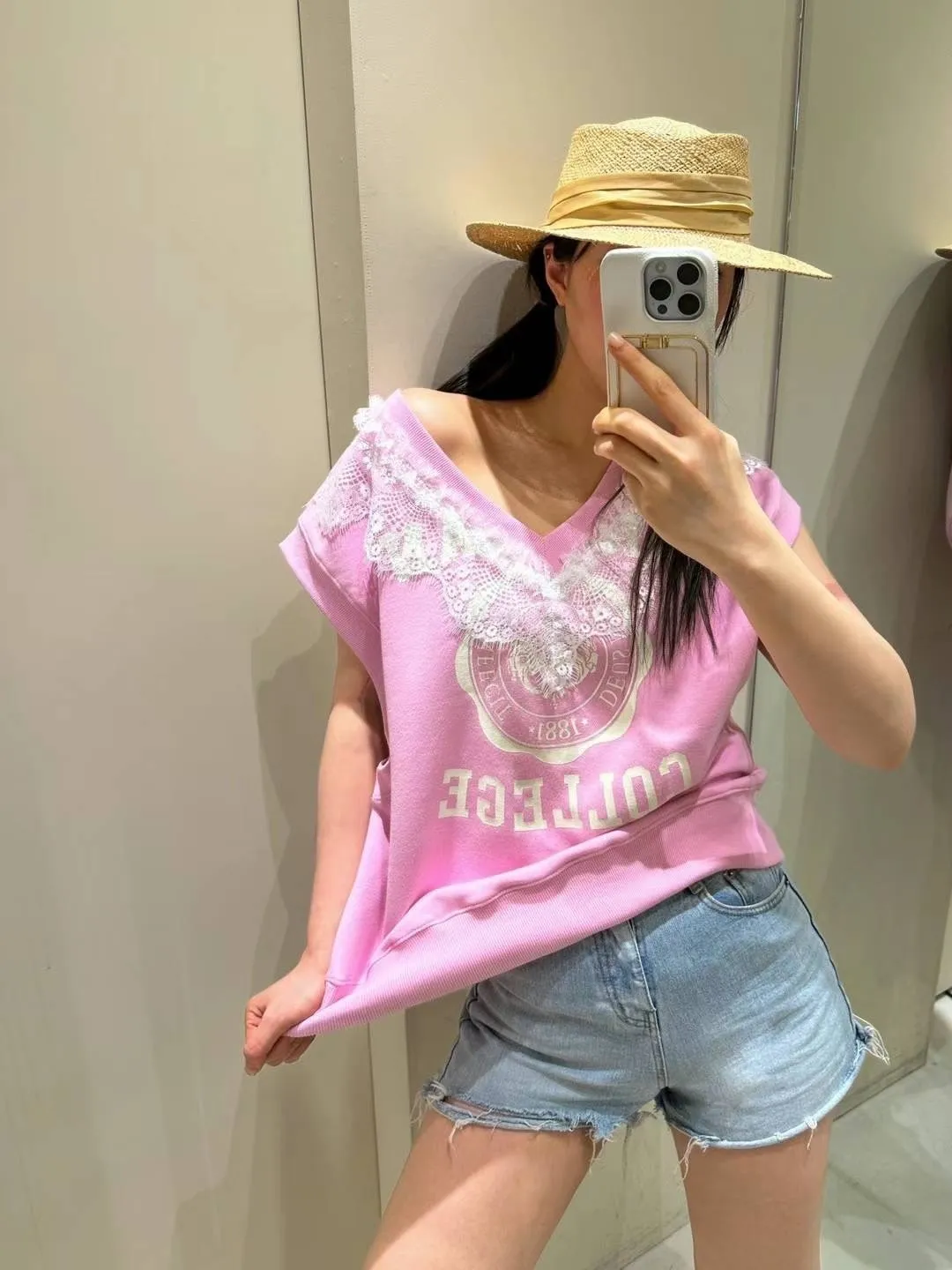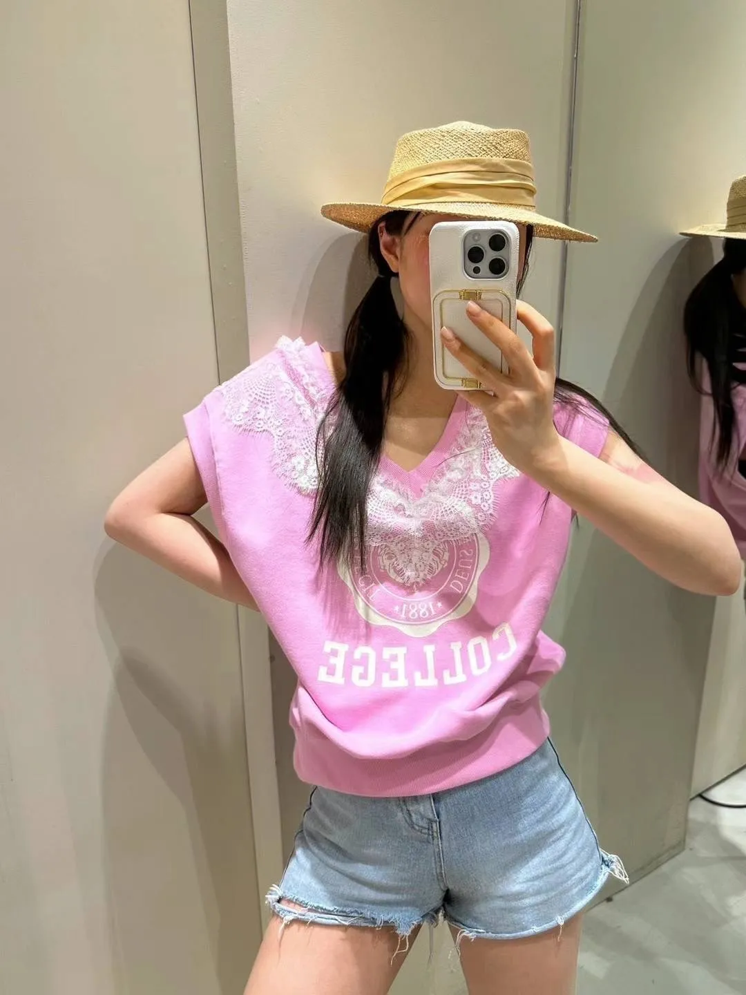 KM412學院風V領蕾絲無袖背心 灰 粉 官網價$1210 線上價$1180