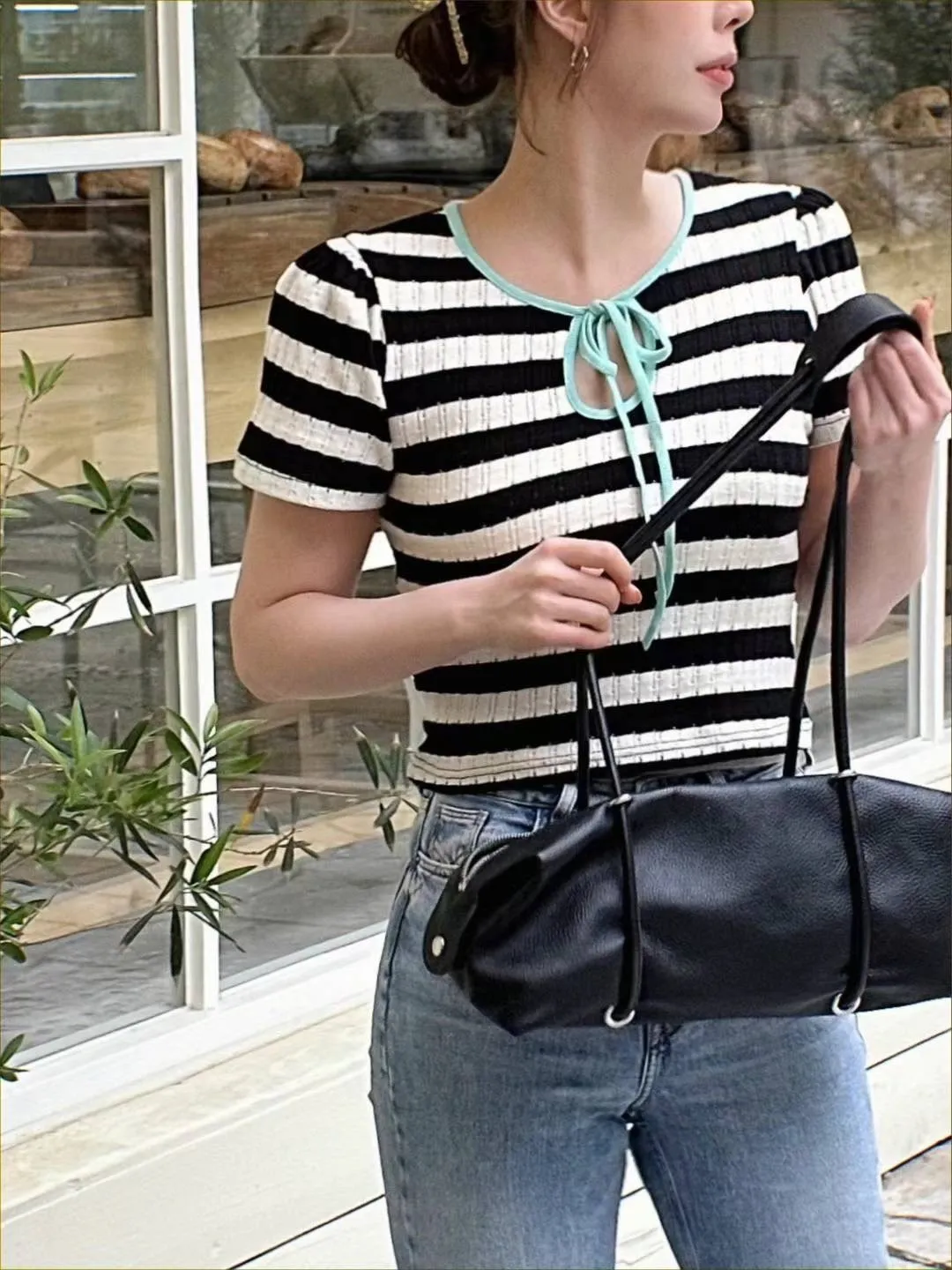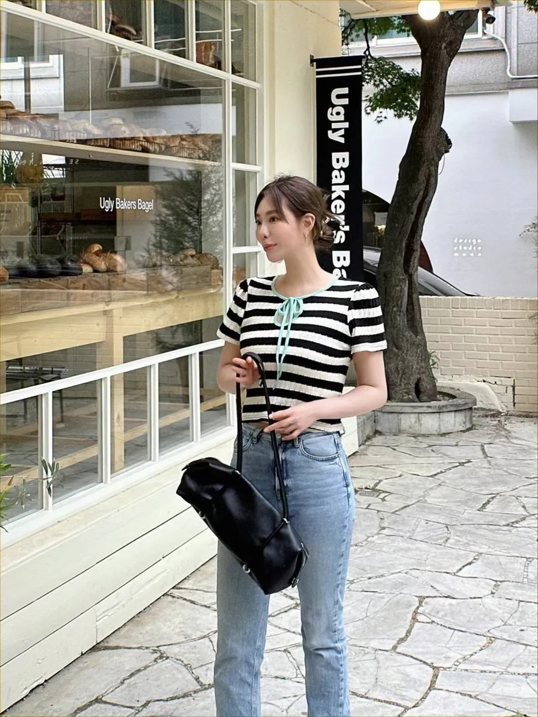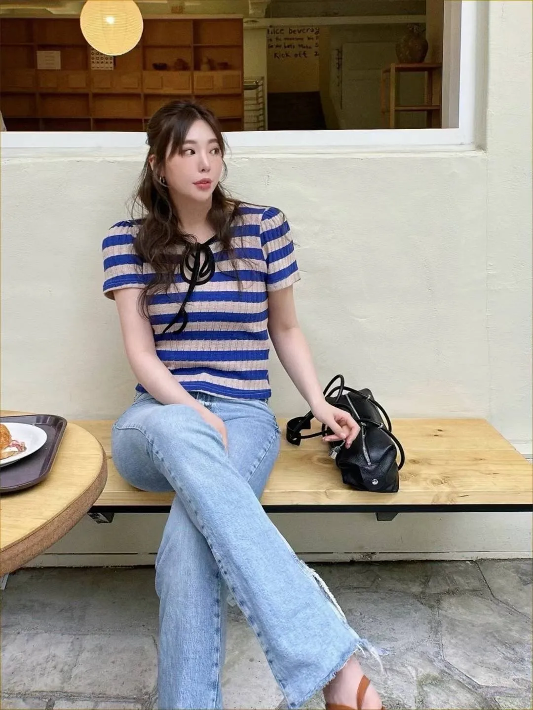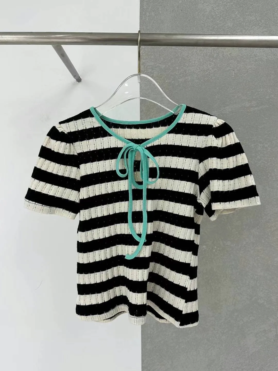 KM415跳色胸綁帶橫條上衣(橫條分色) 黑 藍 官網價$1050 線上價$1020