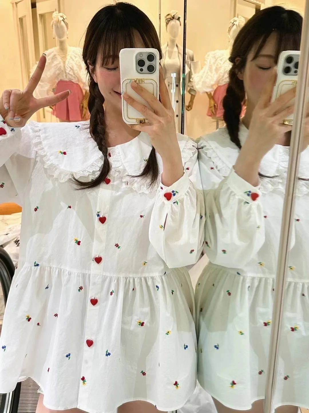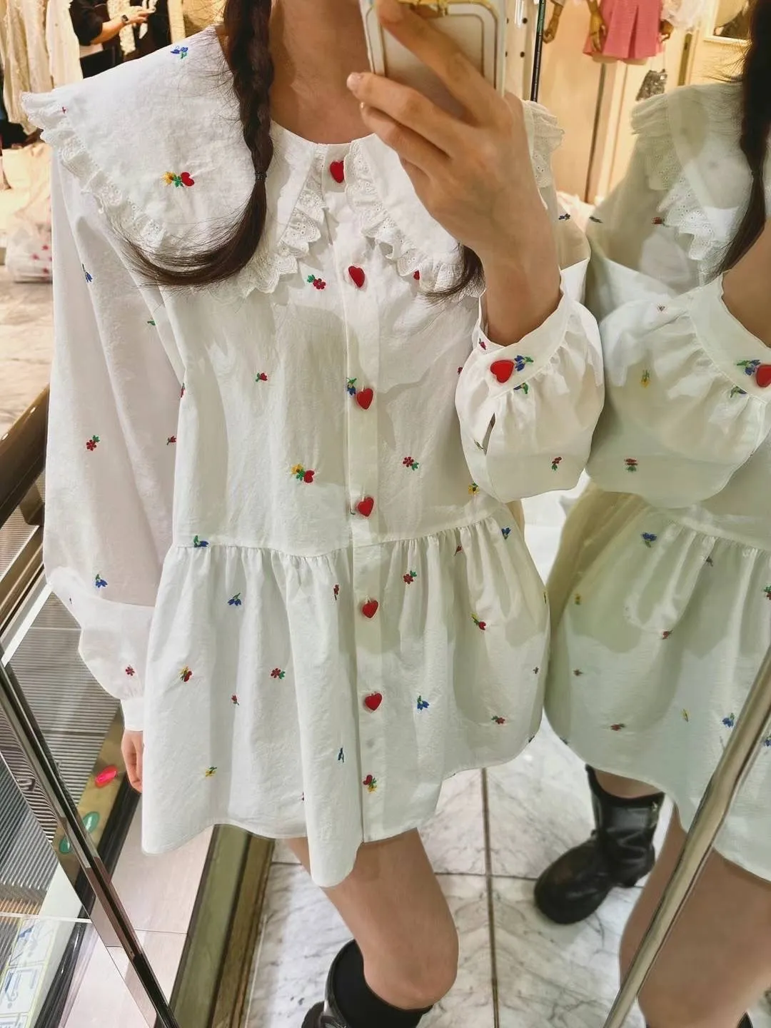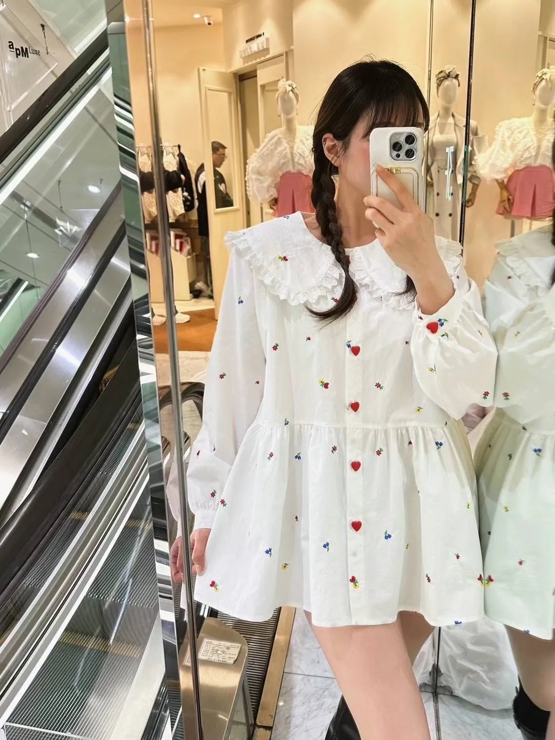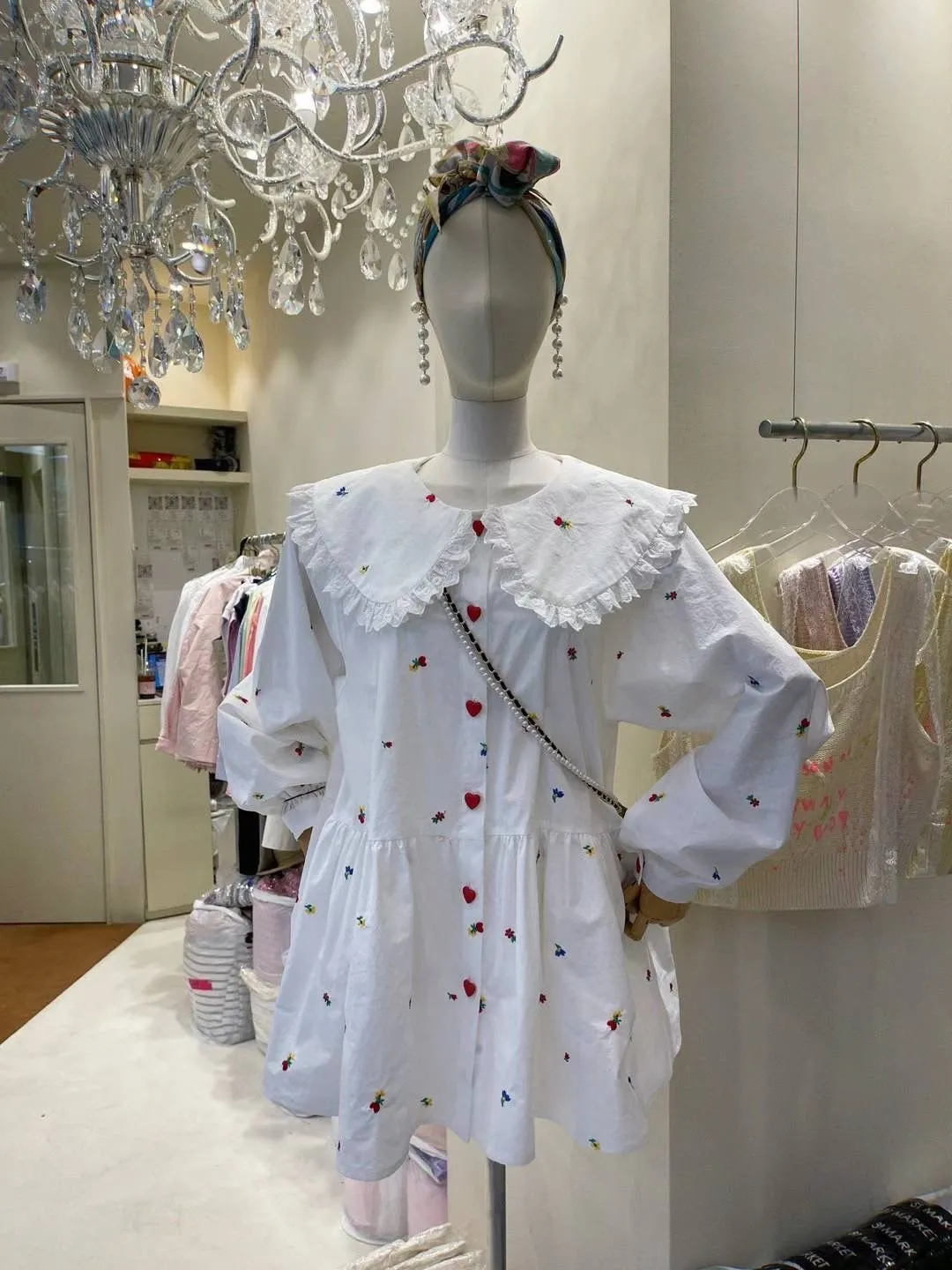 KM417愛心釦繽紛小花翻領長版上衣 官網價$2220 線上價$2190