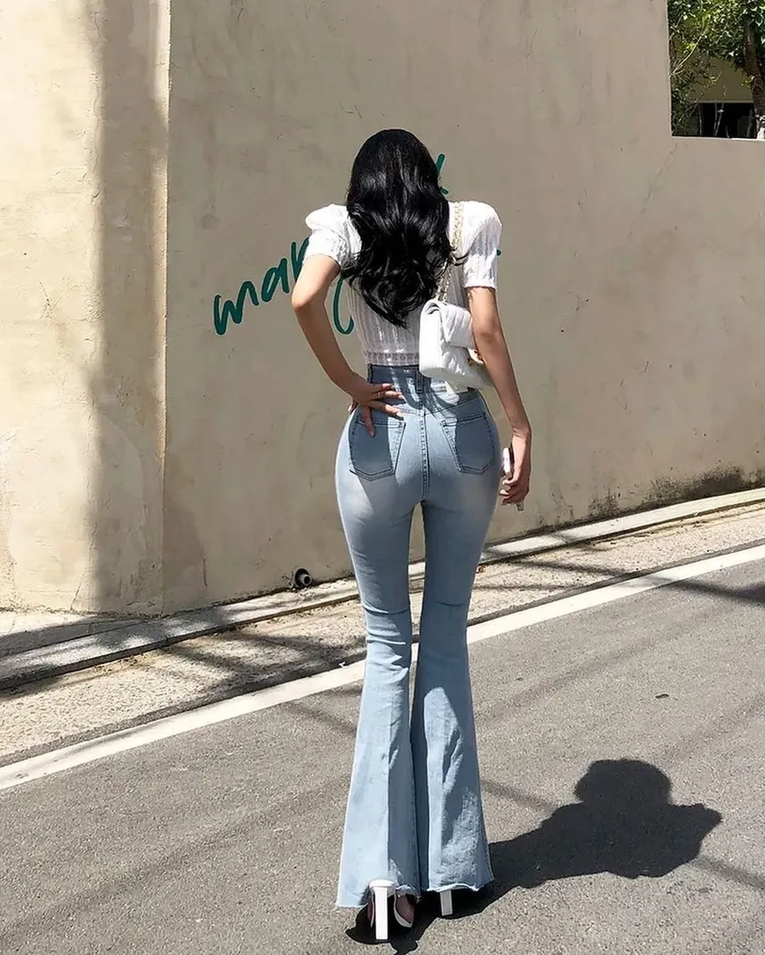 KM440雙口袋牛仔喇叭淺藍長褲(只有S號) 官網價$1290 線上價$1260