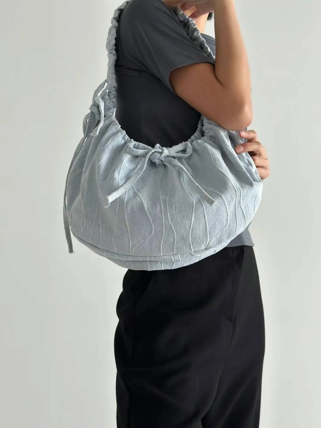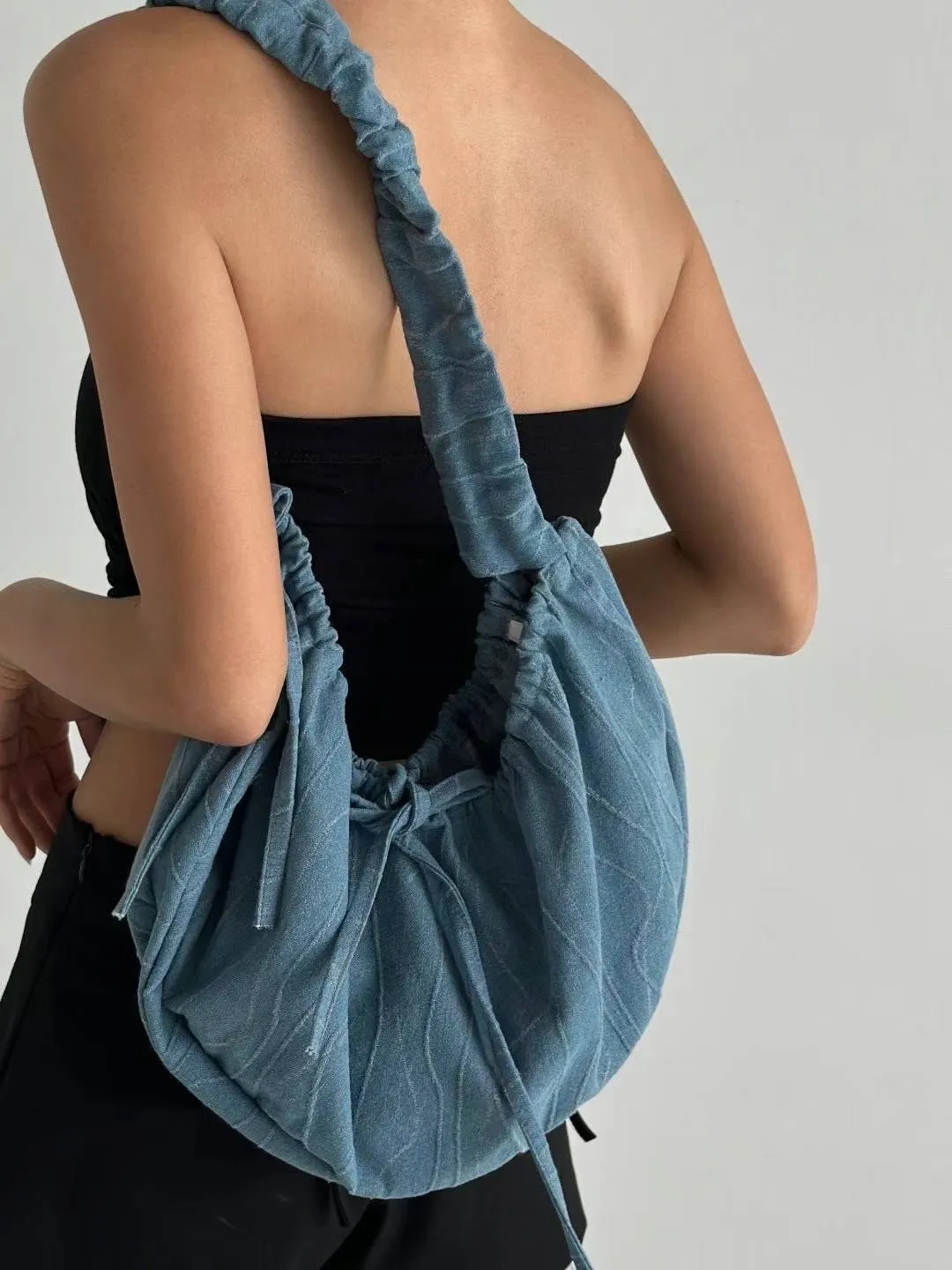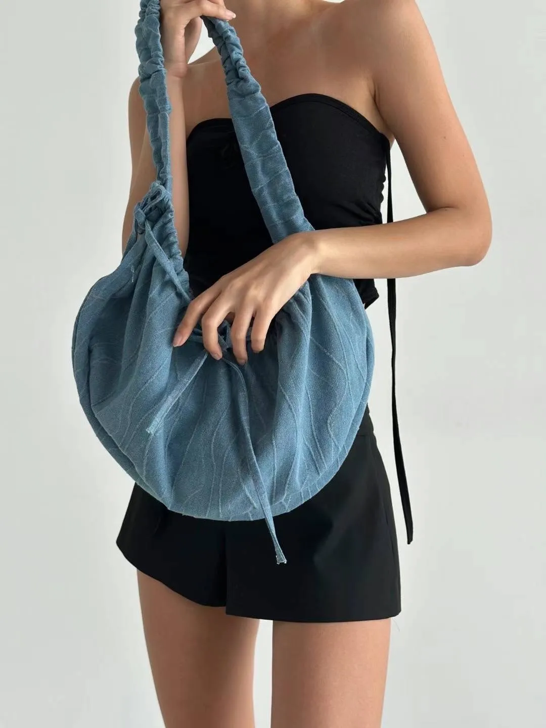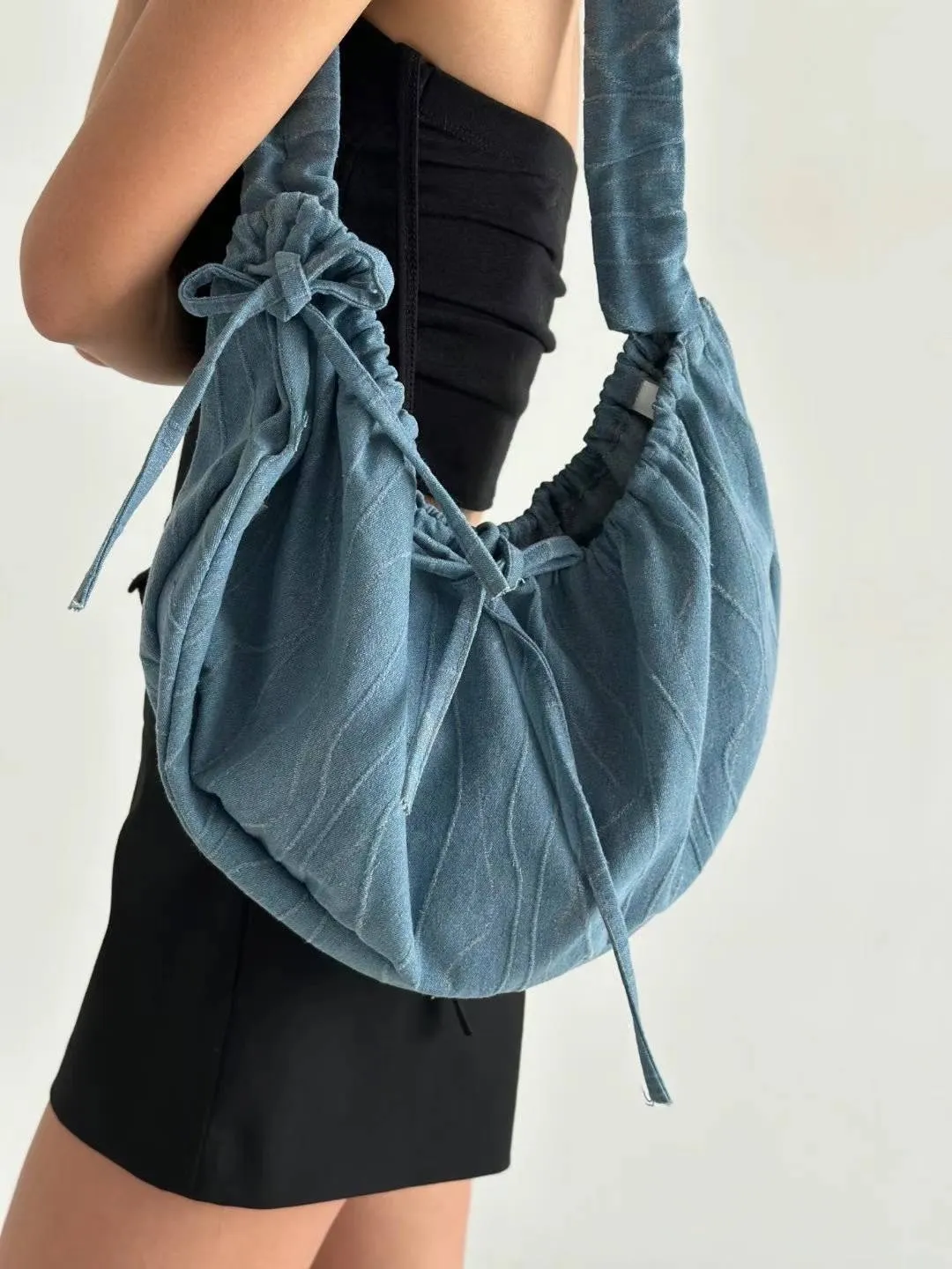 KM451牛仔丹寧隨性流浪包 淺藍 深藍 官網價$720 線上價$690牛仔棉 挺料立體丹寧面料 背帶可調整長度