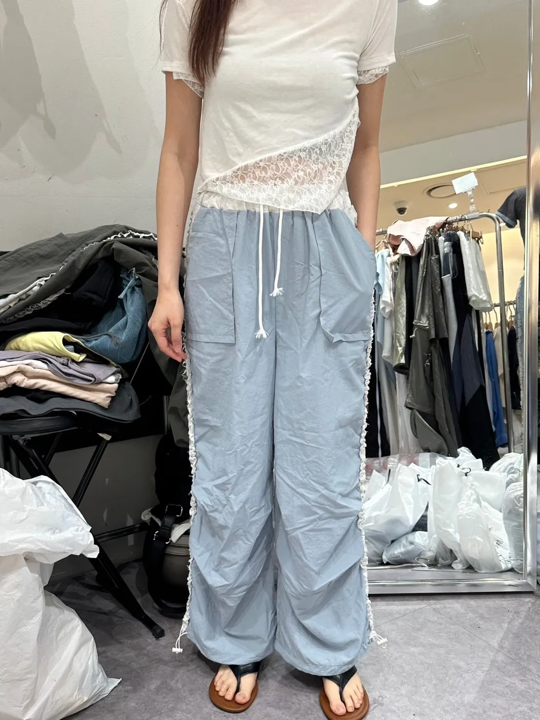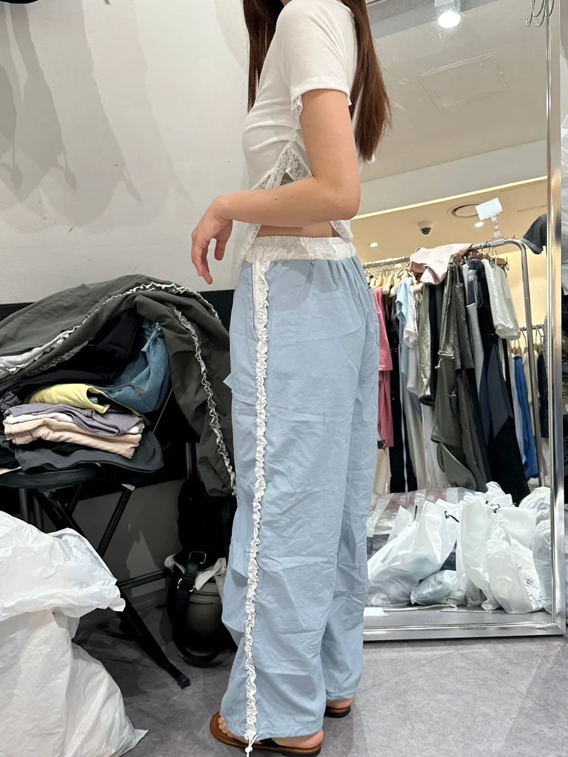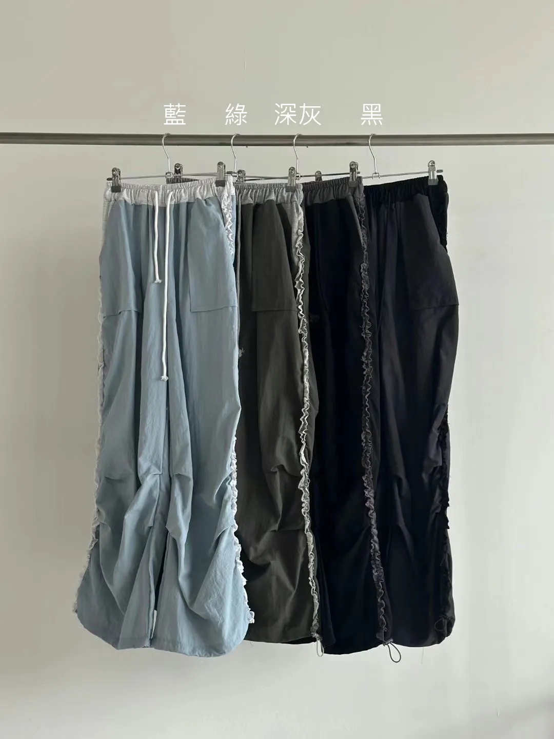 KM456拼接側荷葉細邊長褲 藍 綠 深灰 黑 官網價$780 線上價$750