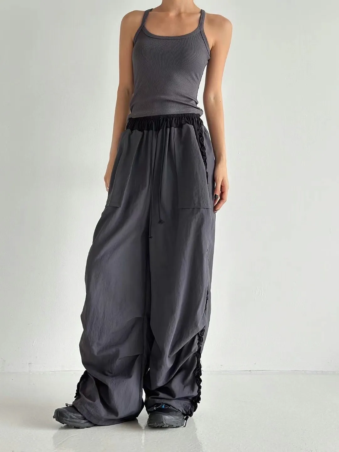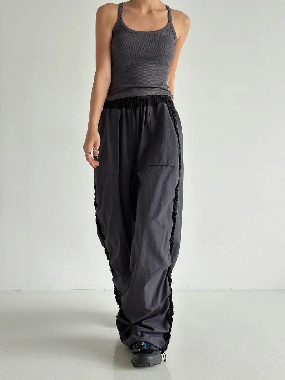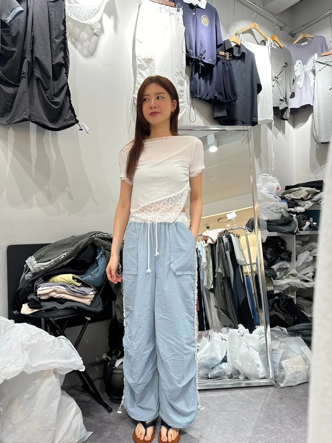 KM456拼接側荷葉細邊長褲 藍 綠 深灰 黑 官網價$780 線上價$750