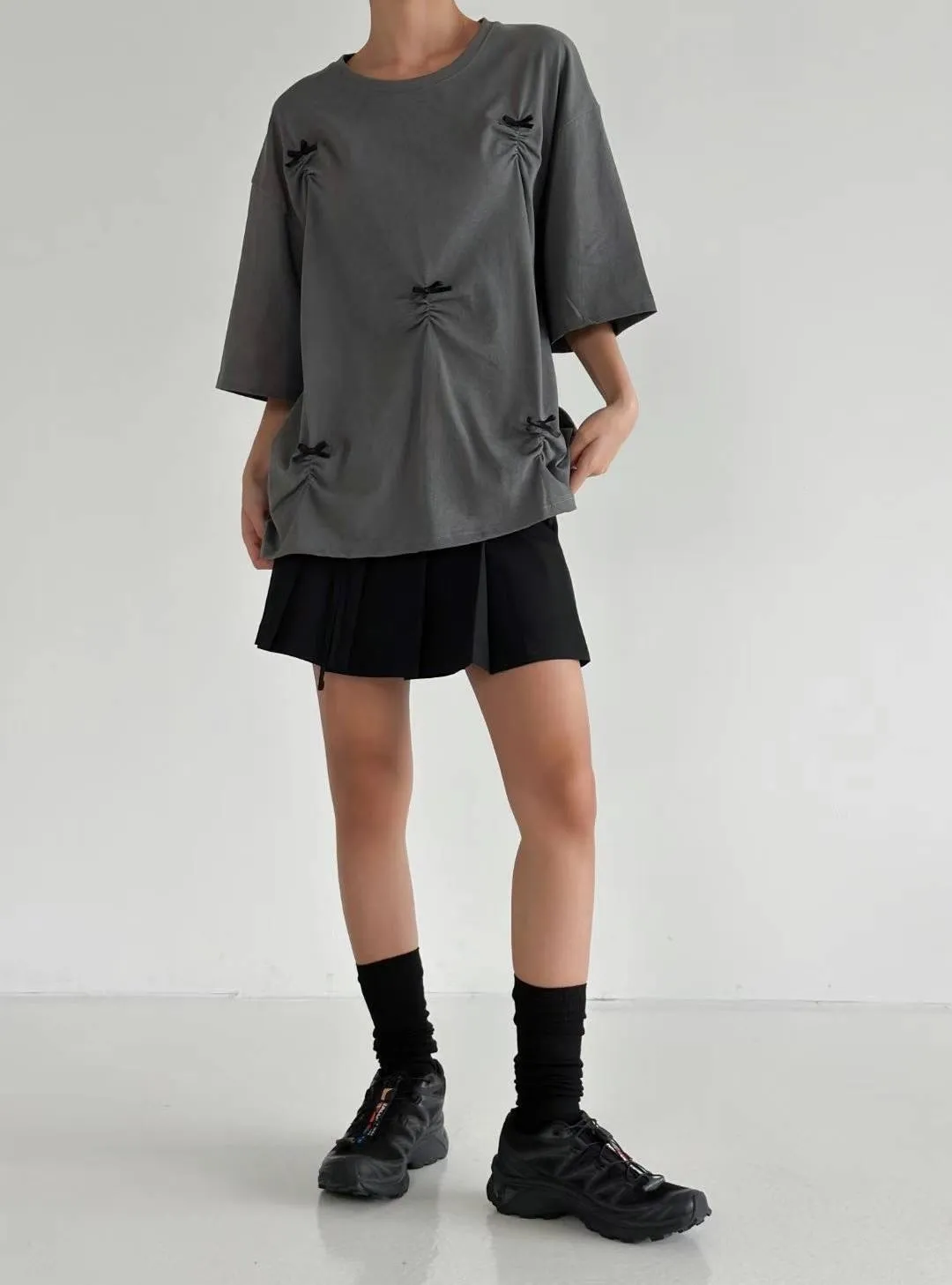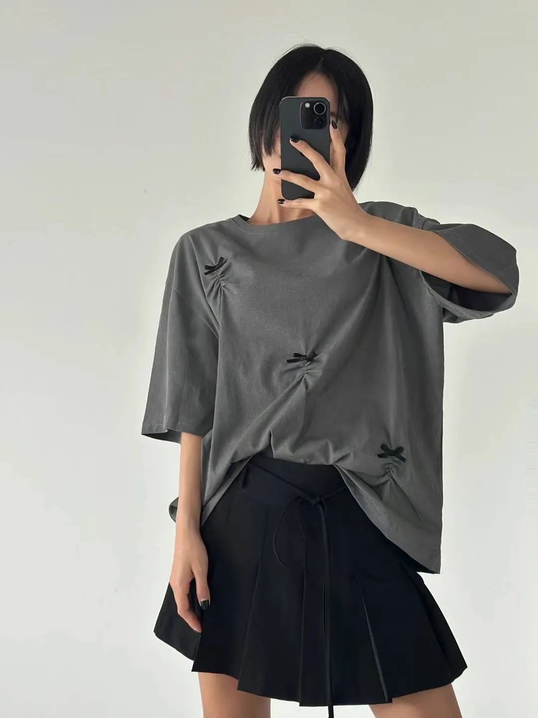 KM457可愛蝴蝶結抓皺可愛Tshirt 奶茶 粉 綠 灰 官網價$570 線上價$540