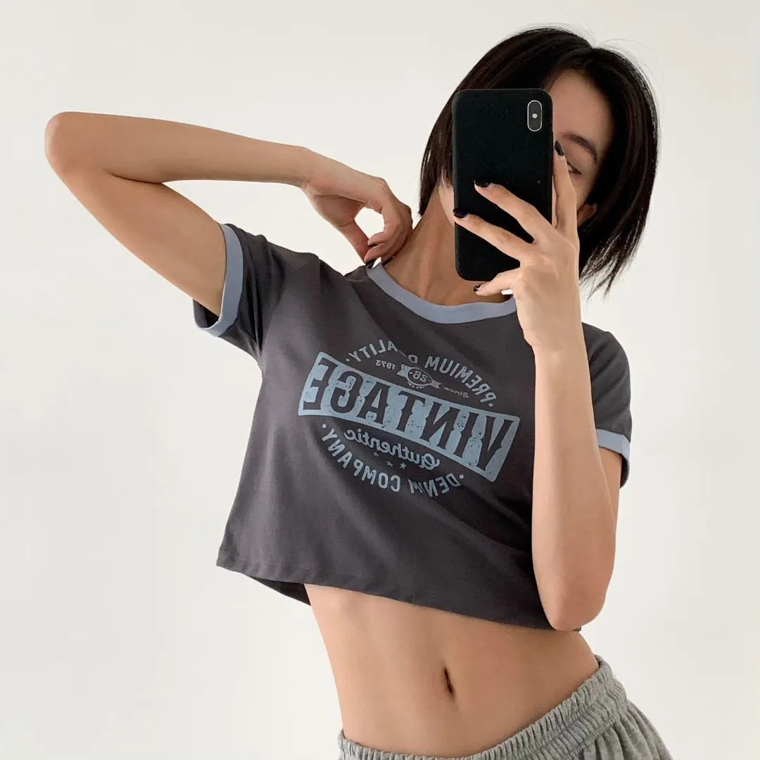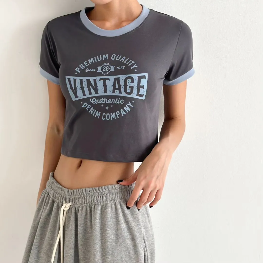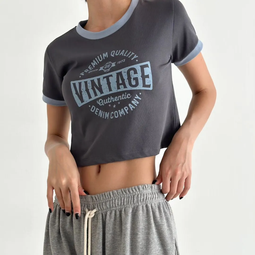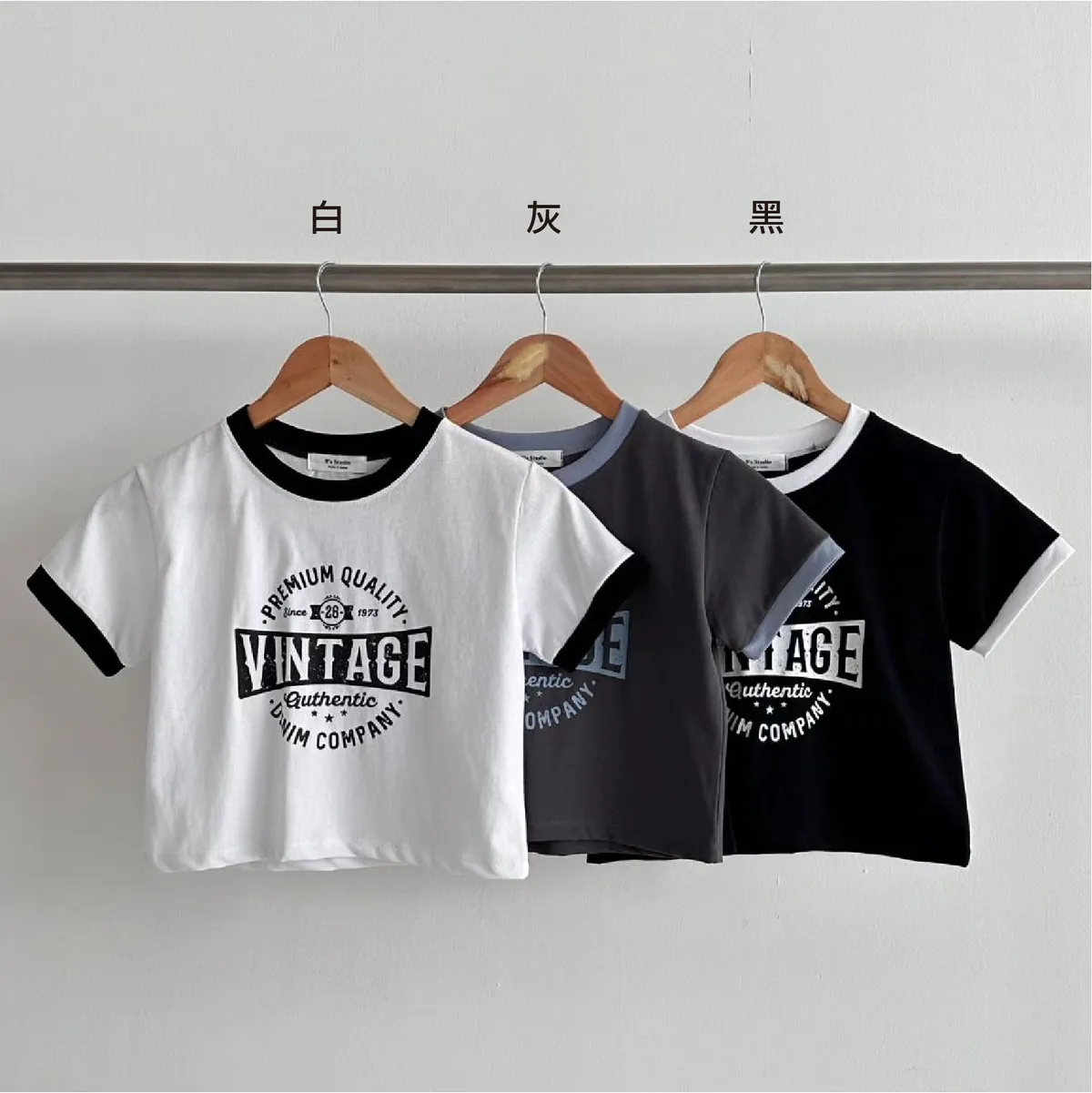 KM459滾邊Vintage短版Tshirt 白 灰 黑 官網價$380 線上價$350