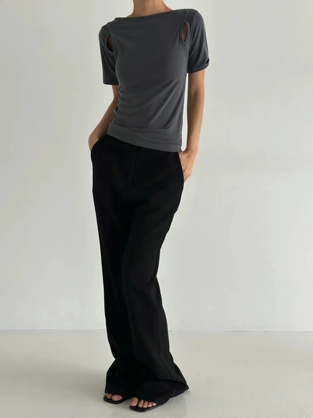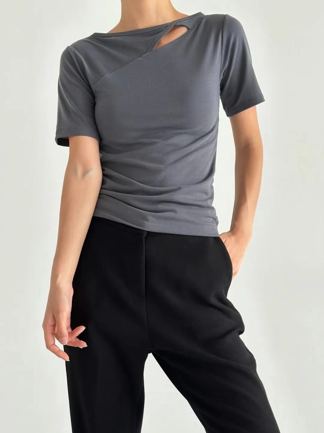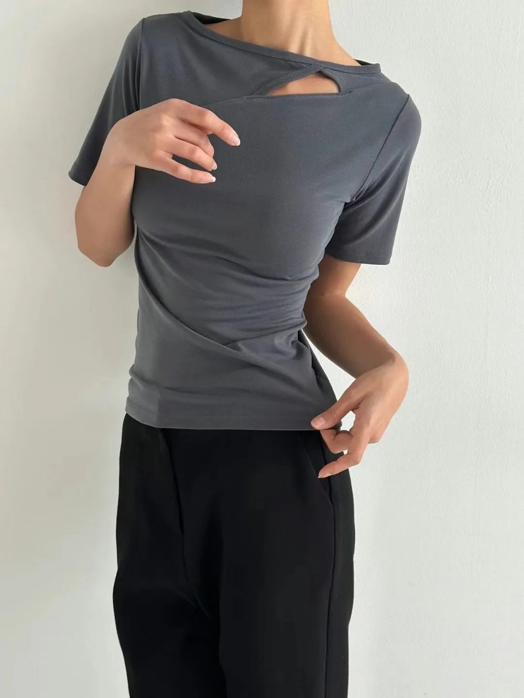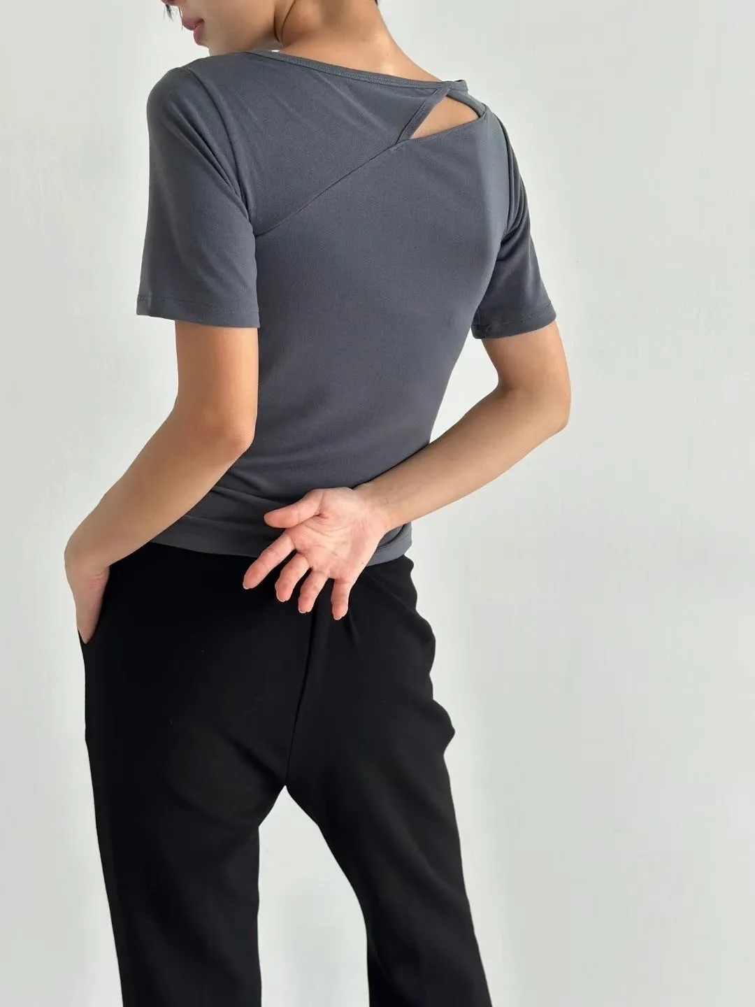 KM468兩面穿小切割簍空Tshirt 白 藍 灰 黑 官網價$360 線上價$330棉+彈力 可兩面穿 有彈性 合身款 雙面切割簍空設計