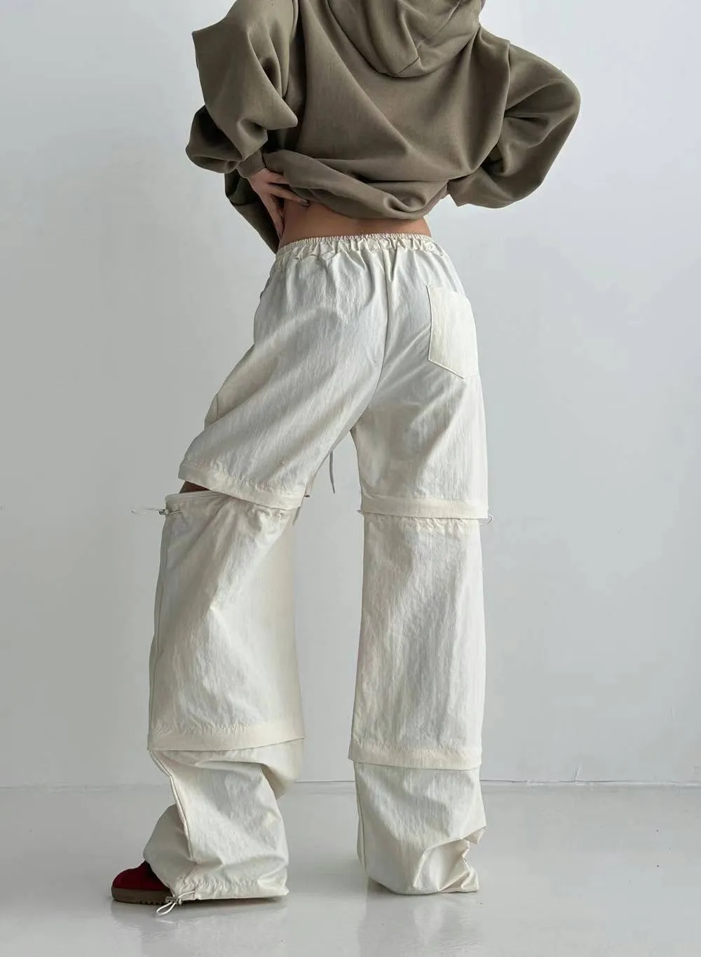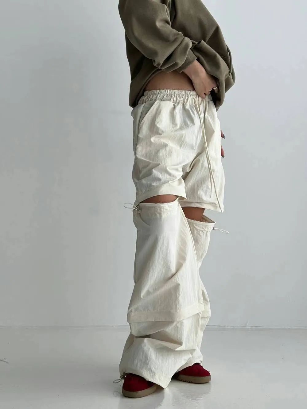 尼龍 全腰鬆緊有抽繩 褲管縮口 有口袋 拉鍊雙截 可長褲可短褲 L號友善