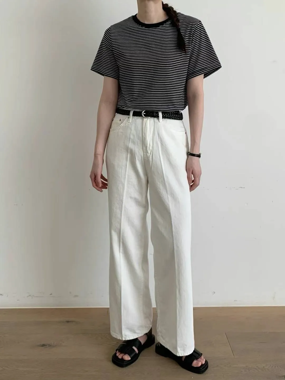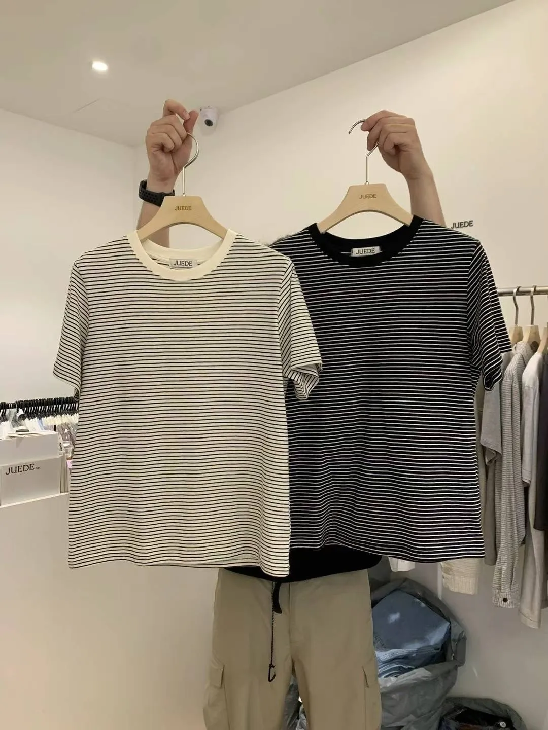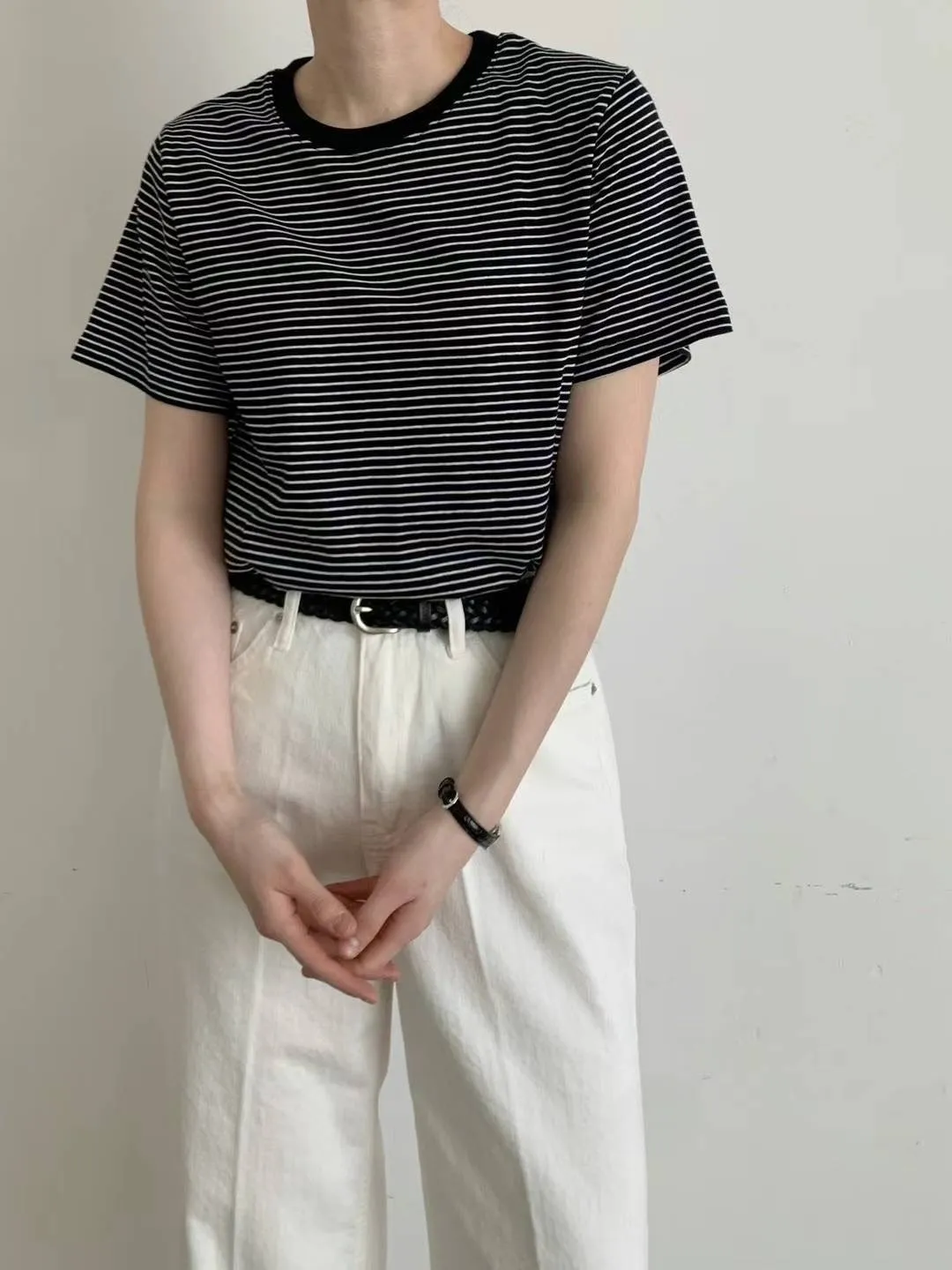 KM480薄款細條紋滾邊Tshirt 白 黑 官網價$650  線上價$620