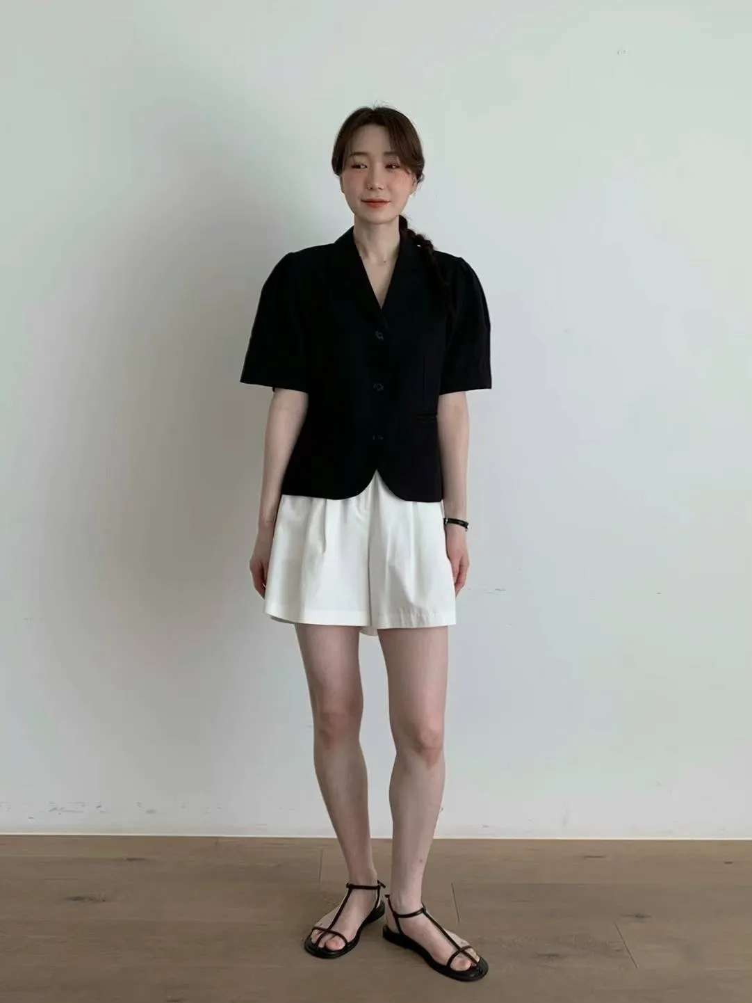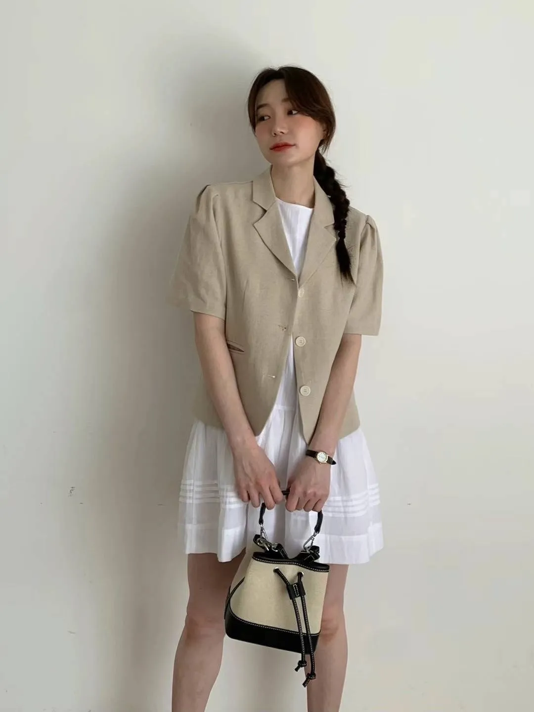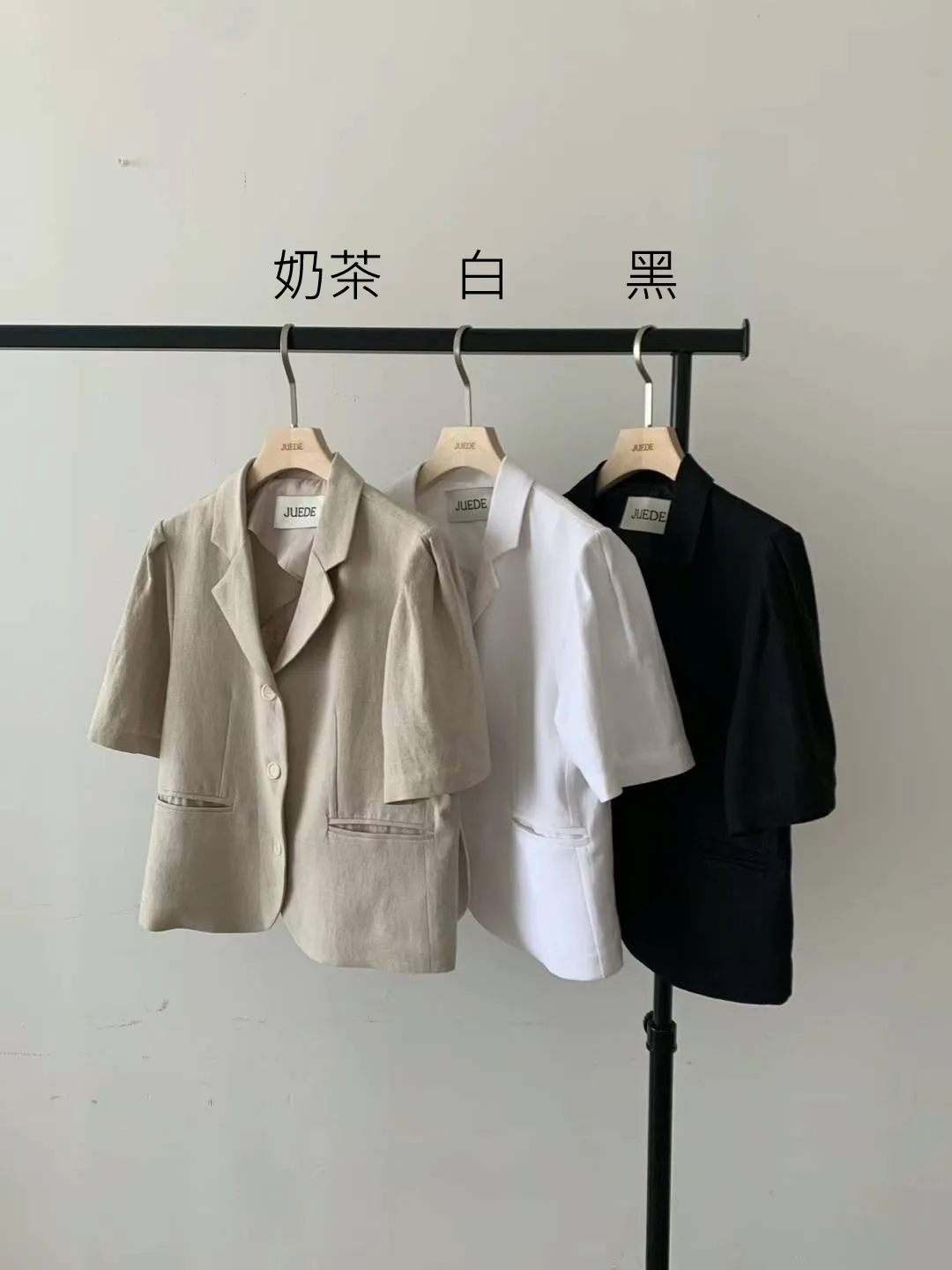 KM484輕盈亞麻短袖西裝外套 白  黑 奶茶 官網價$2020  線上價$1990