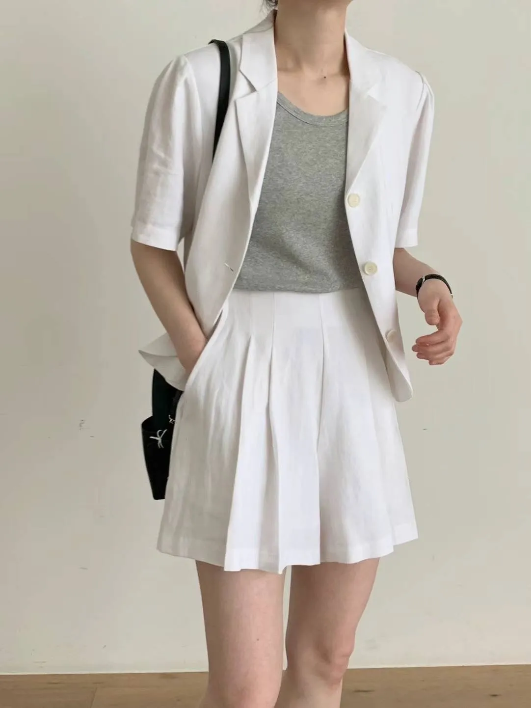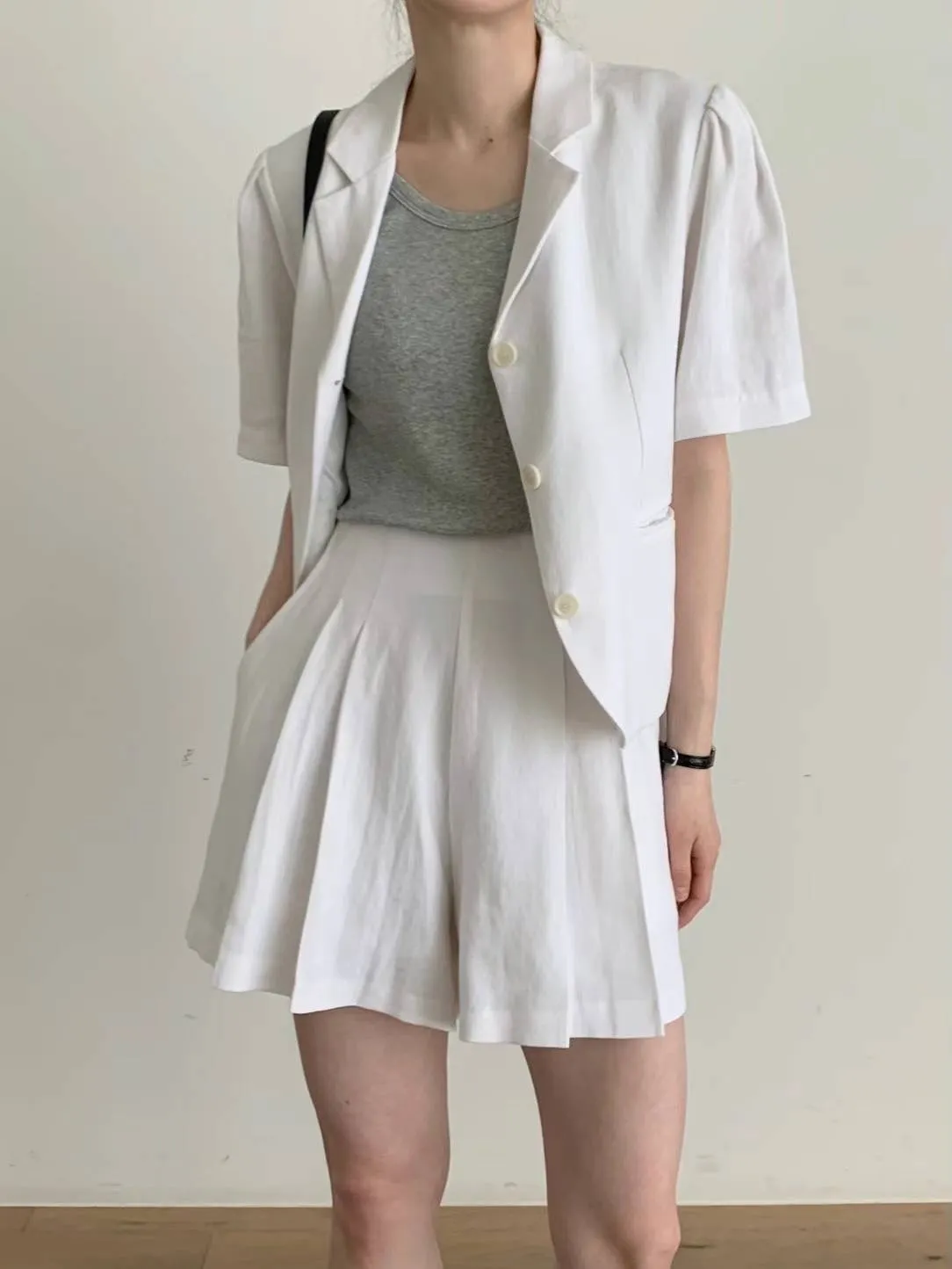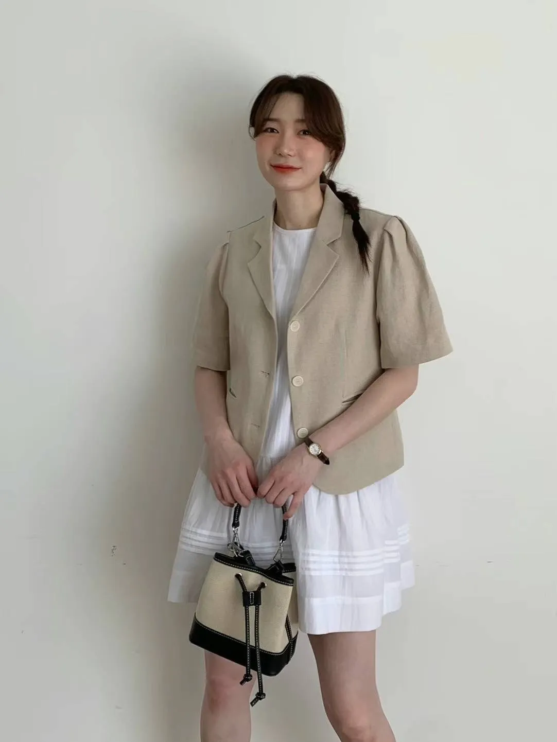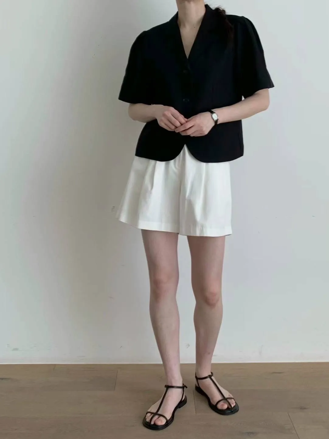 KM484輕盈亞麻短袖西裝外套 白  黑 奶茶 官網價$2020  線上價$1990
