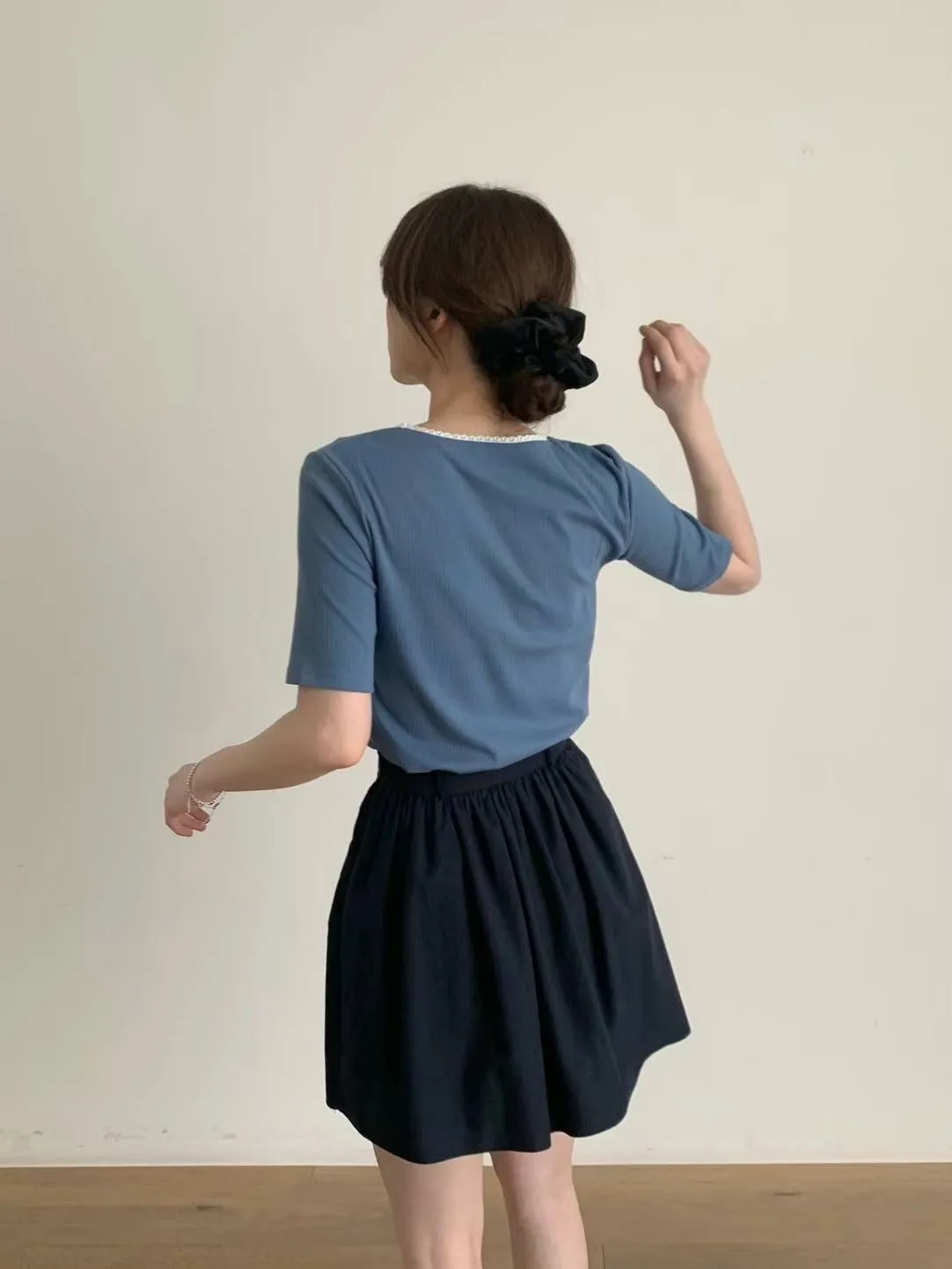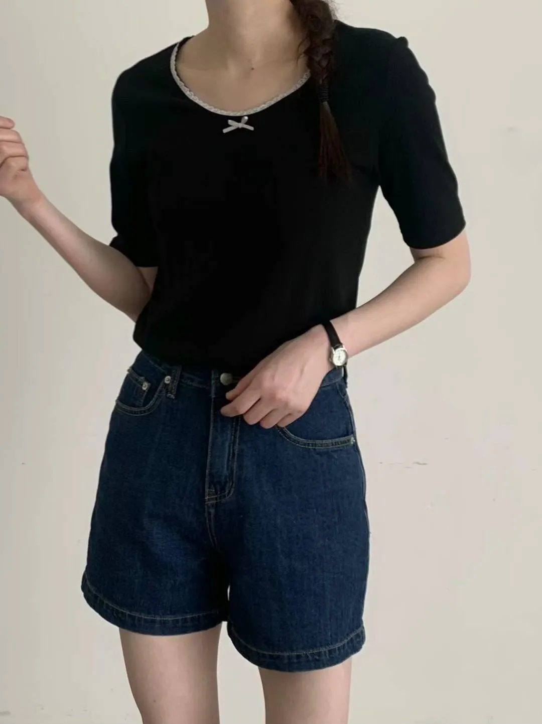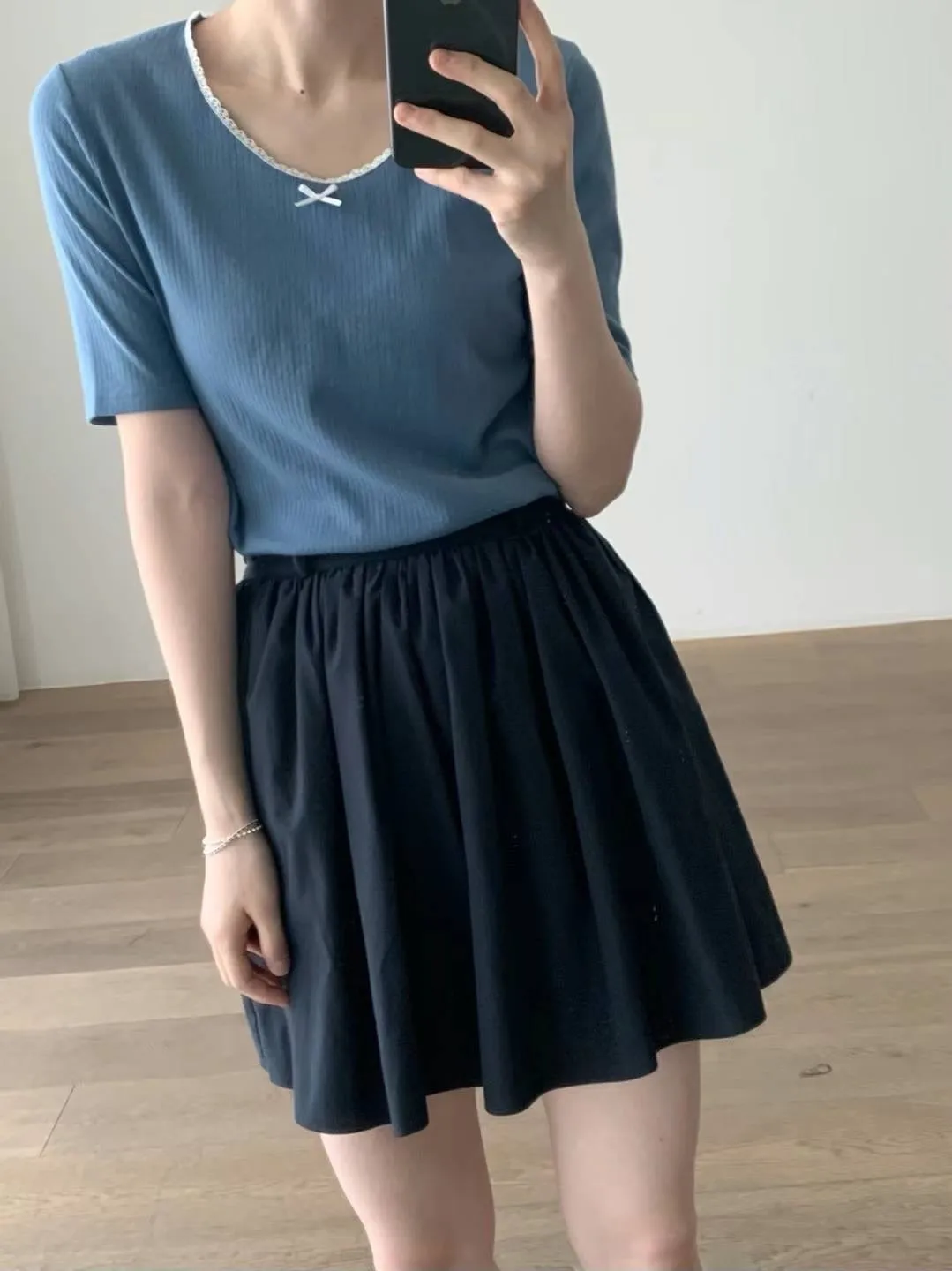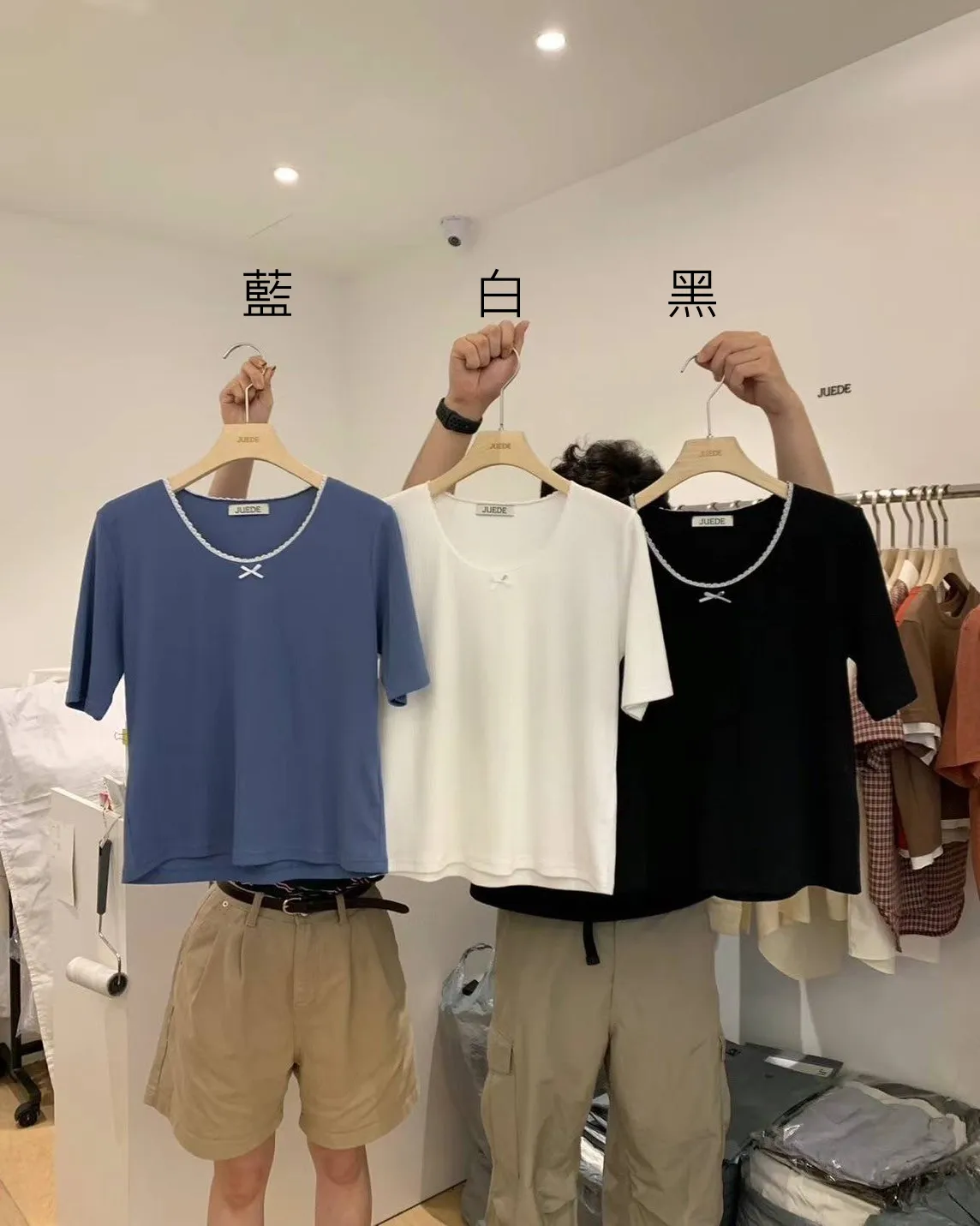 KM485細緻小蝴蝶結滾邊Tshirt 白 藍 黑 官網價$720  線上價$690