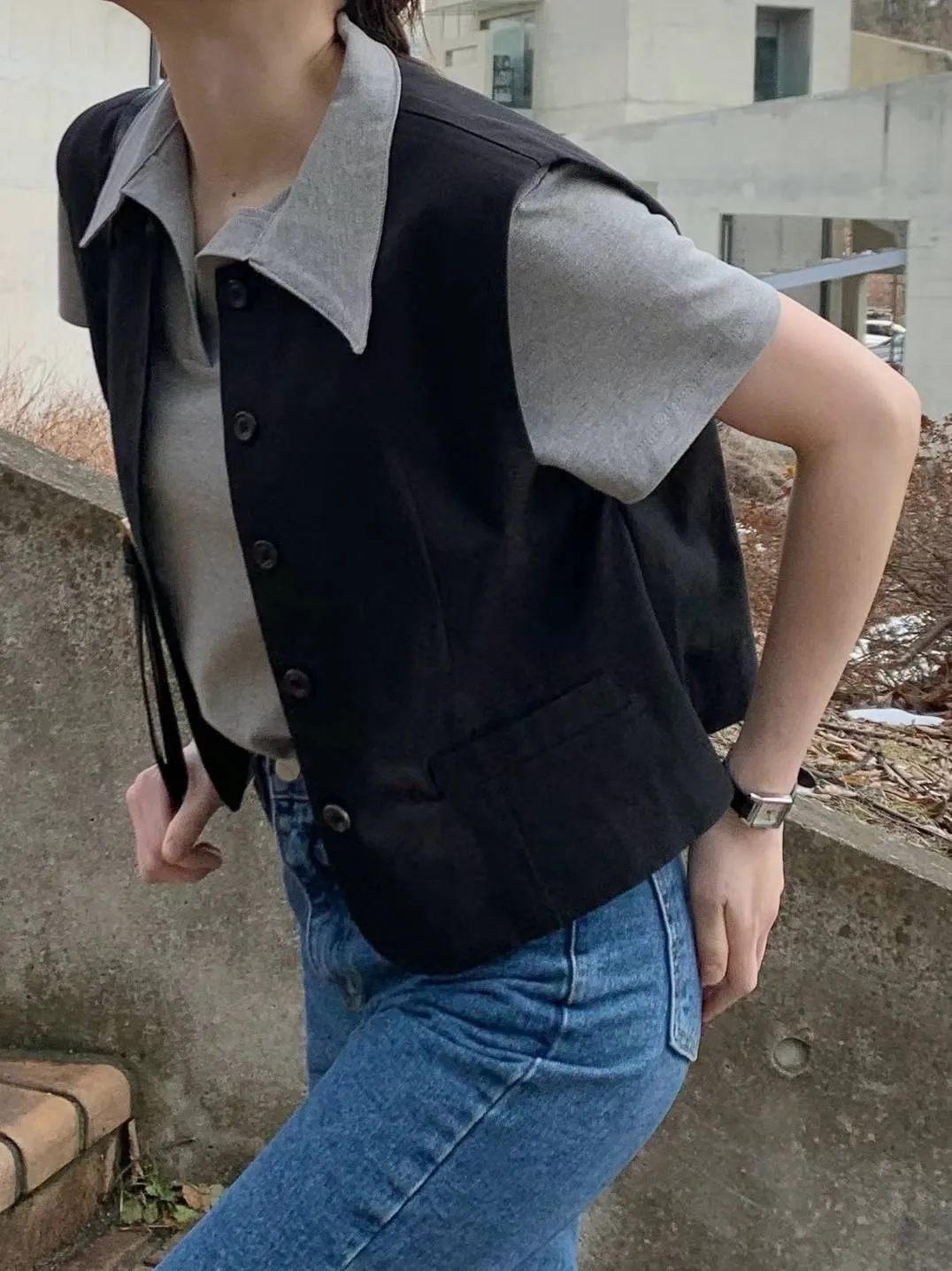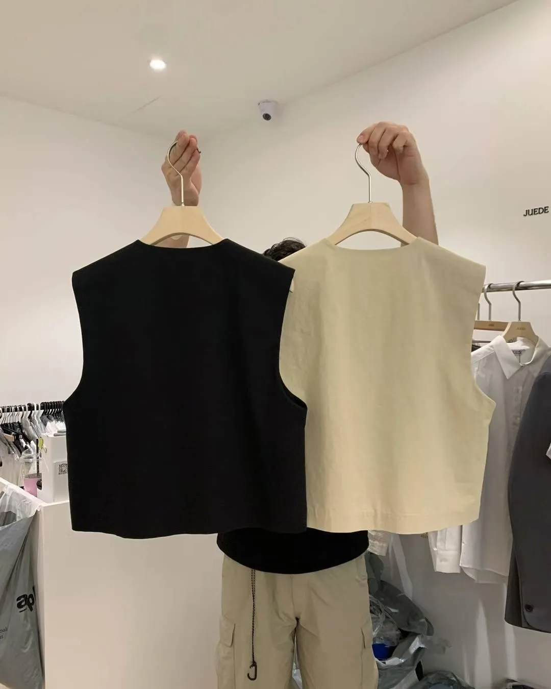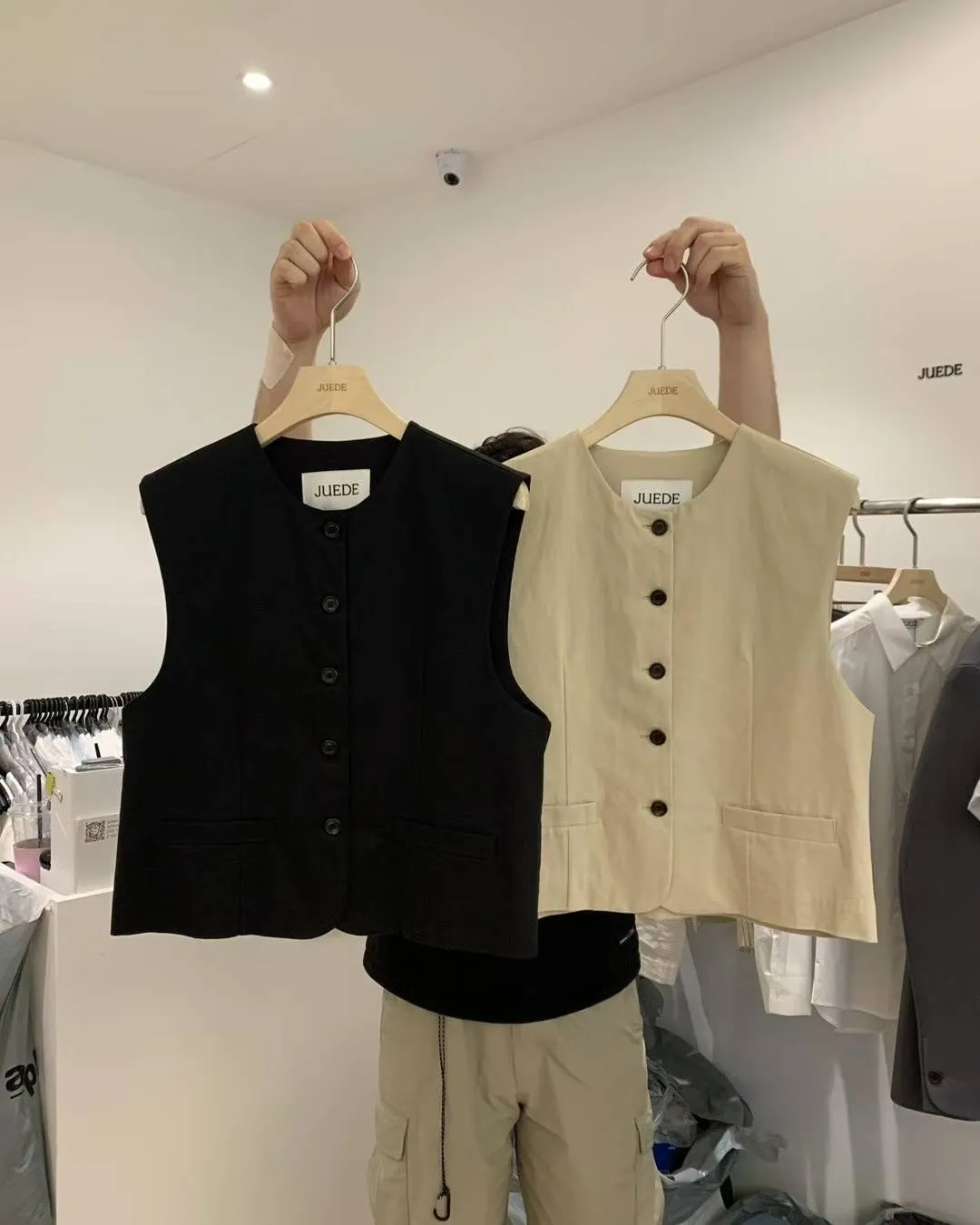 KM486套裝的簡約時尚單品背心 黑 奶茶 官網價$1280  線上價$1250