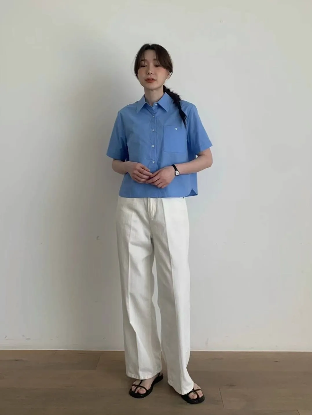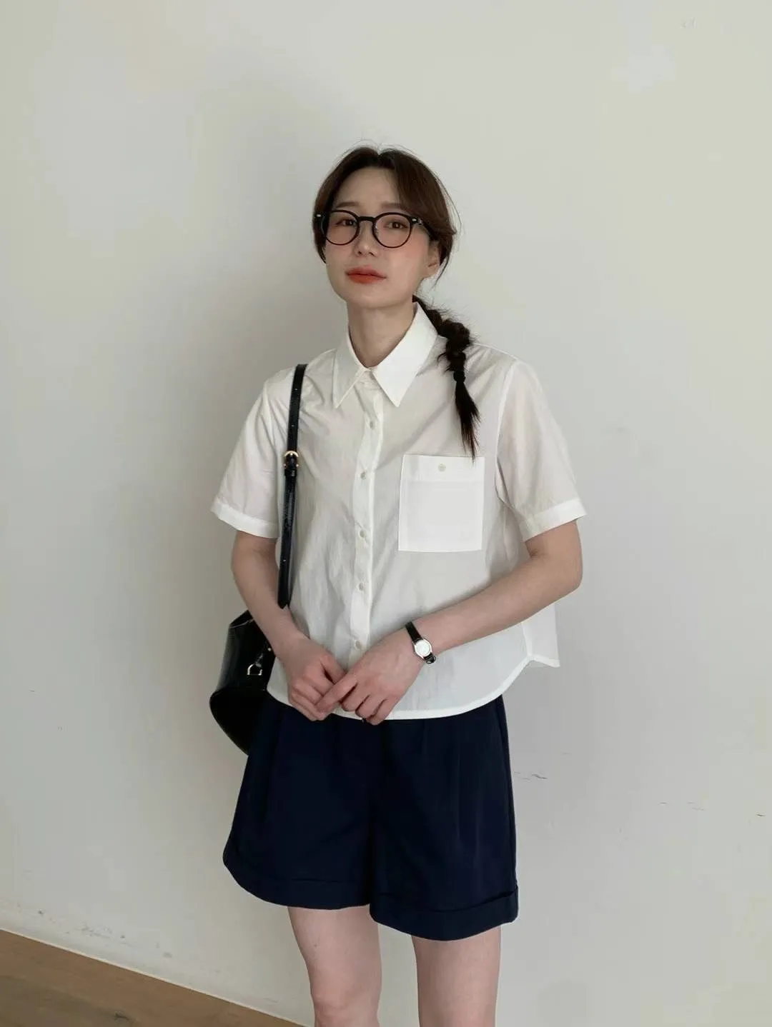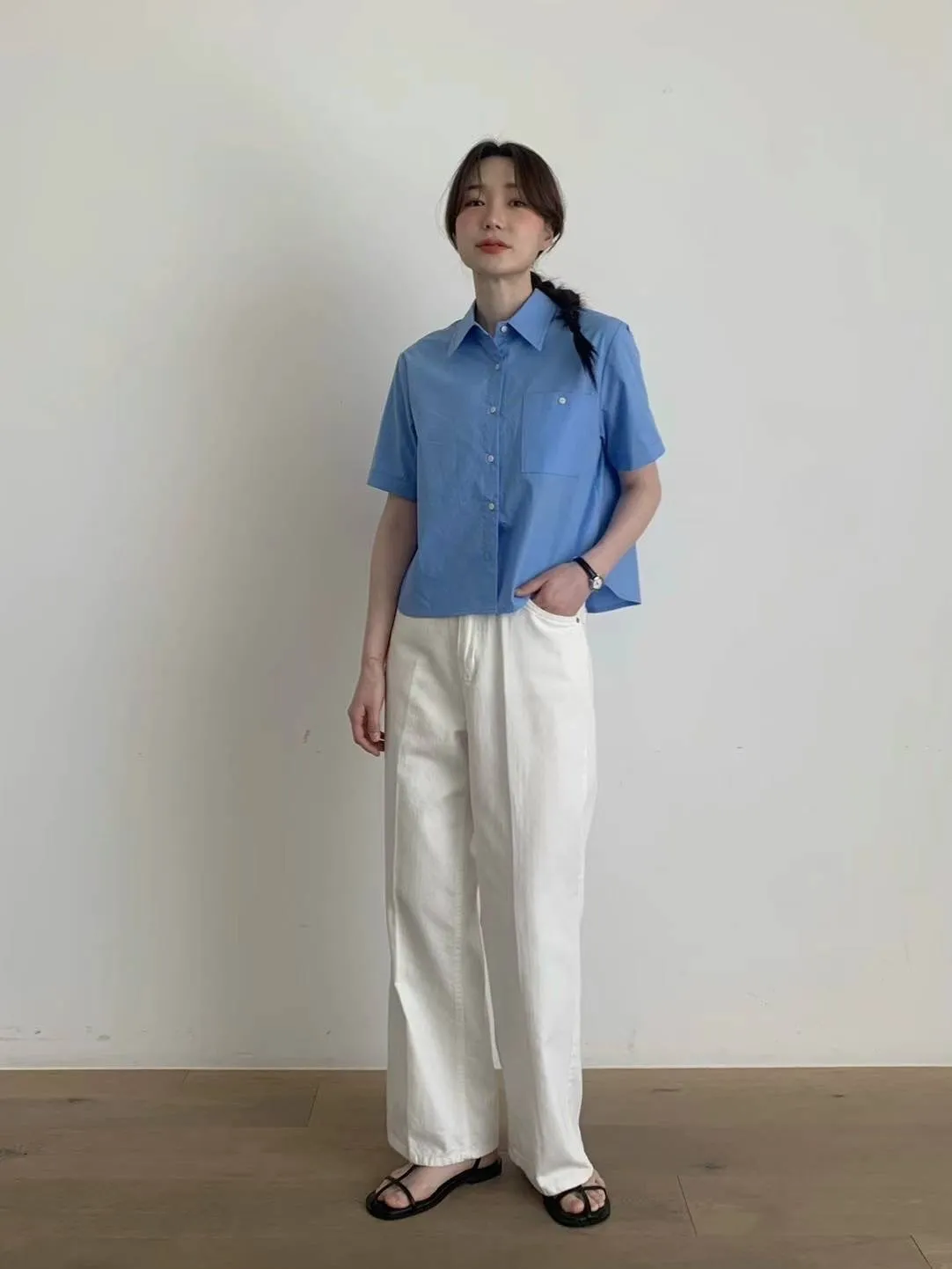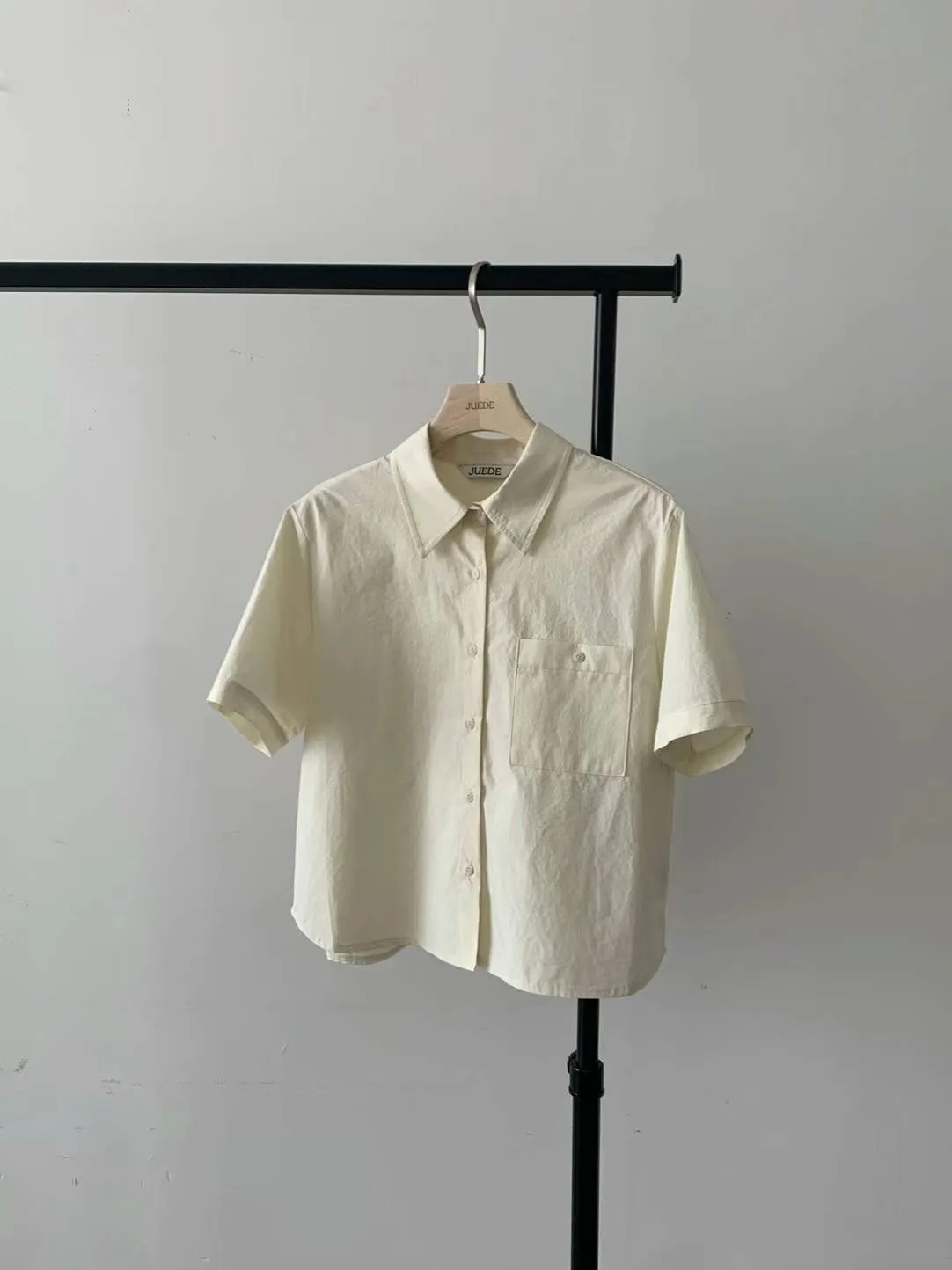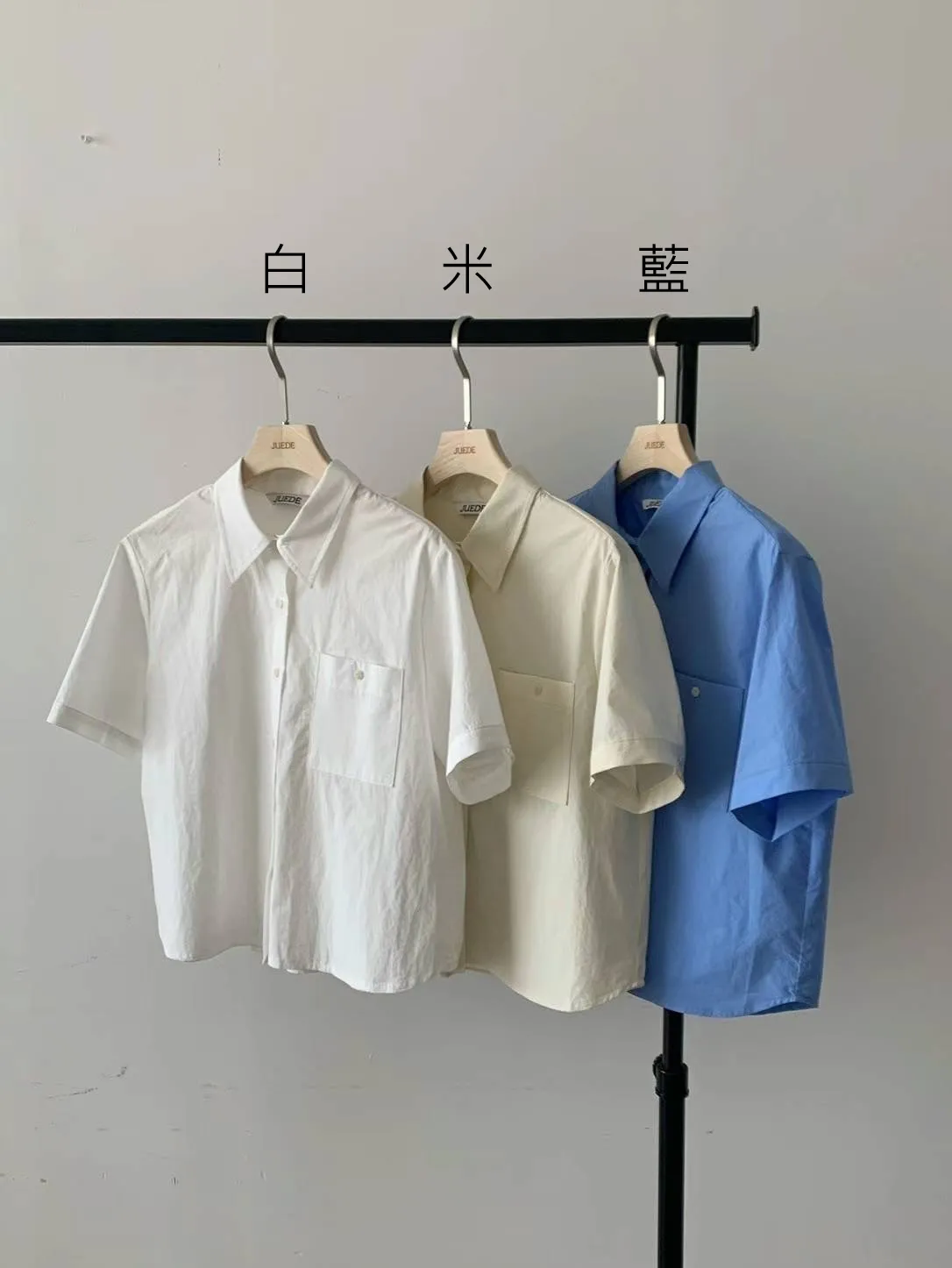 KM489薄款單口袋百搭短袖襯衫 白 米 藍 官網價$1240  線上價$1210