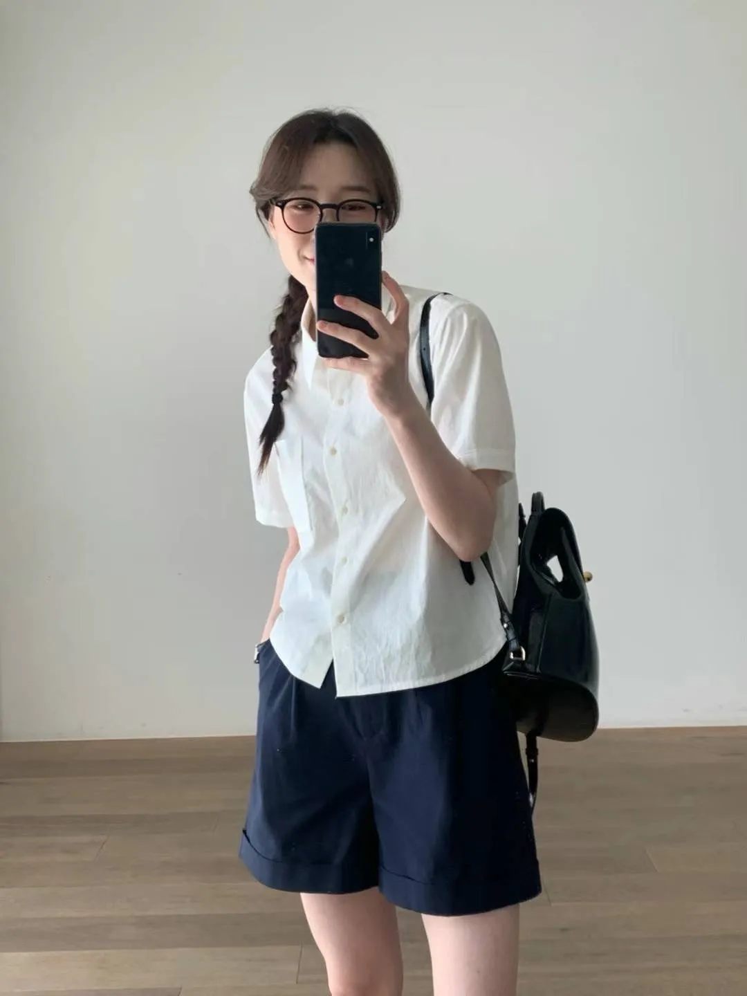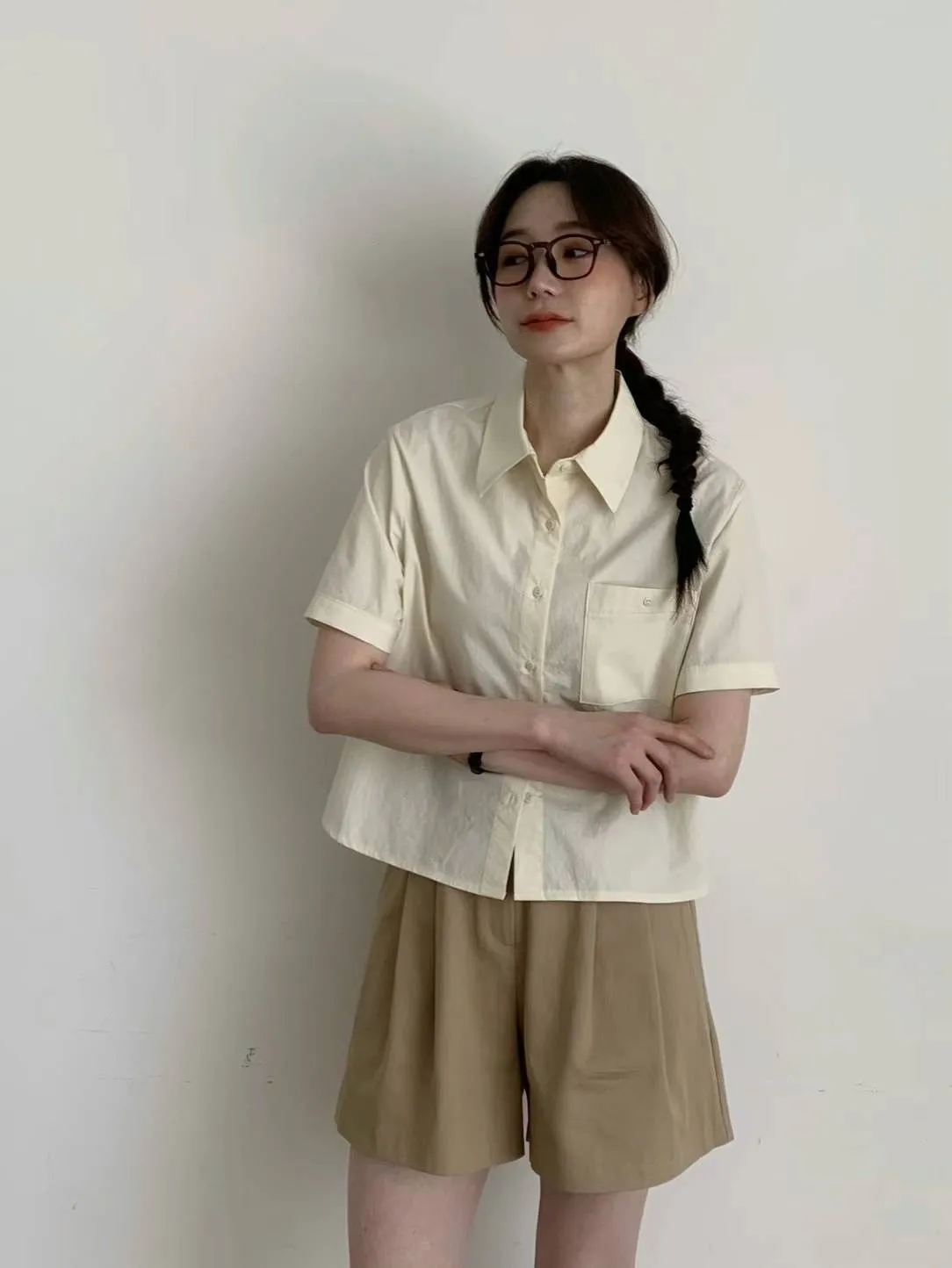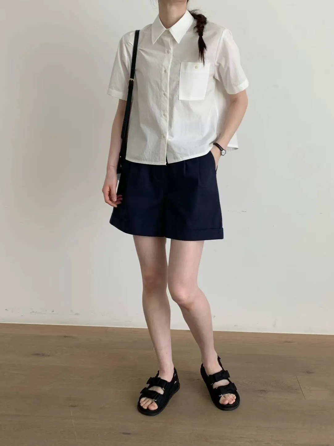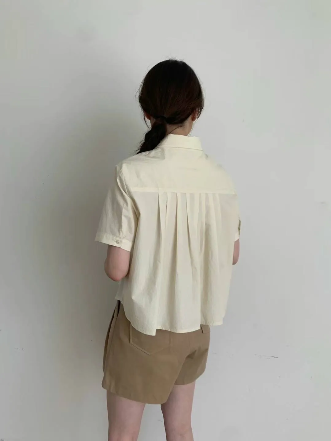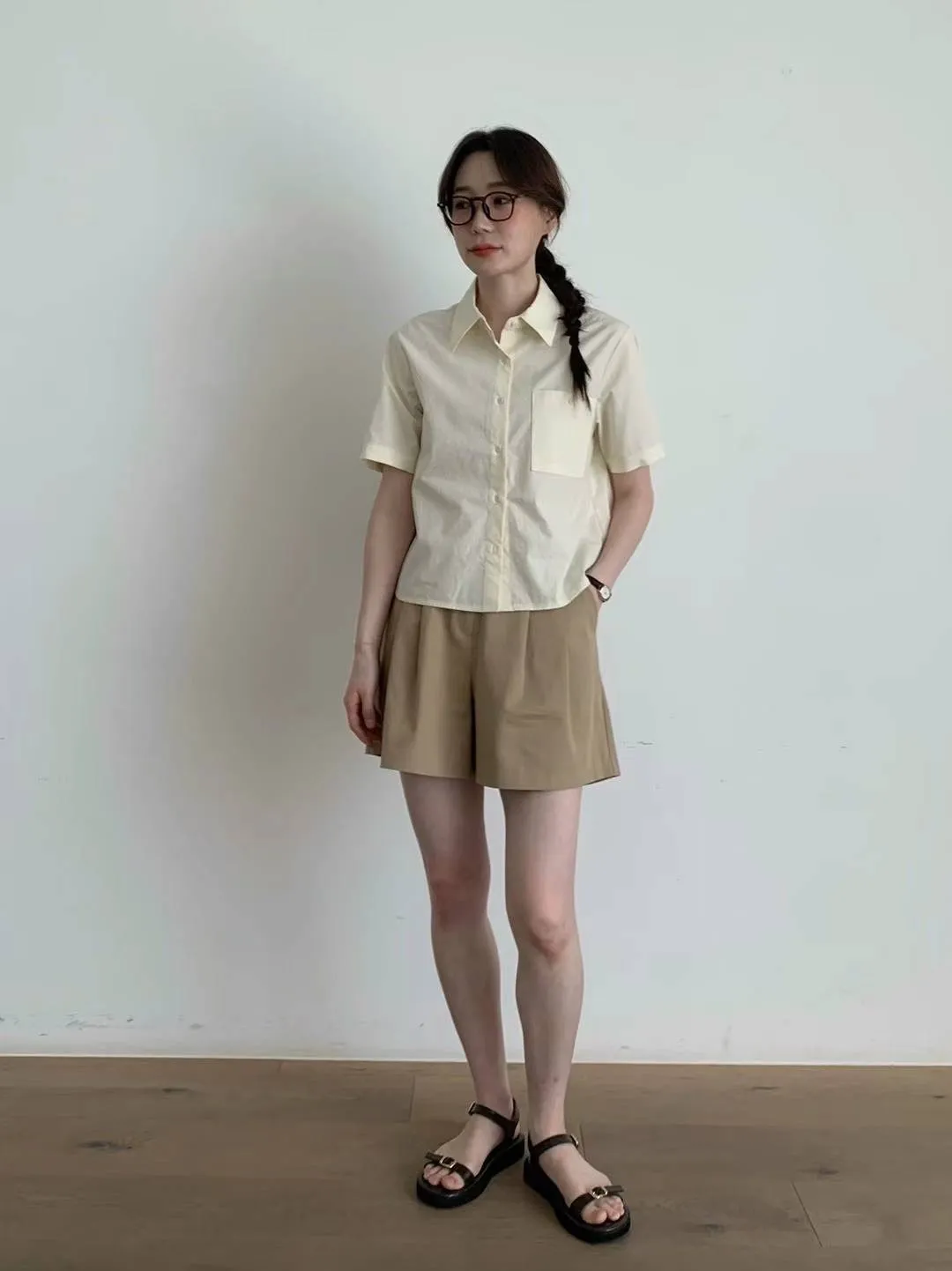 KM489薄款單口袋百搭短袖襯衫 白 米 藍 官網價$1240  線上價$1210