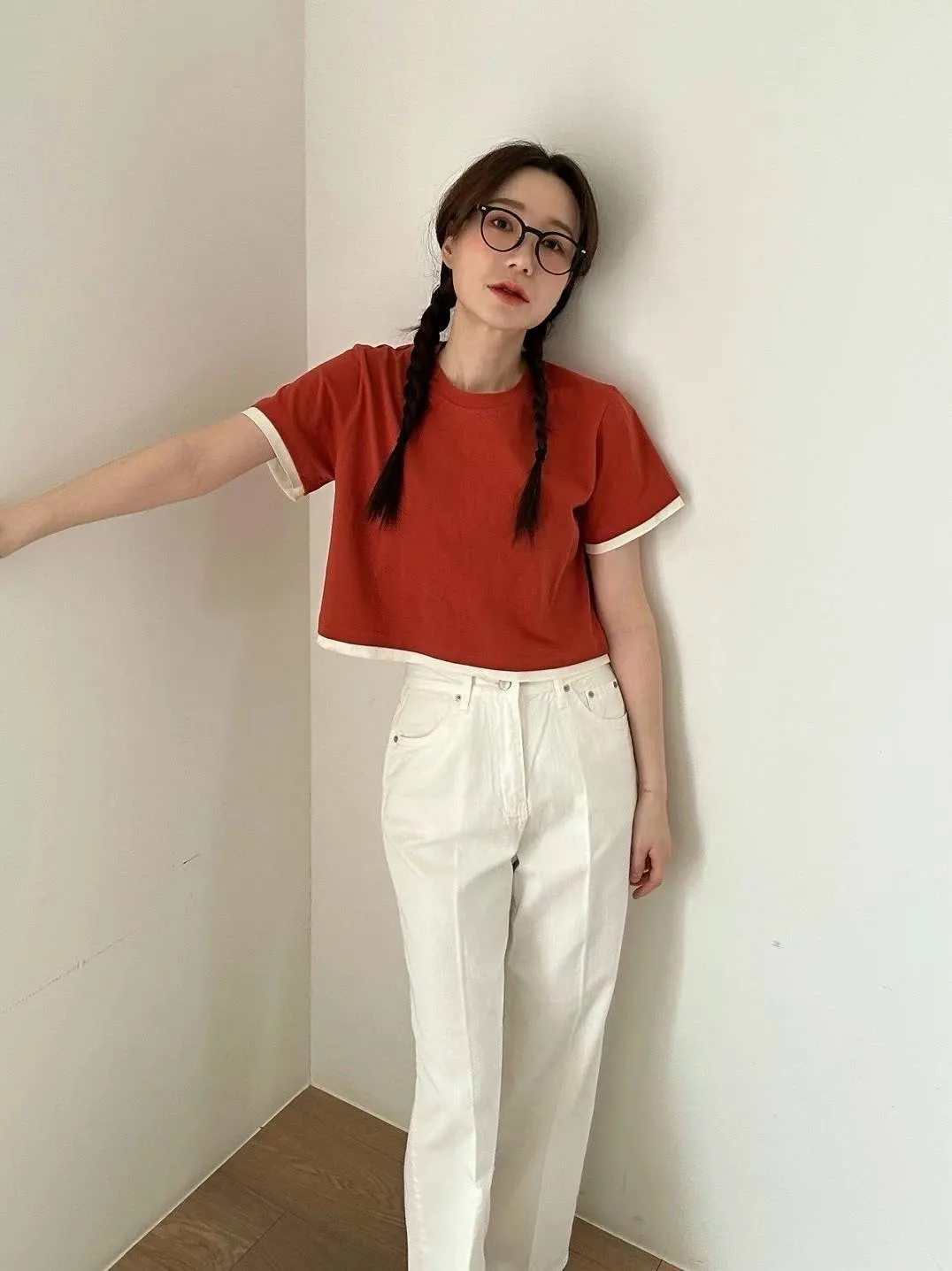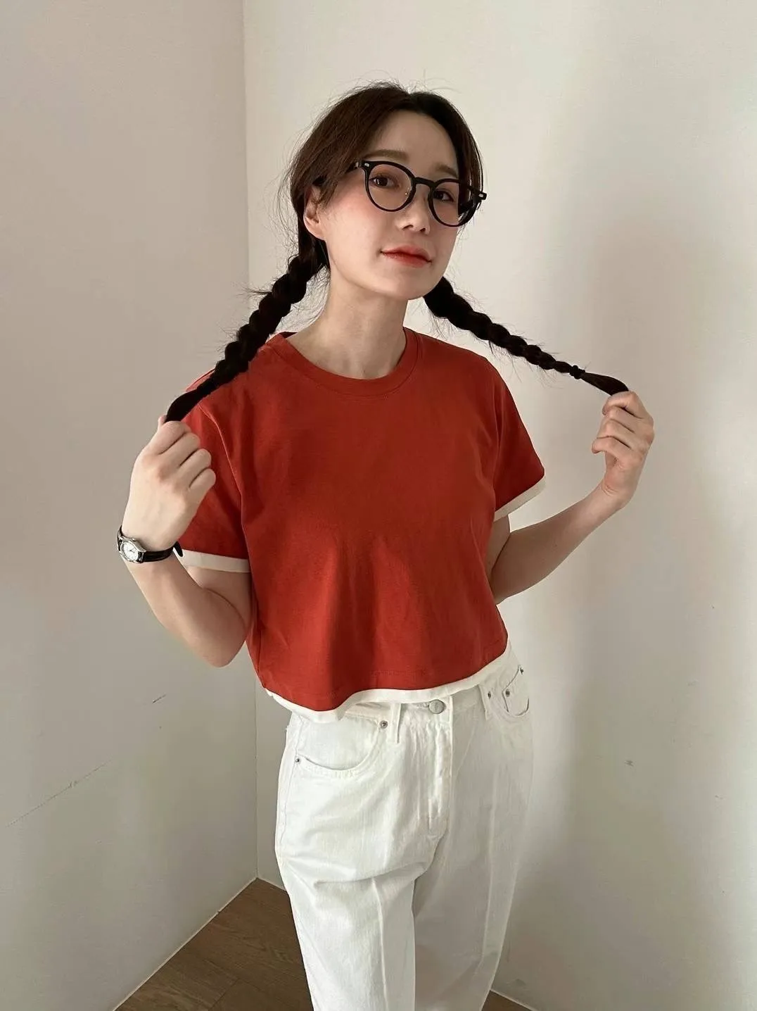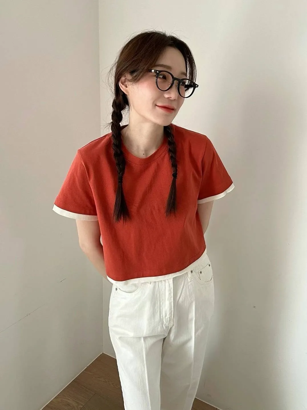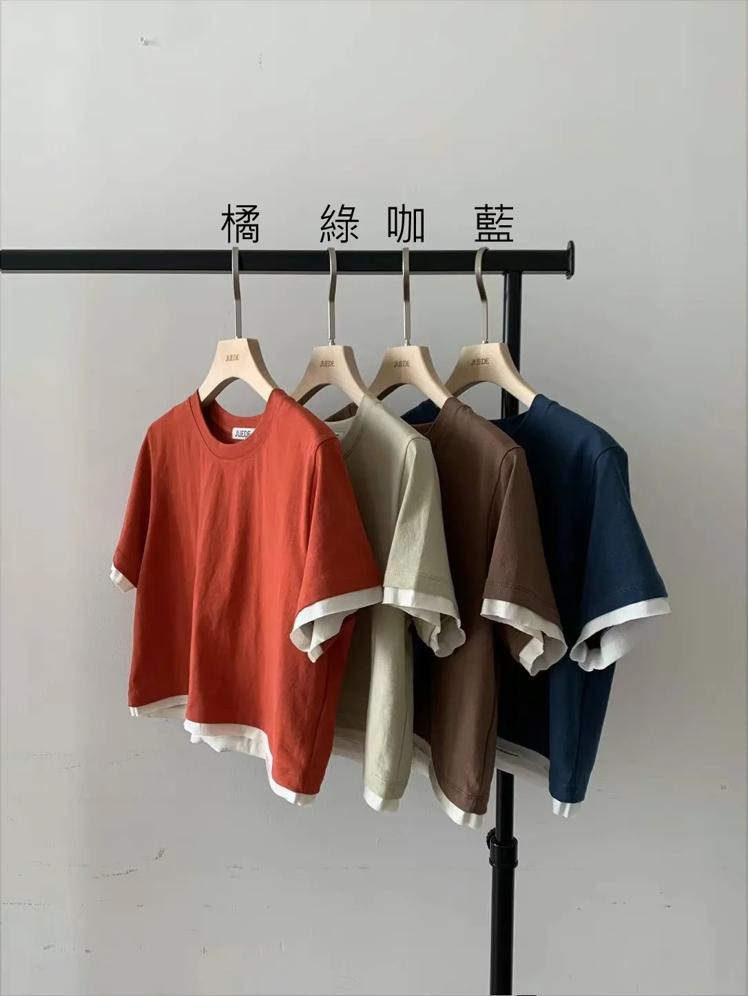 KM496推薦款輕盈滾邊層次感Tshirt 橘 綠 咖 藍 官網價$620  線上價$590