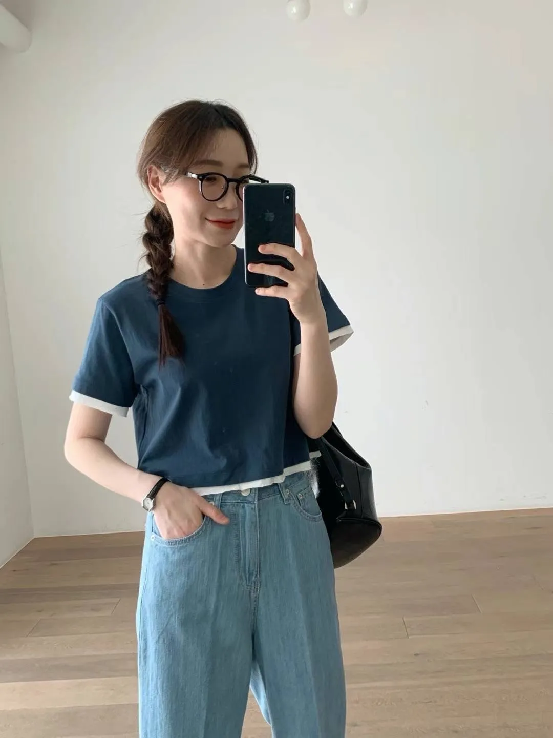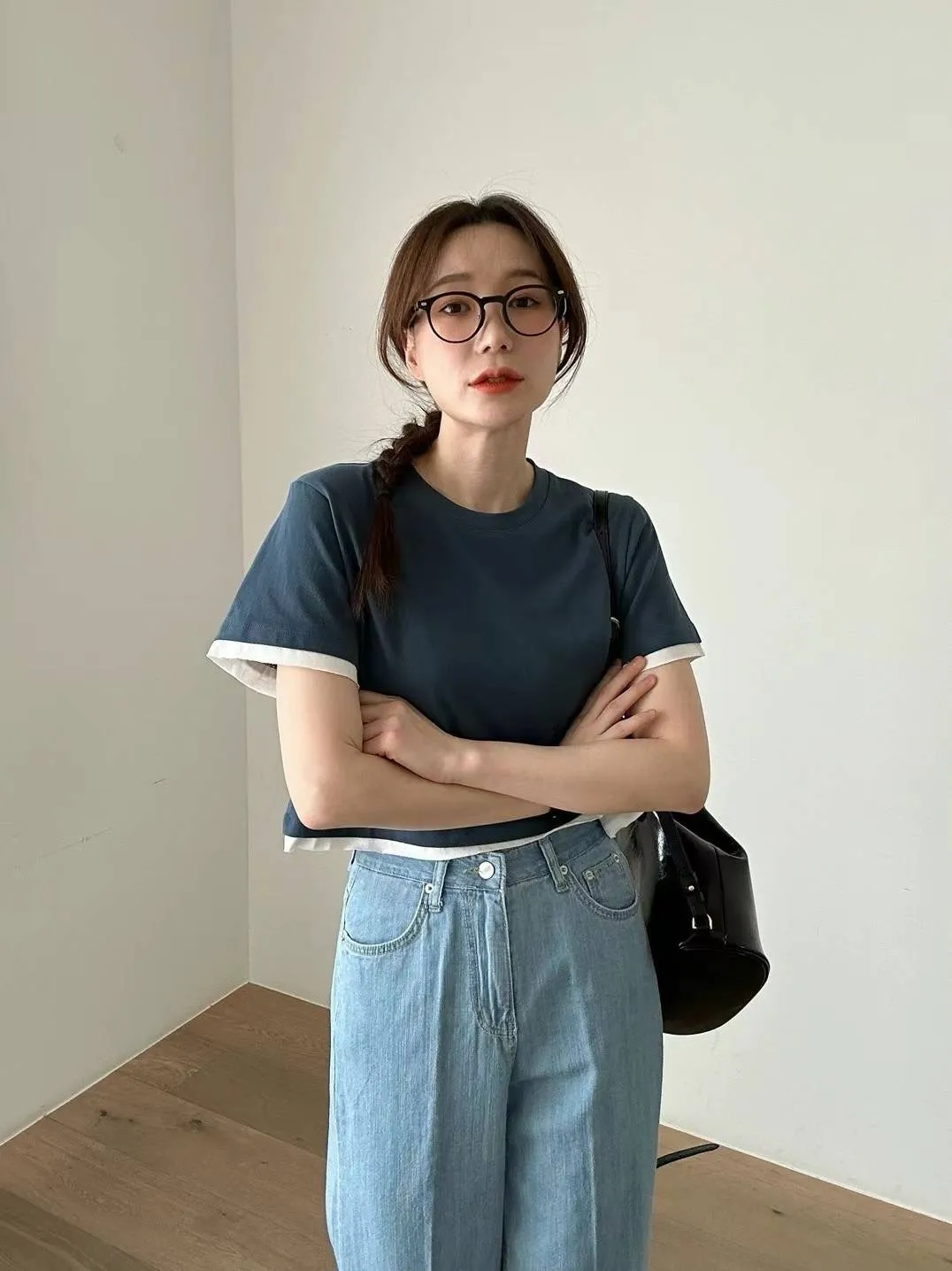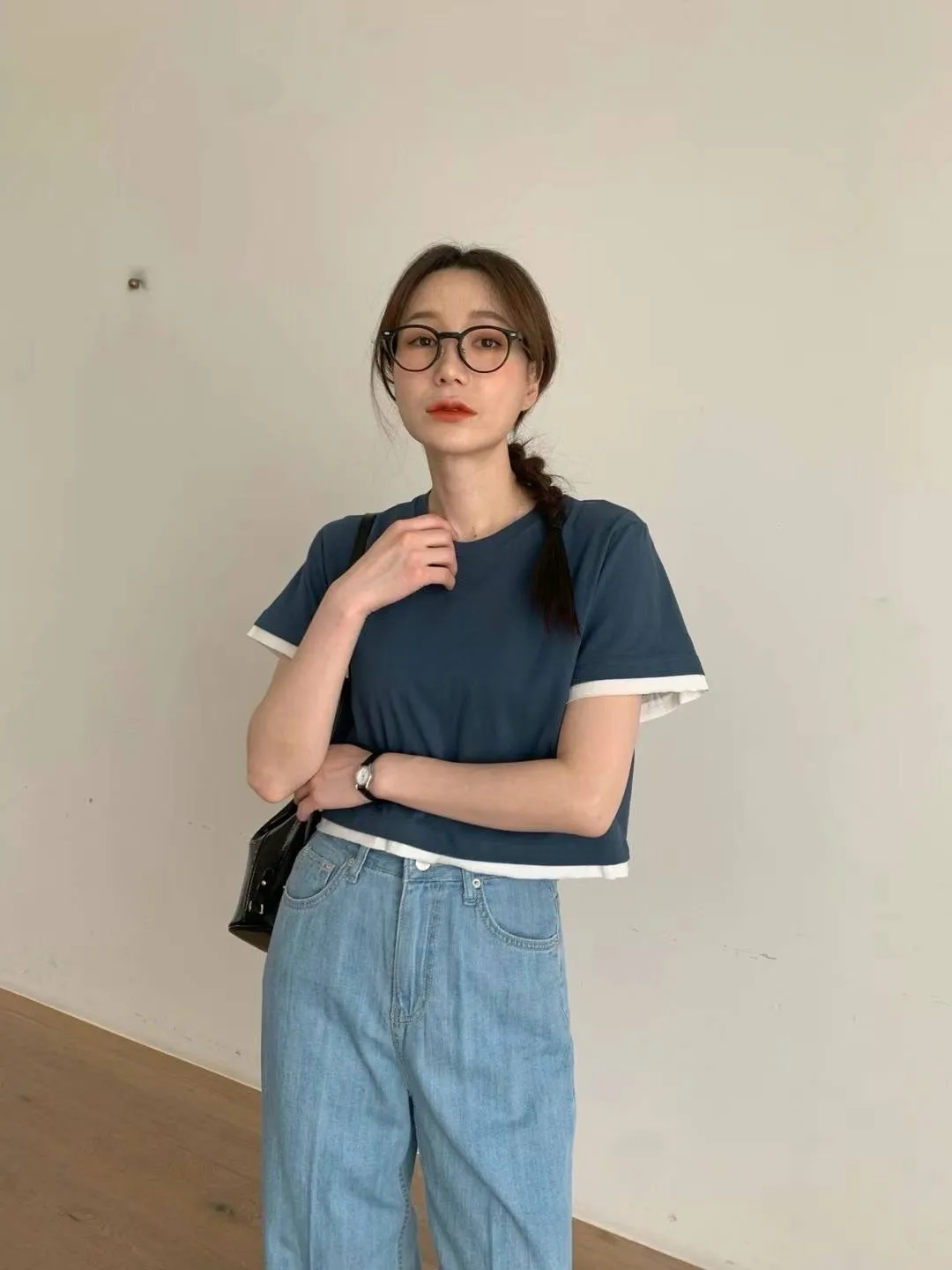 KM496推薦款輕盈滾邊層次感Tshirt 橘 綠 咖 藍 官網價$620  線上價$590