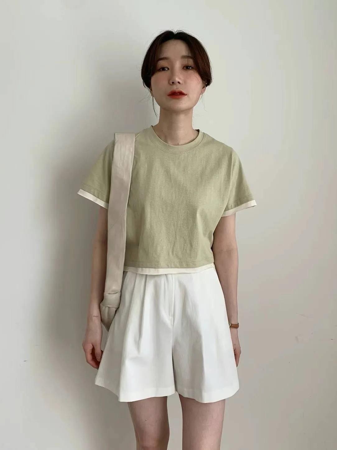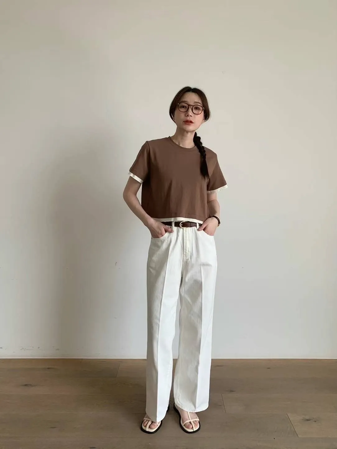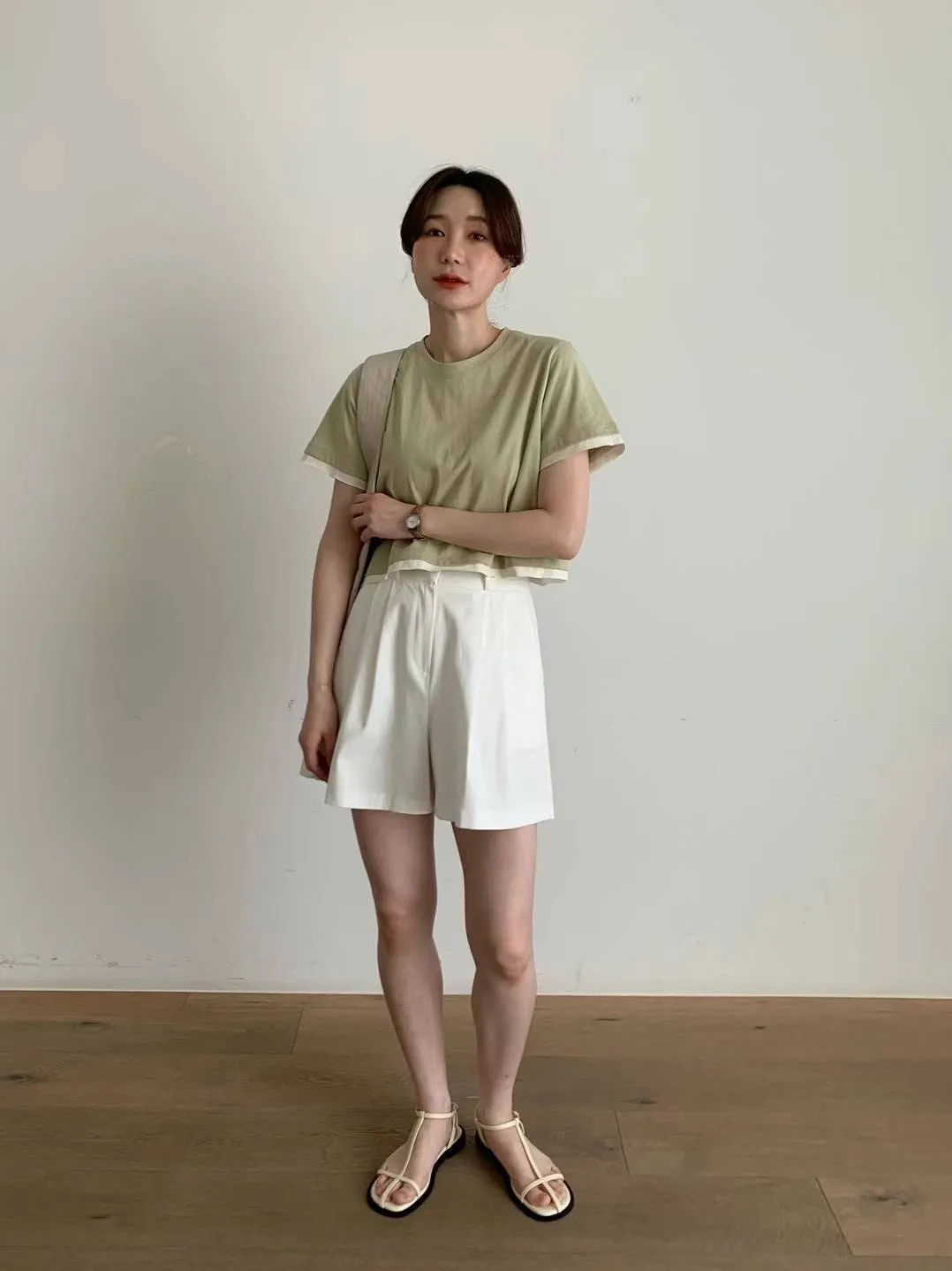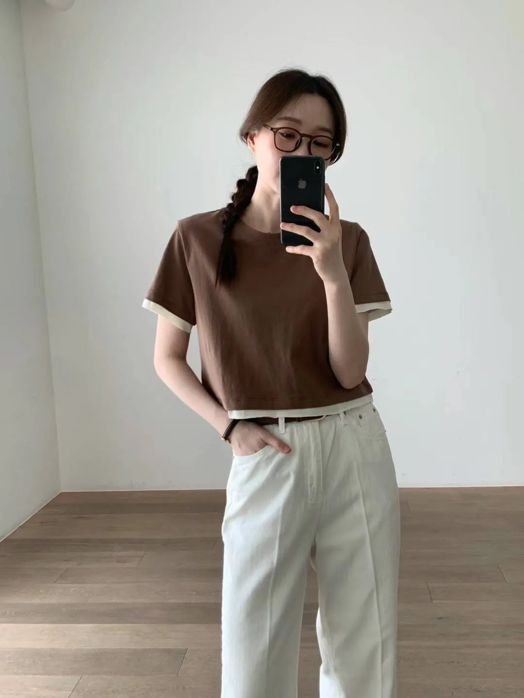 KM496推薦款輕盈滾邊層次感Tshirt 橘 綠 咖 藍 官網價$620  線上價$590