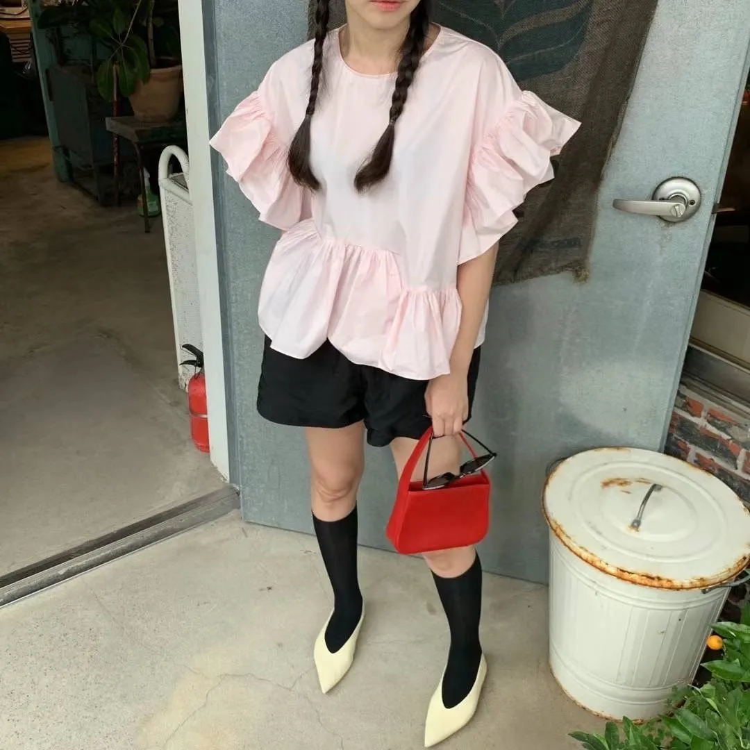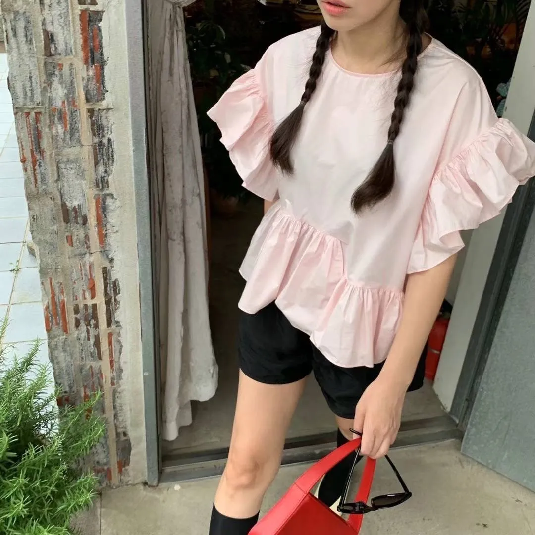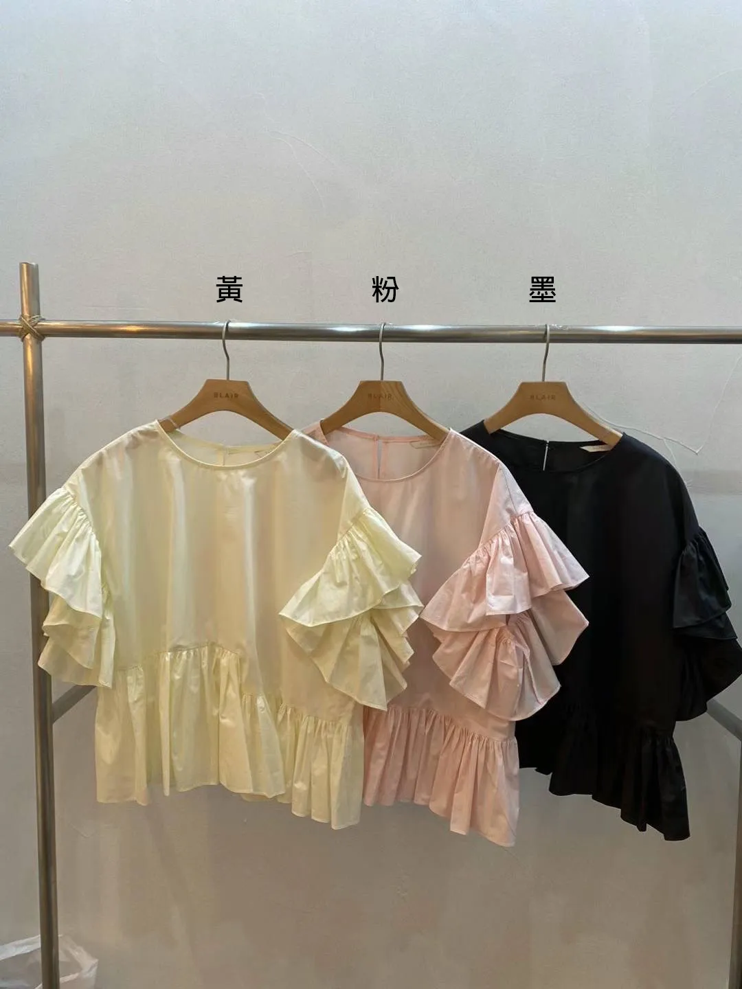 KM517設計感立體下擺娃娃裝上衣 黃 粉 墨 官網價$1190 線上價$1160