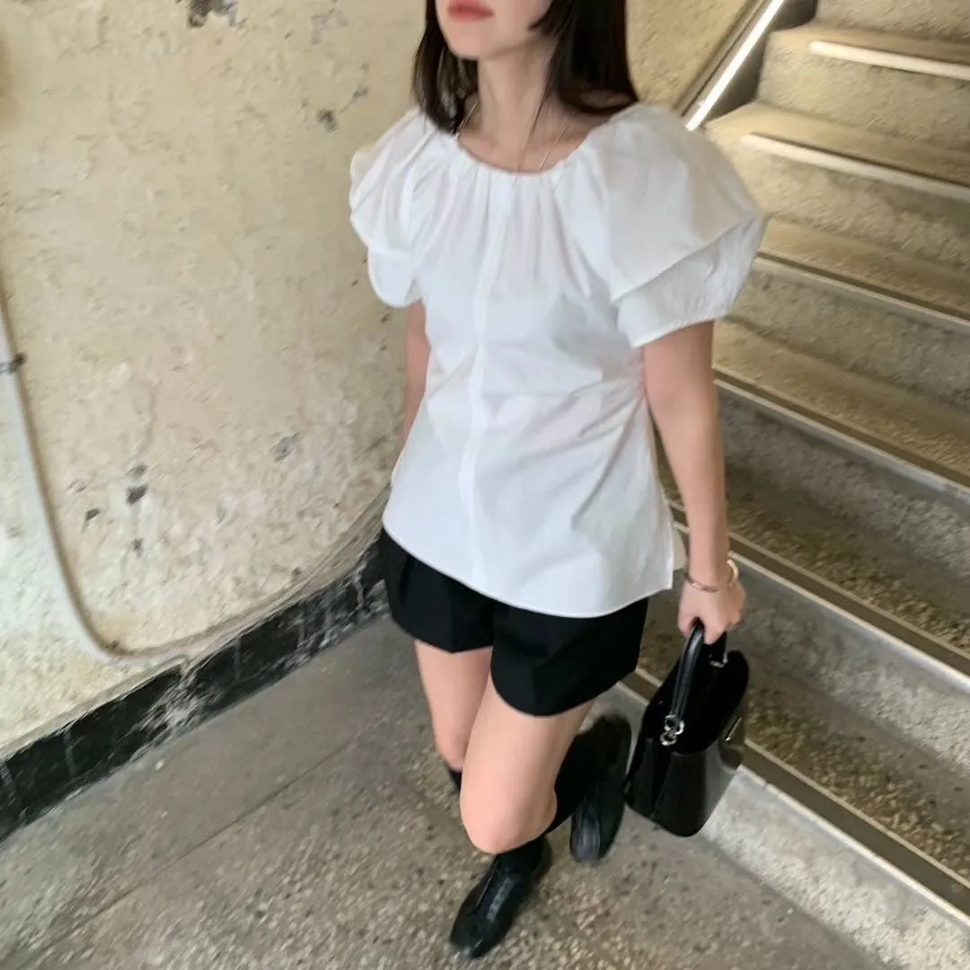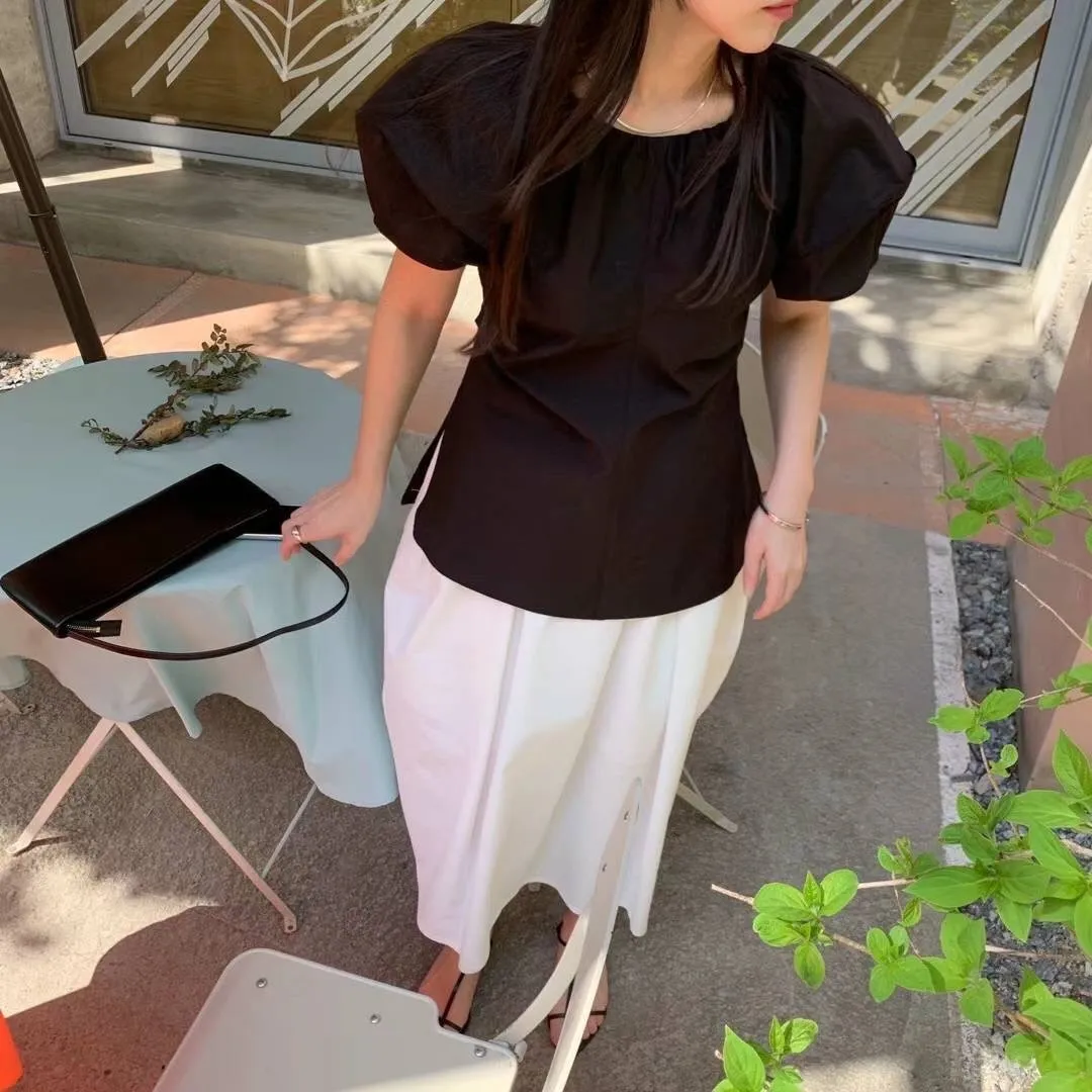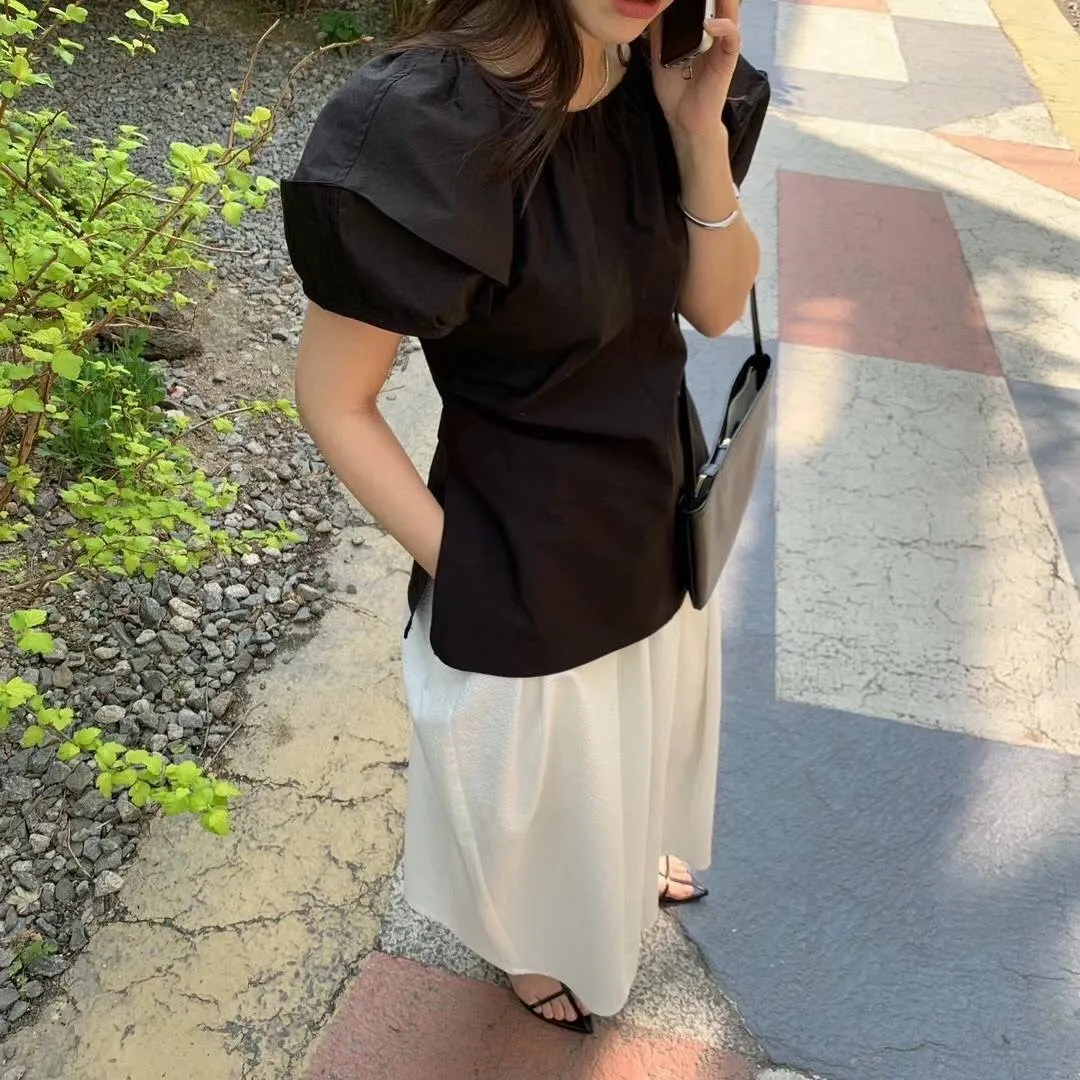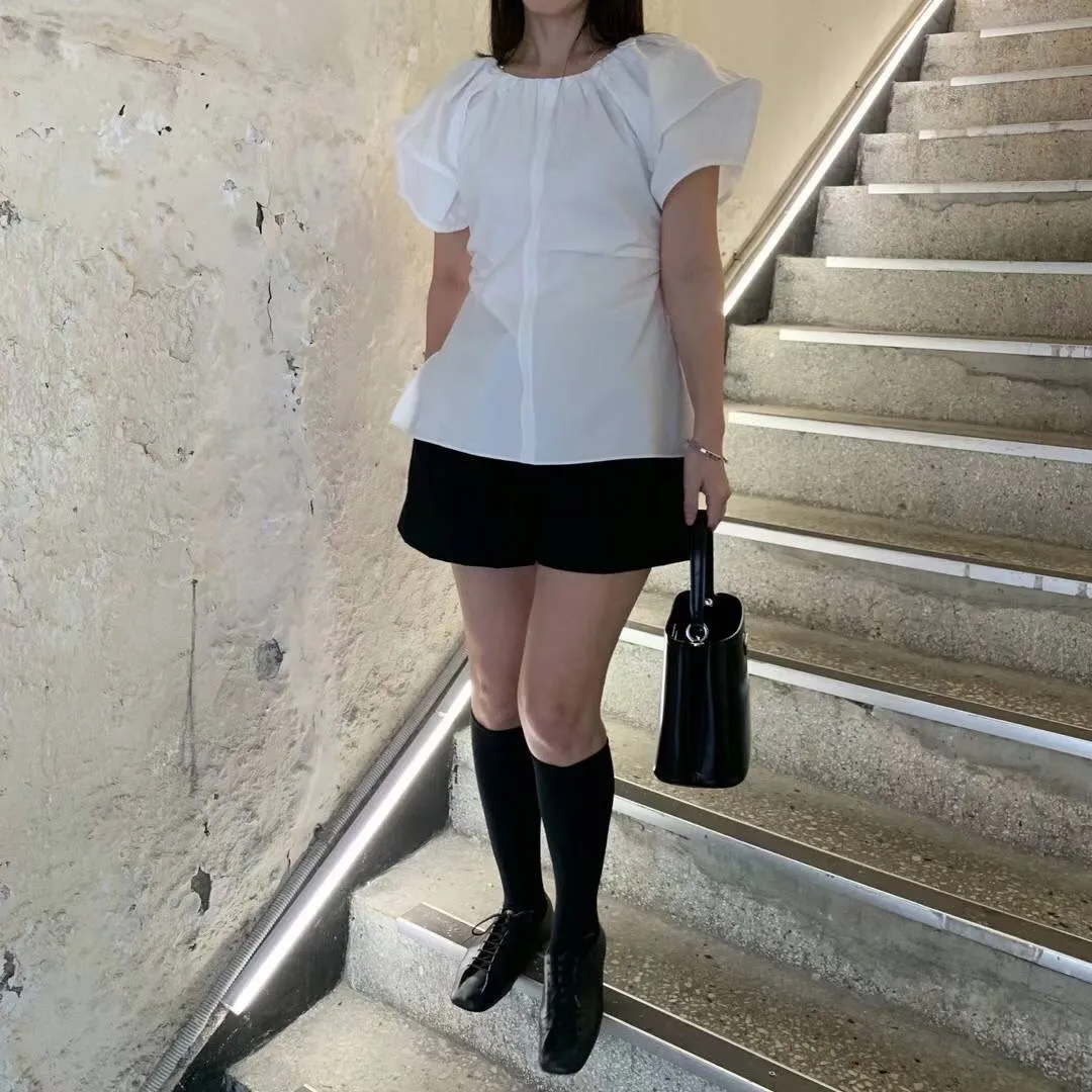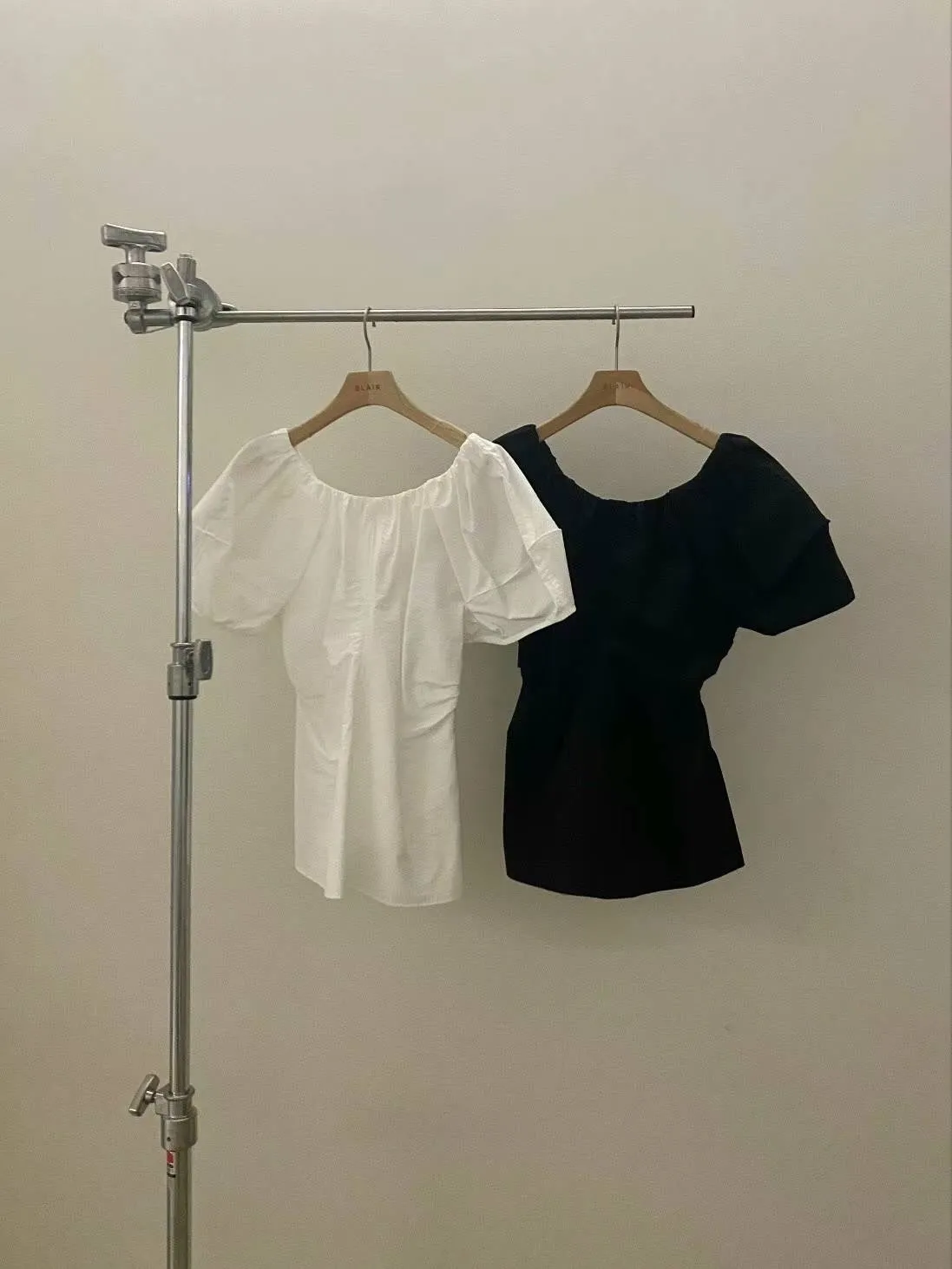 KM519氣質圓領公主袖上衣 白 黑 官網價$1160 線上價$1130