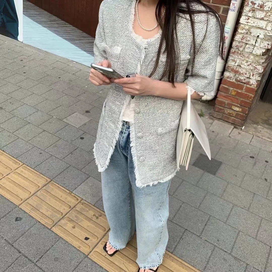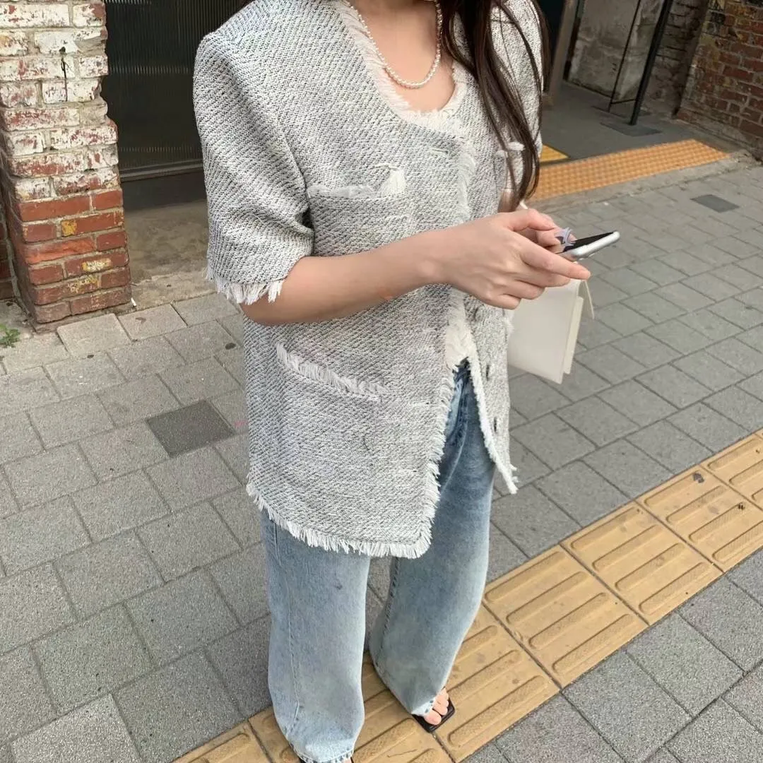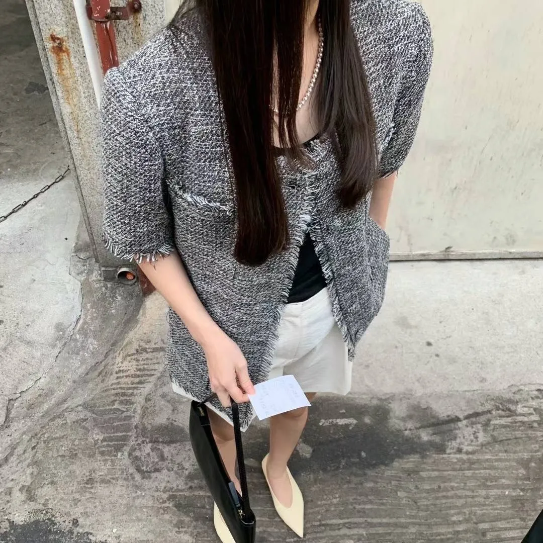 KM521韓國熱銷款小香風短袖外套 白 黑 官網價$2680 線上價$2650