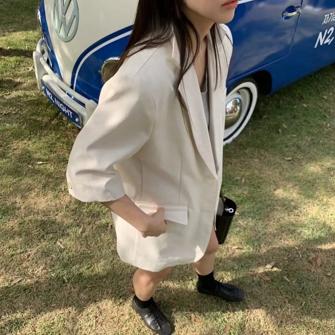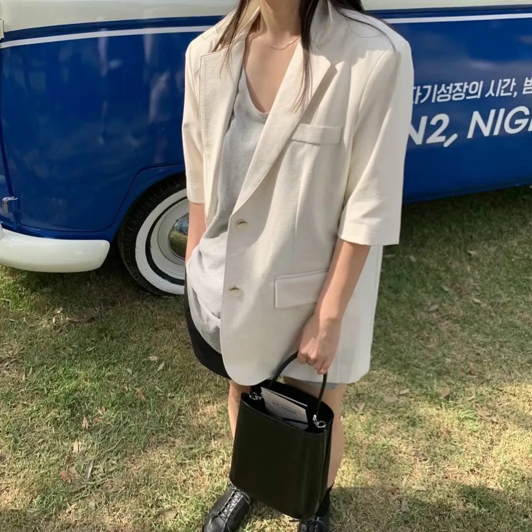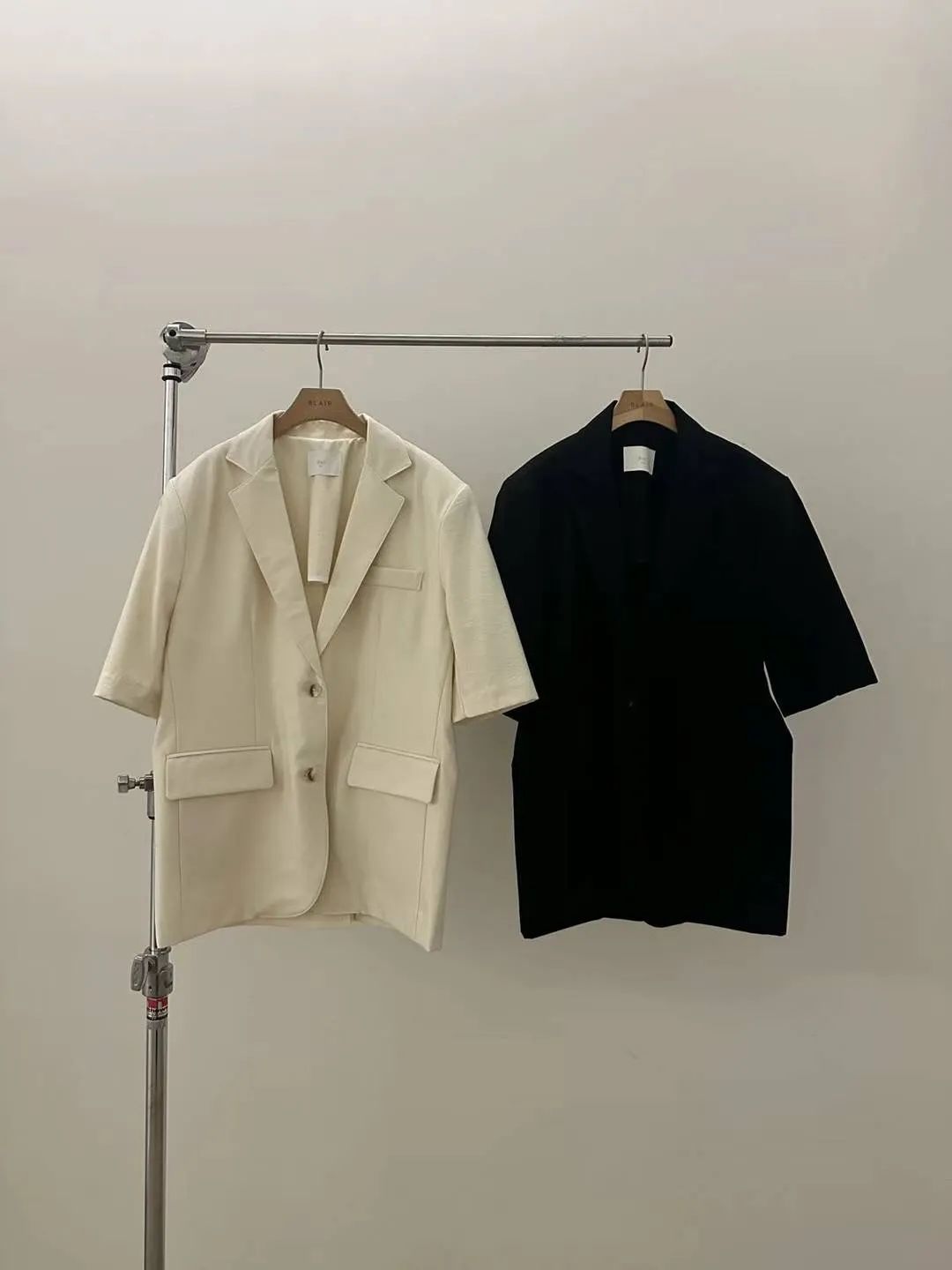 KM523絲滑緞面西裝外套 米 黑 官網價$2580 線上價$2550