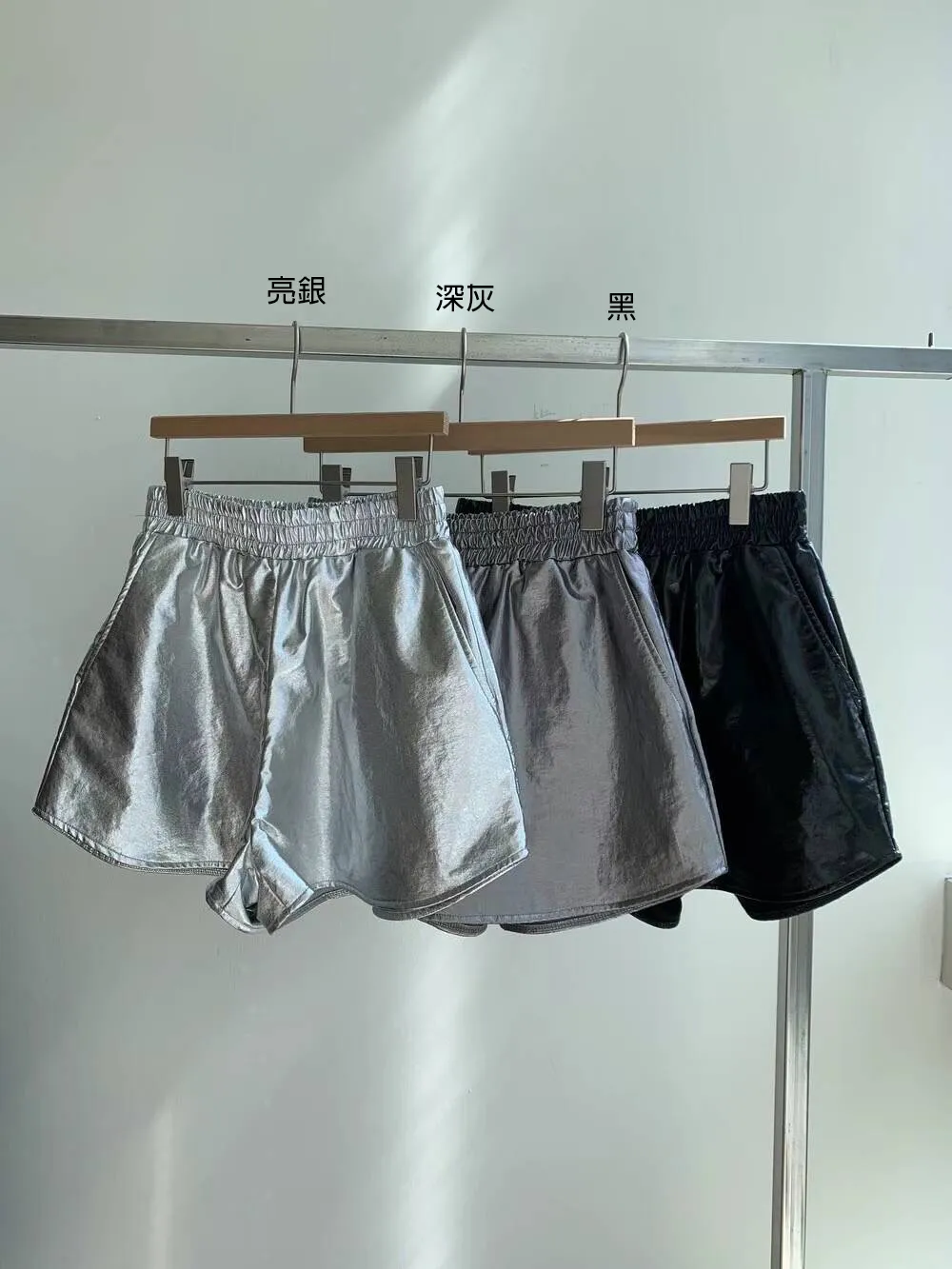 合成皮革 全腰鬆緊 有口袋 L號友善 熱銷款是銀色 透氣孔內襯