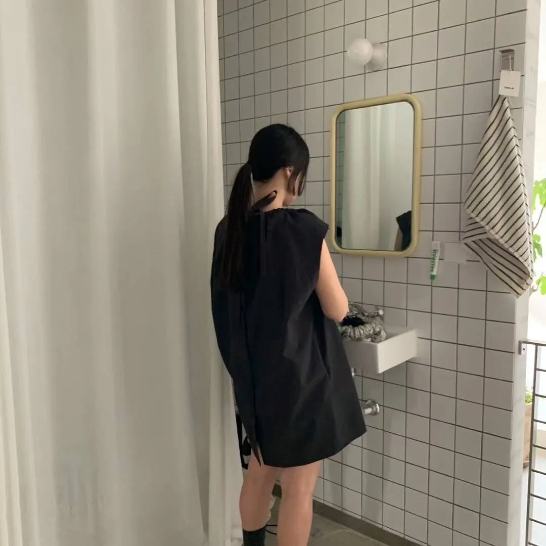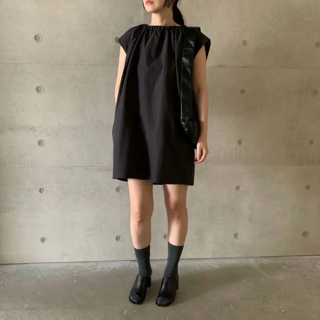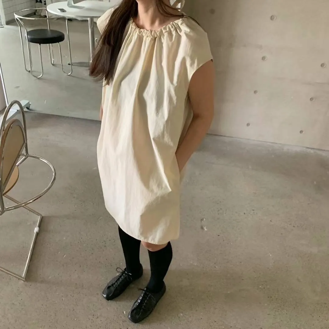 KM545抓皺圓領後頸綁帶洋裝 黃 灰 官網價$1490 線上價$1460