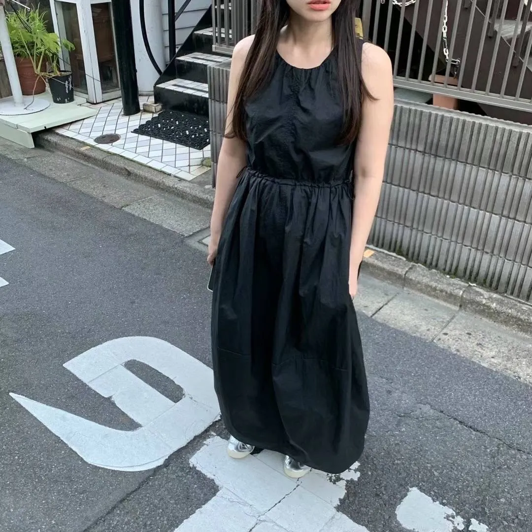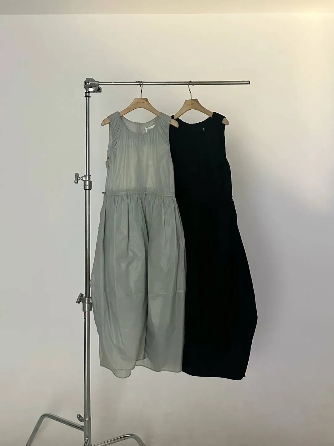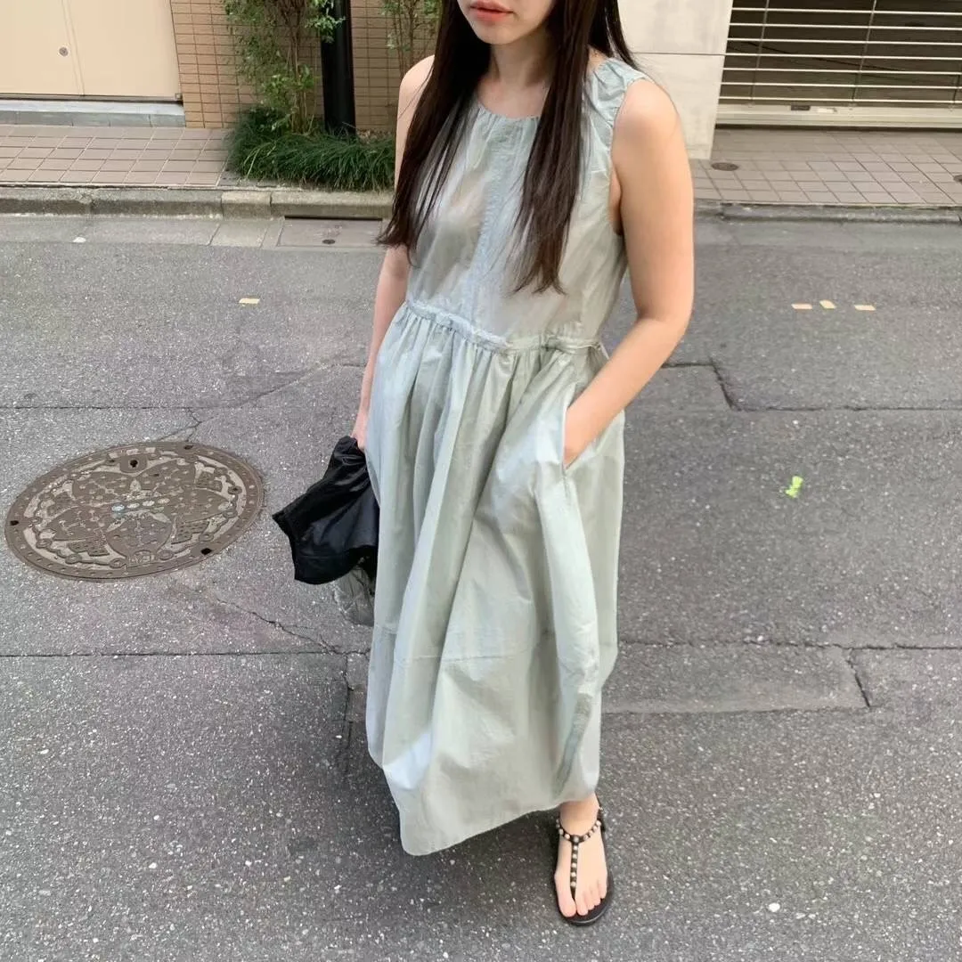 KM546個性風薄款圓領腰抽繩無袖洋裝 綠 黑 官網價$2380 線上價$2350
