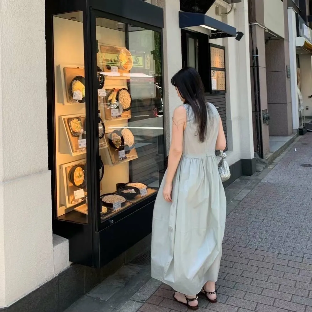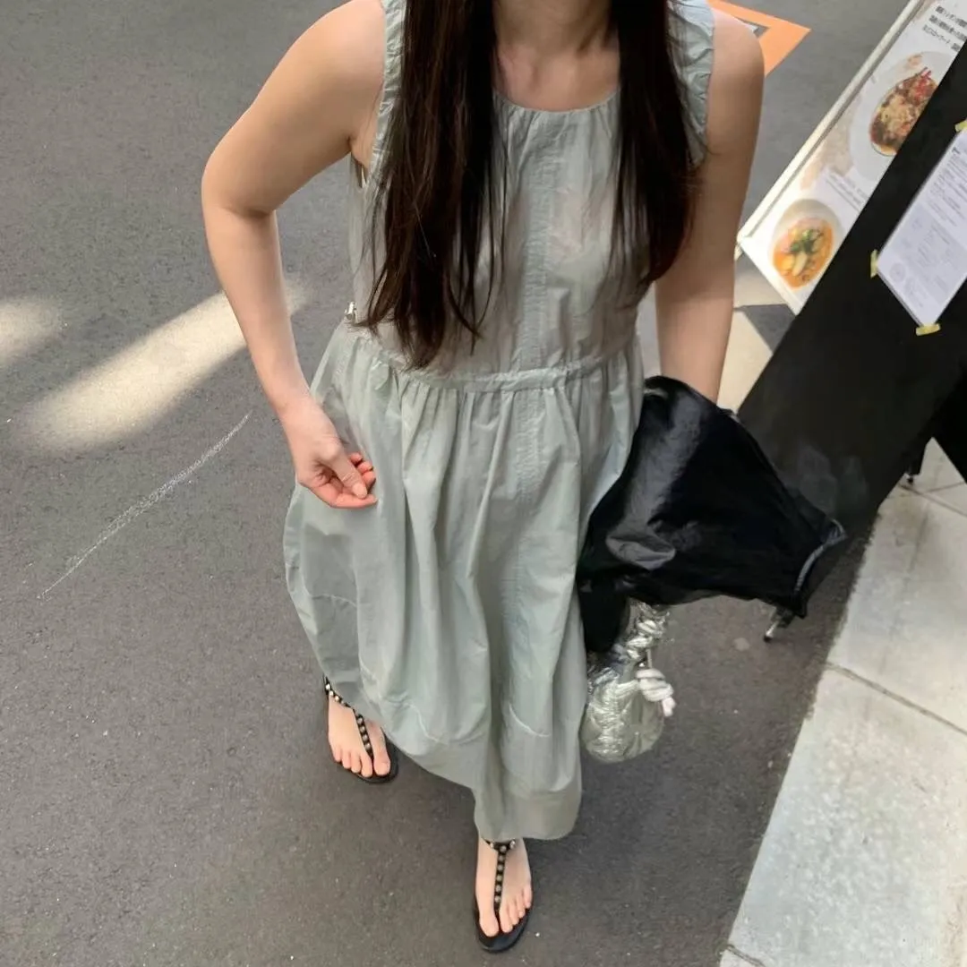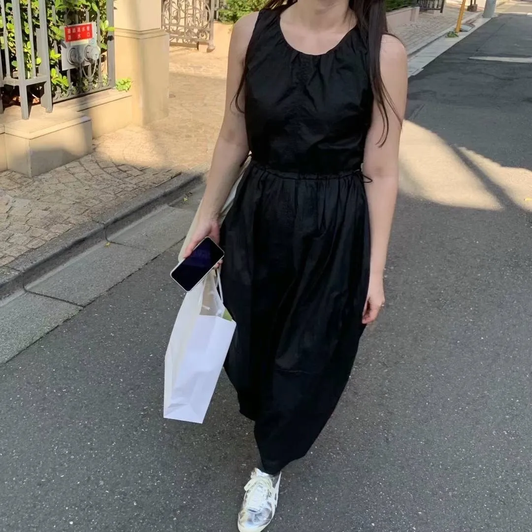 KM546個性風薄款圓領腰抽繩無袖洋裝 綠 黑 官網價$2380 線上價$2350