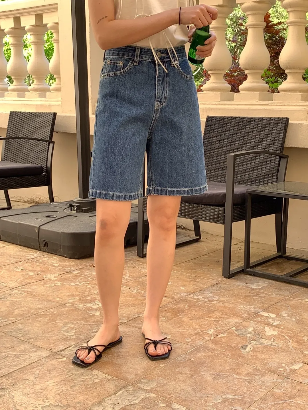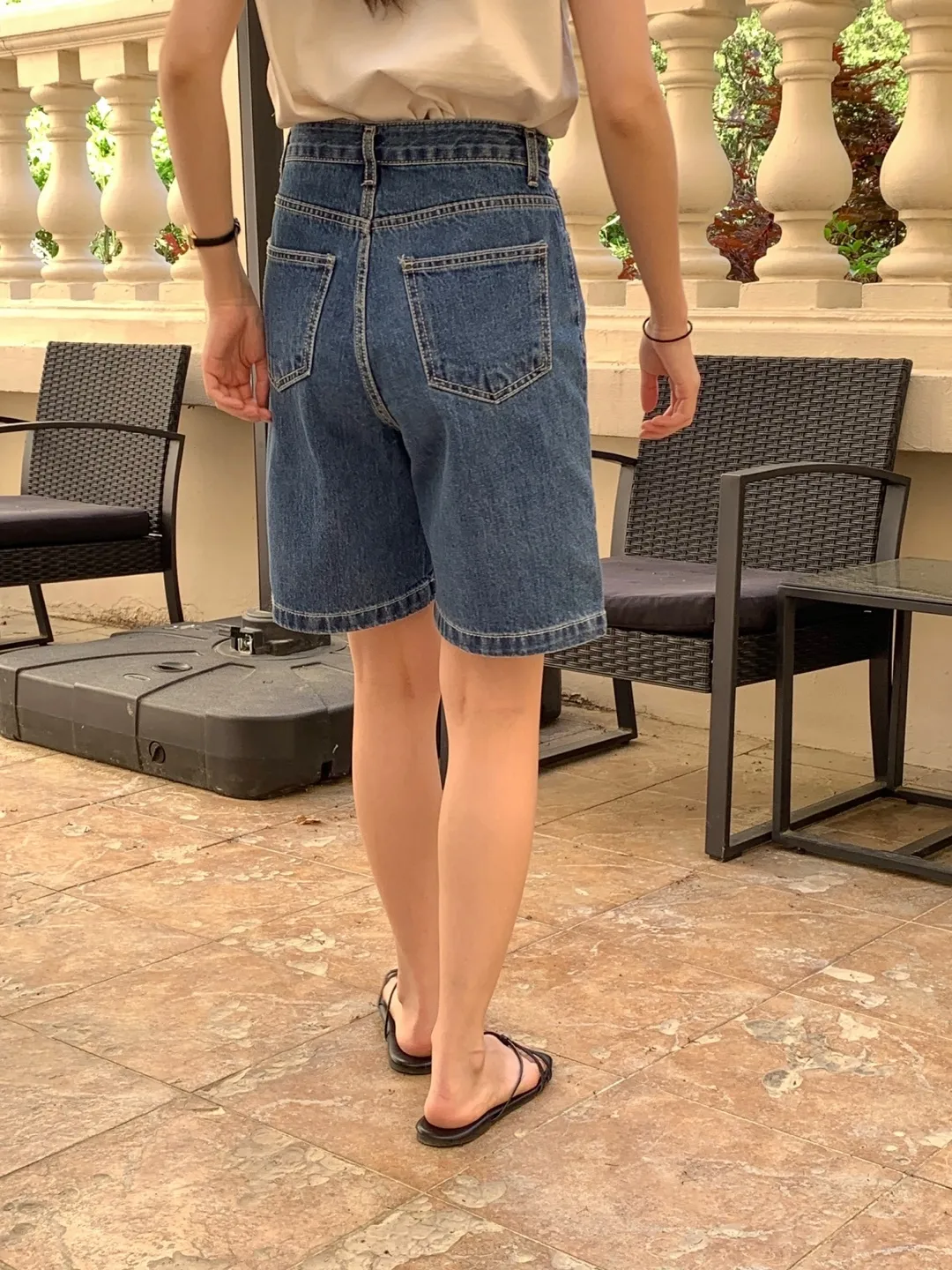 KM551第一款挺料順身牛仔短褲(較長) 淺藍 深藍 S M L官網價$790 線上價$760