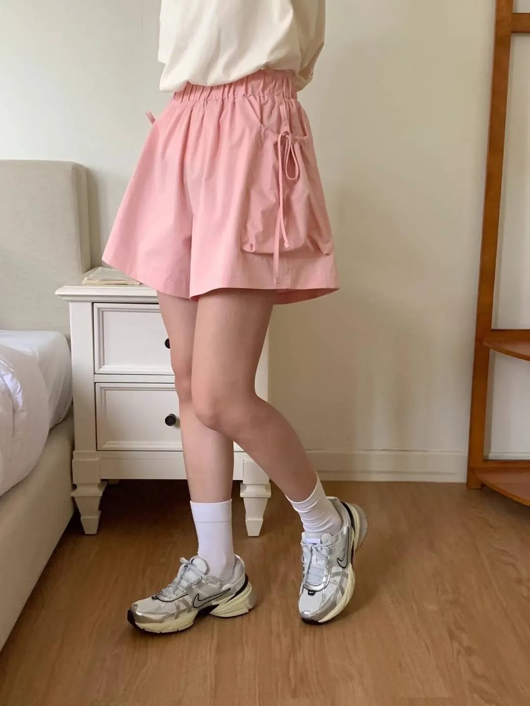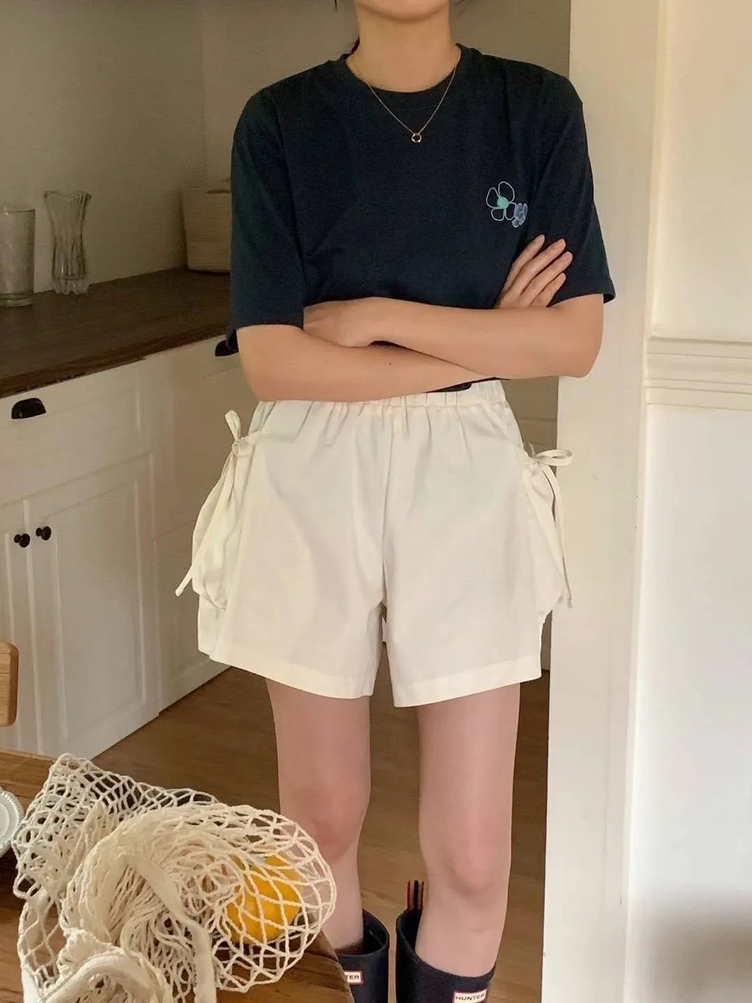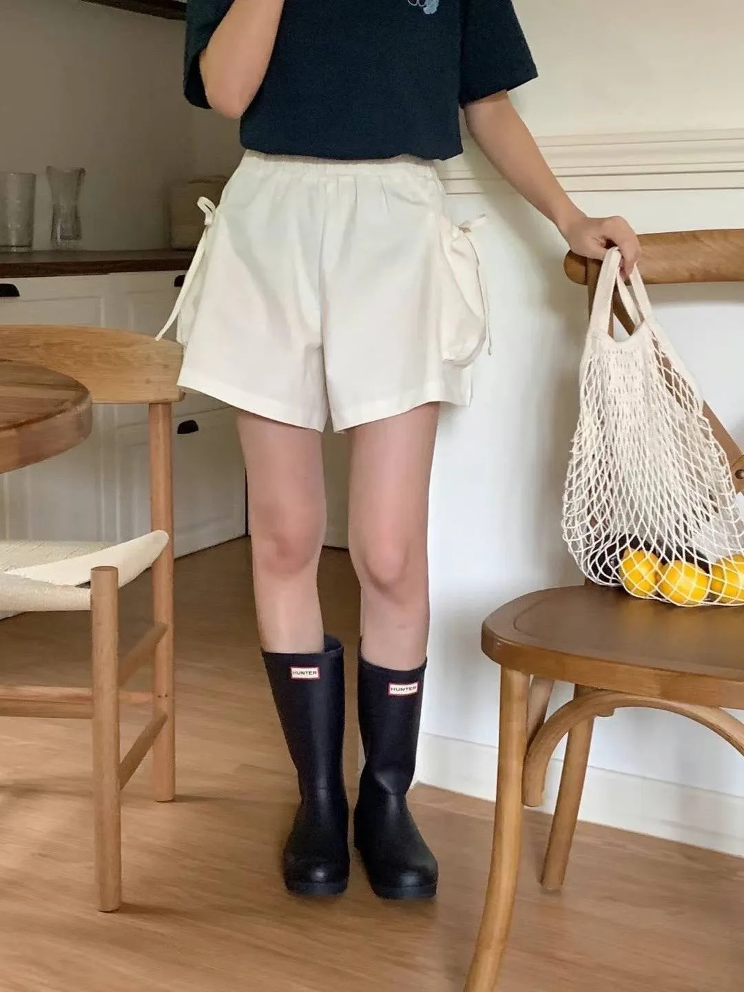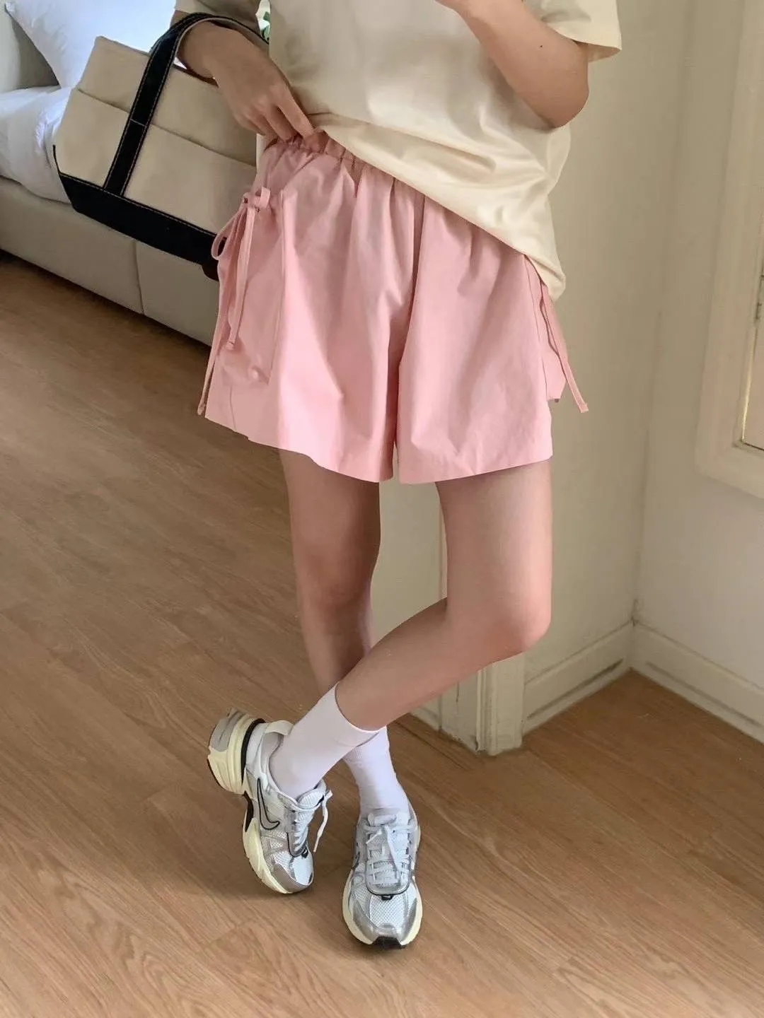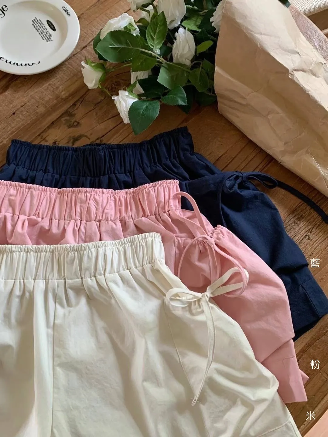 KM561雙側蝴蝶結口袋短褲 米 粉 藍 官網價$680 線上價$650