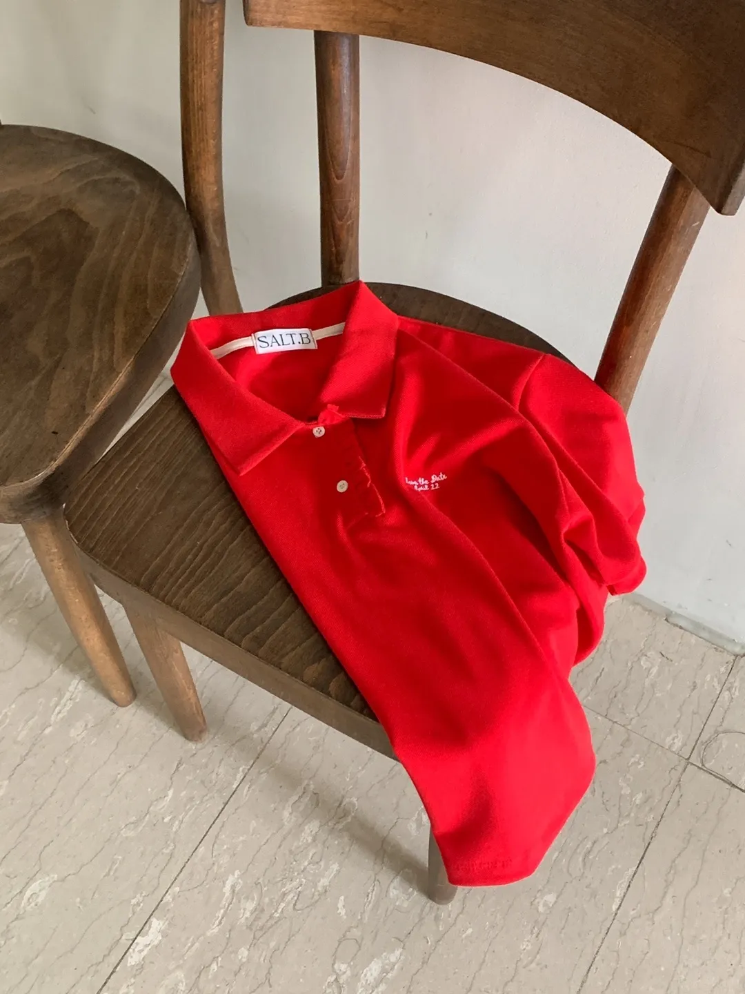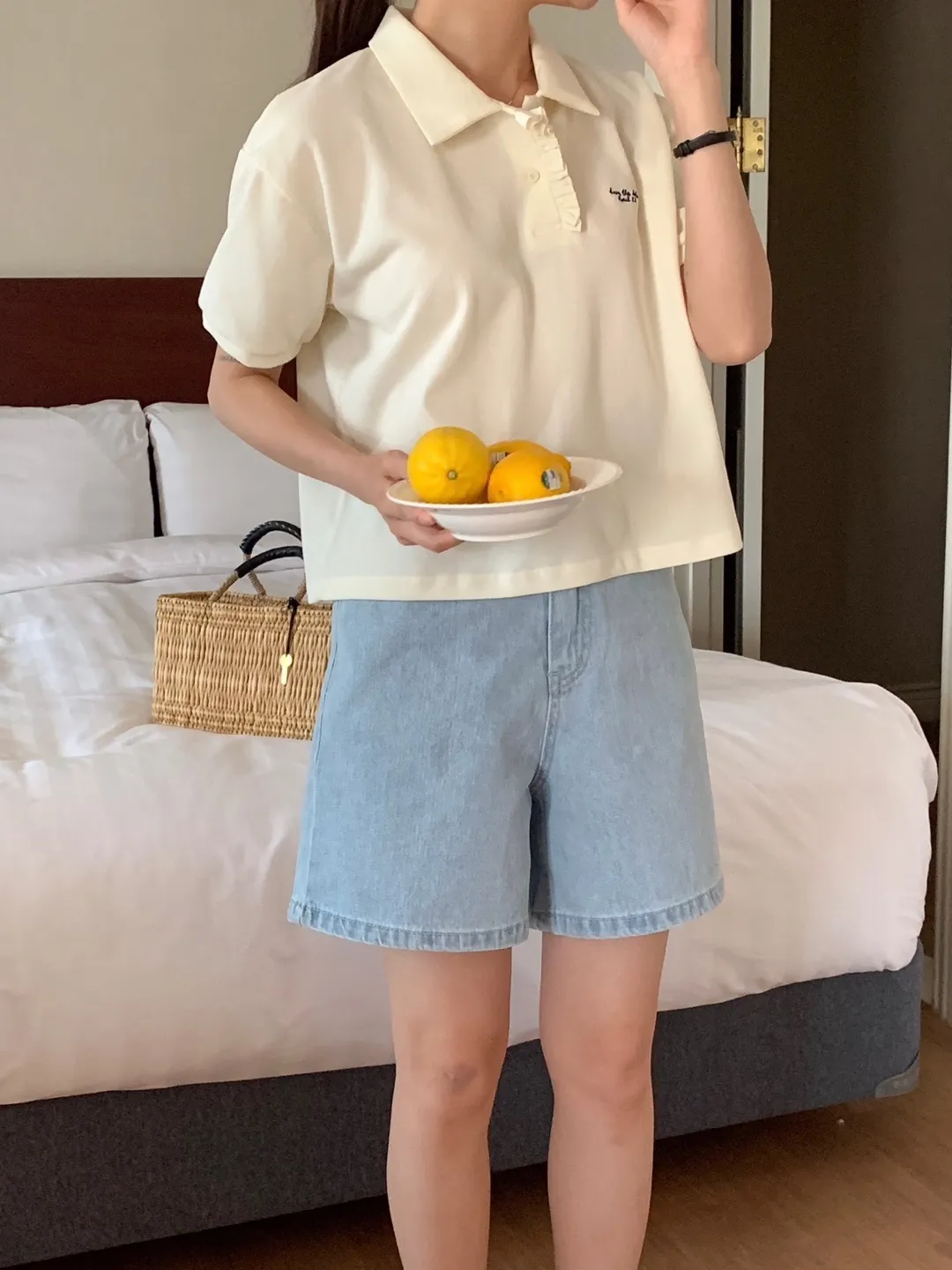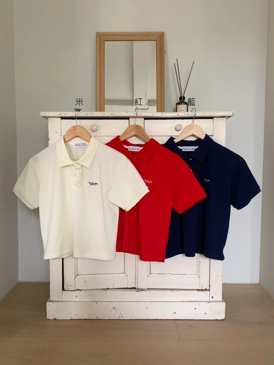 KM565薄款可愛英文刺繡POLO衫 米 紅 藍 官網價$599 線上價$569