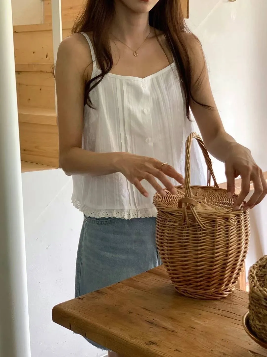 棉,精緻紋理感 釦子穿脫 下擺蕾絲 肩帶不可調