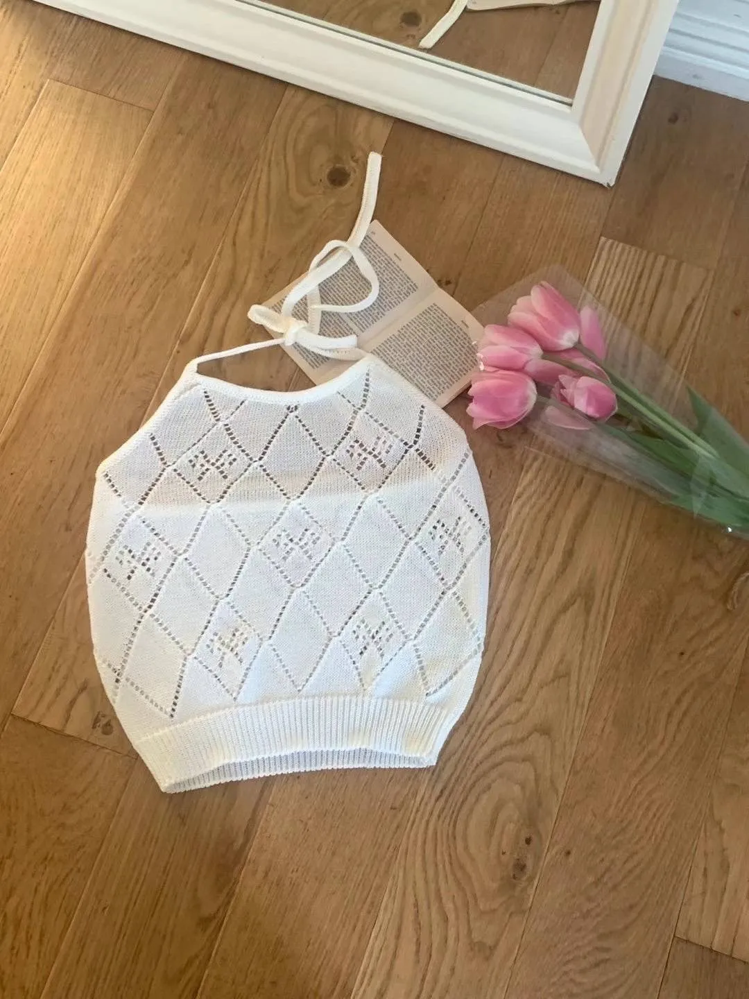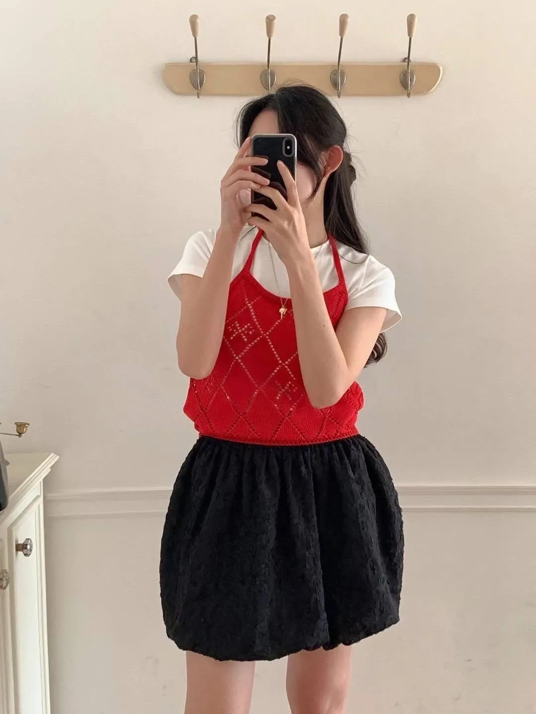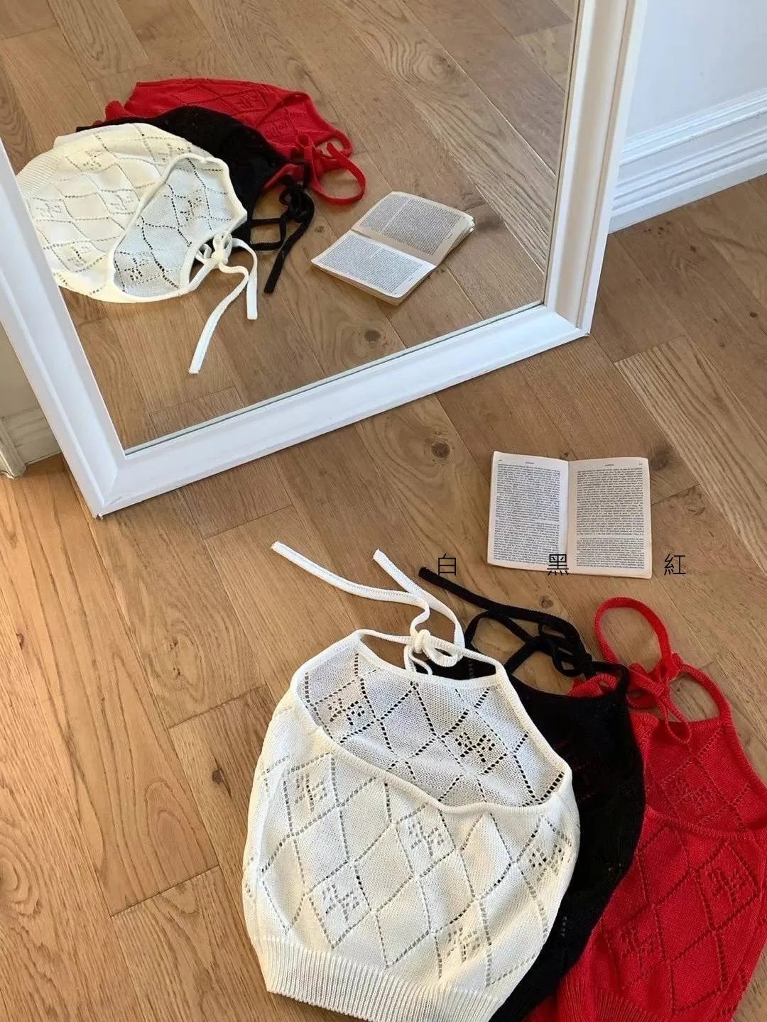 KM581薄款簍空菱格針織背心 白 紅 黑 官網價$529 線上價$499