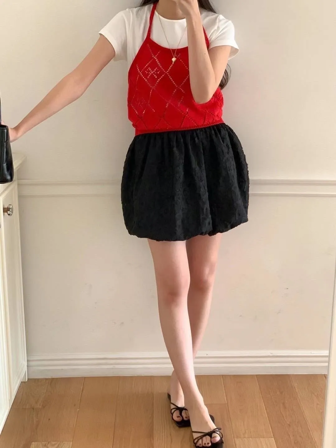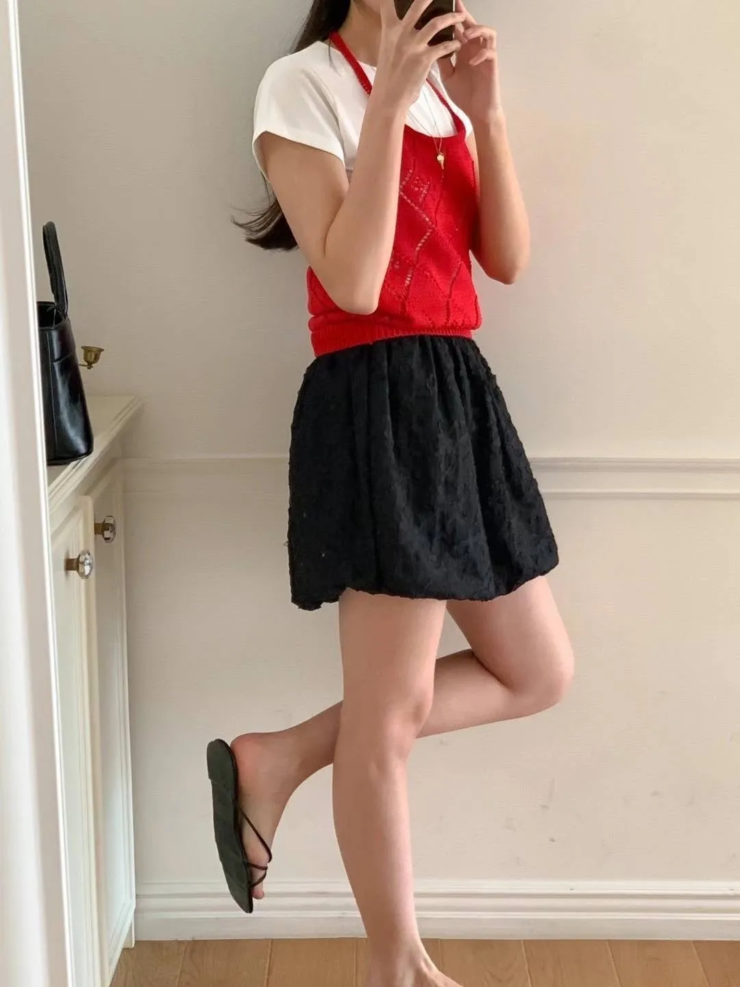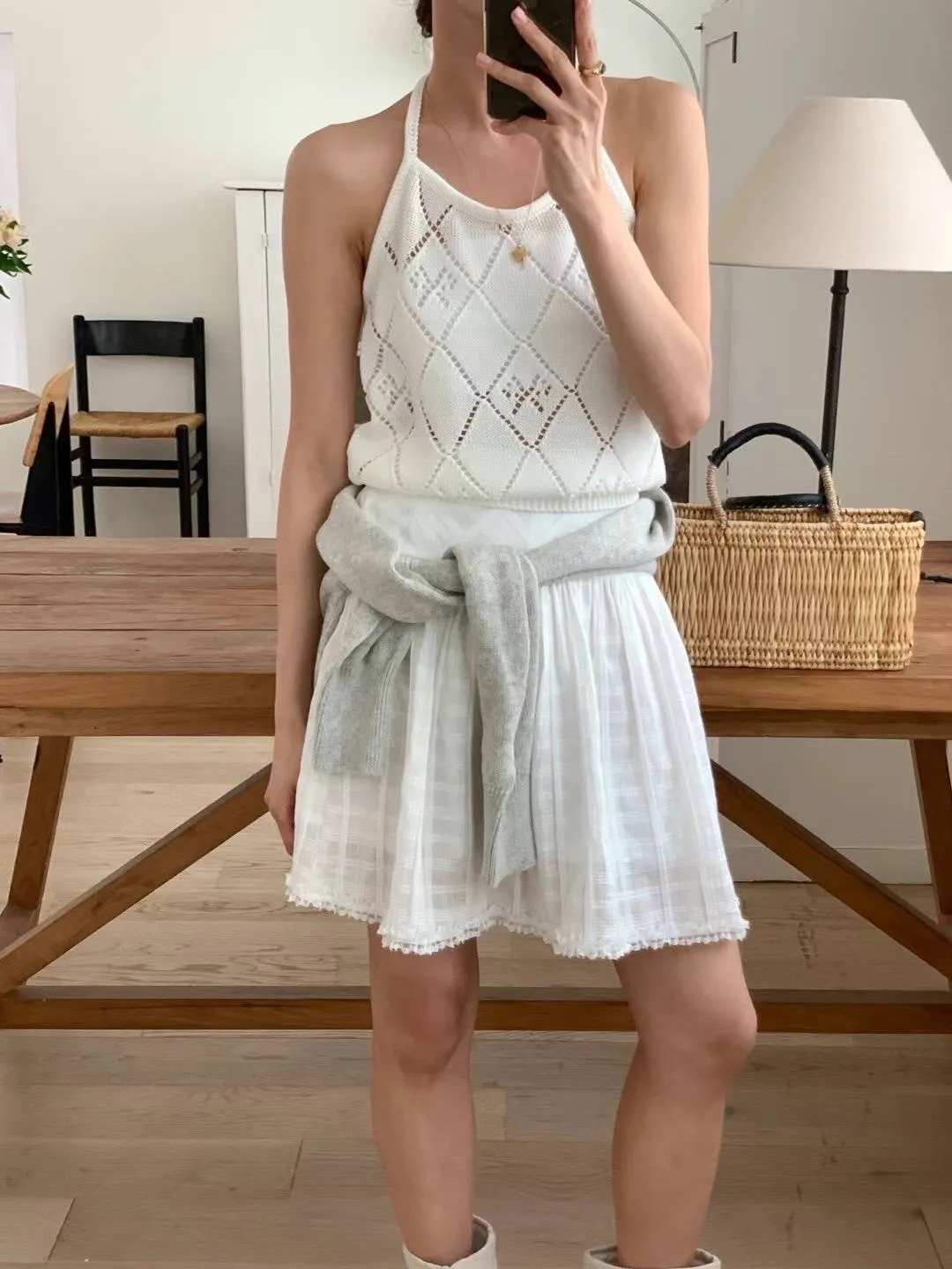 KM581薄款簍空菱格針織背心 白 紅 黑 官網價$529 線上價$499