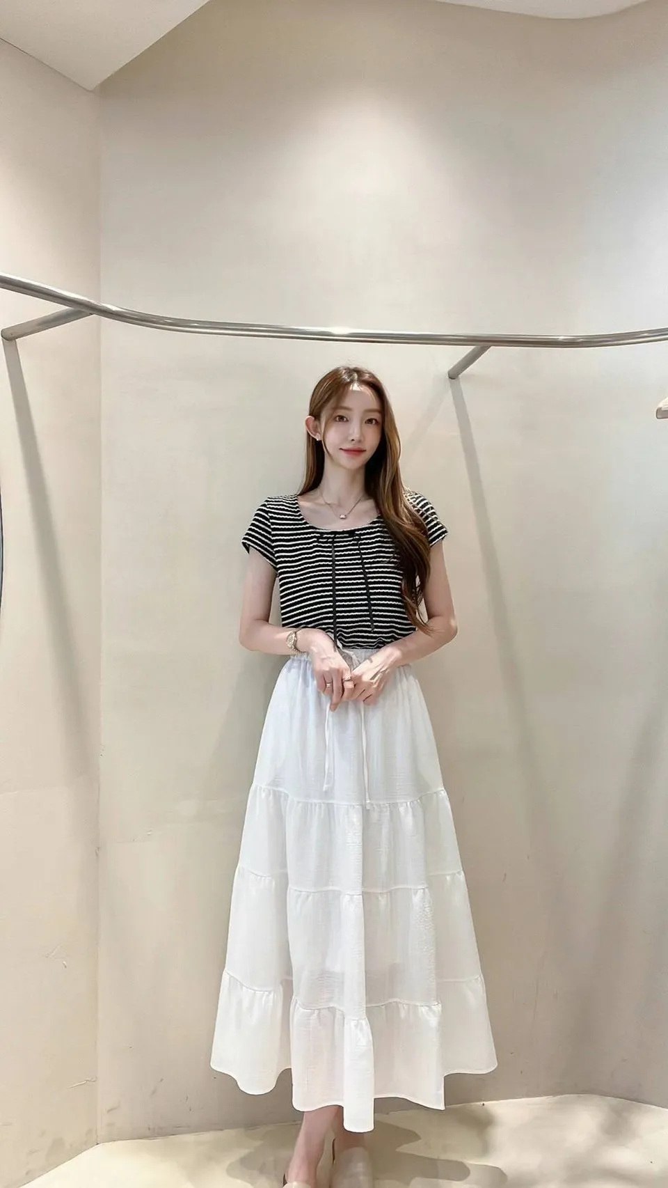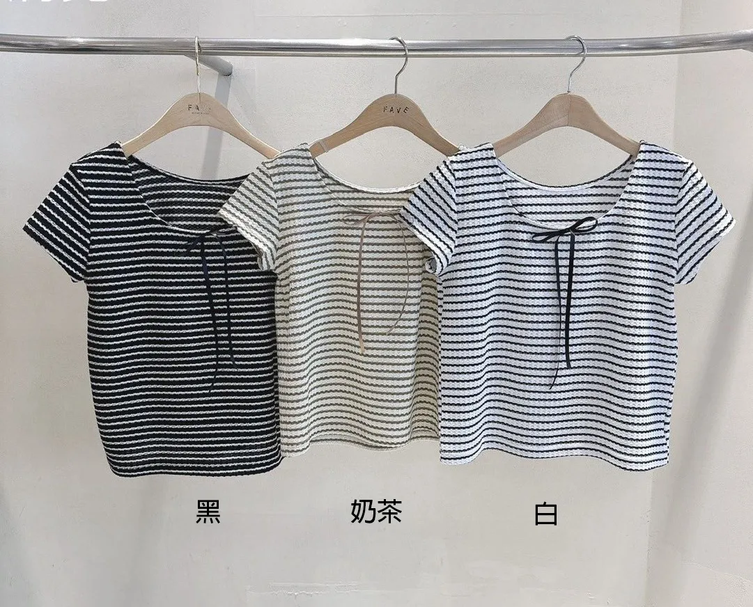 KM597可愛胸緞帶條紋上衣 白 黑 奶茶 官網價$620 線上價$590