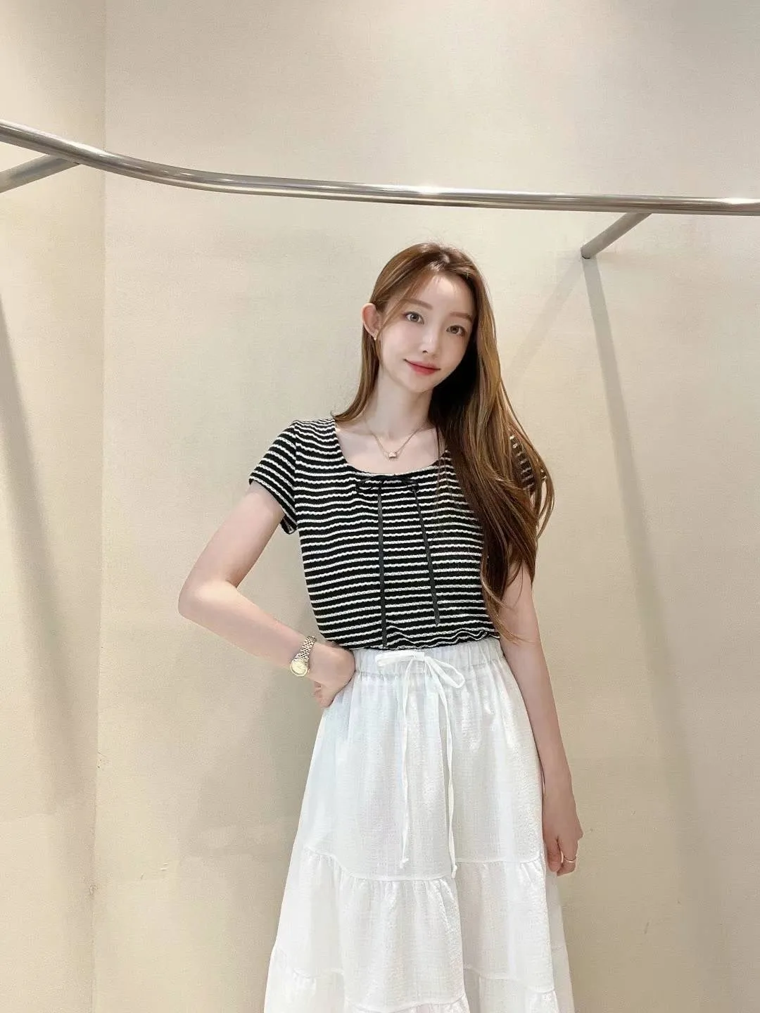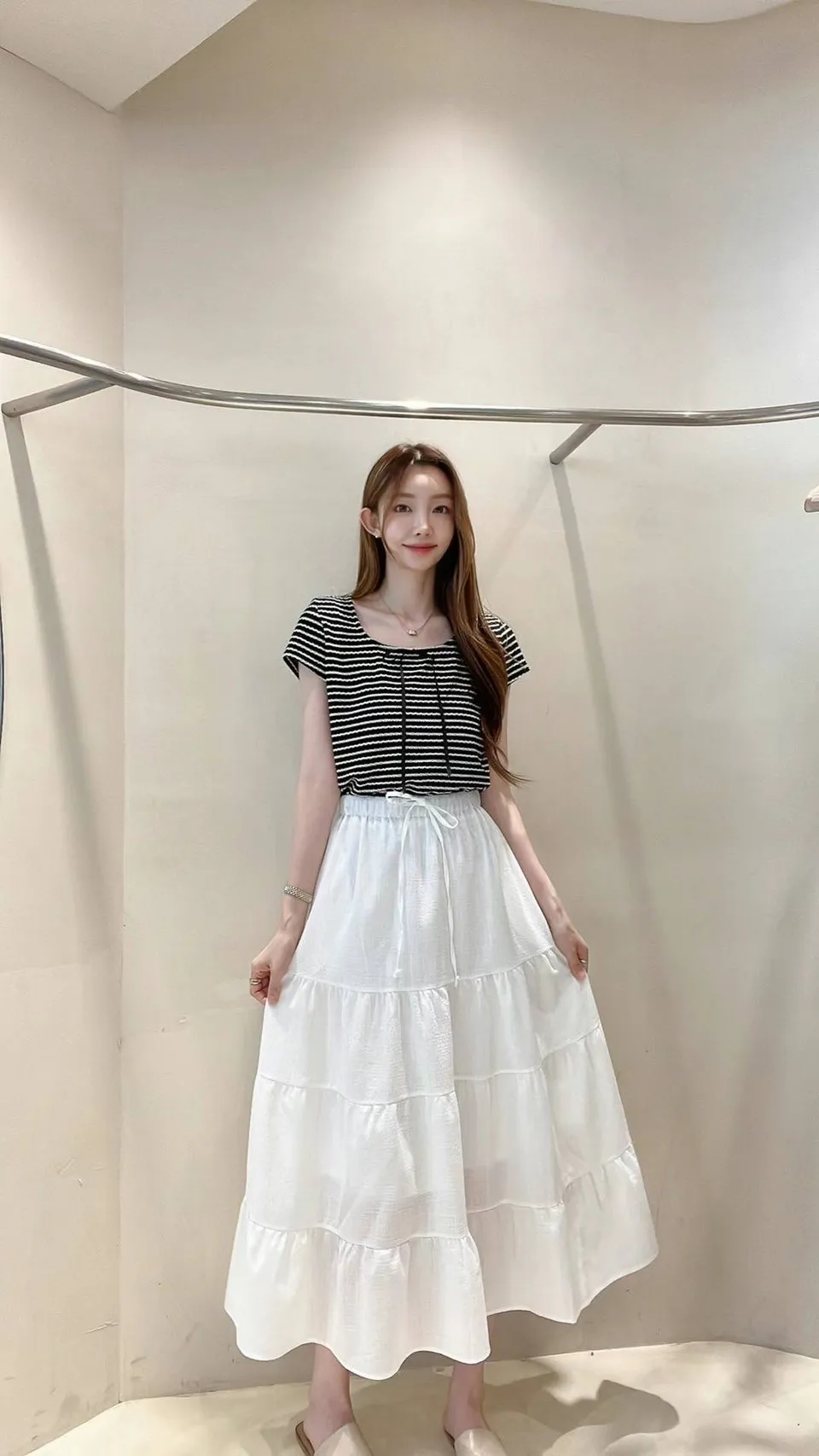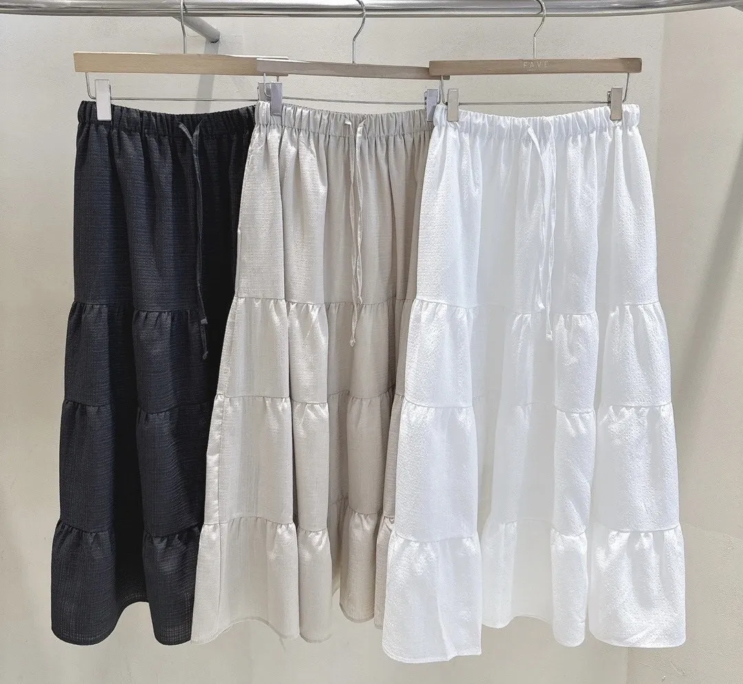 KM598氣質輕盈涼感蛋糕裙 白 米 灰 官網價$1199 線上價$1169天絲80%+人造絲 滑順內裡 腰鬆緊有抽繩 百搭色系 不易皺 蛋糕裙